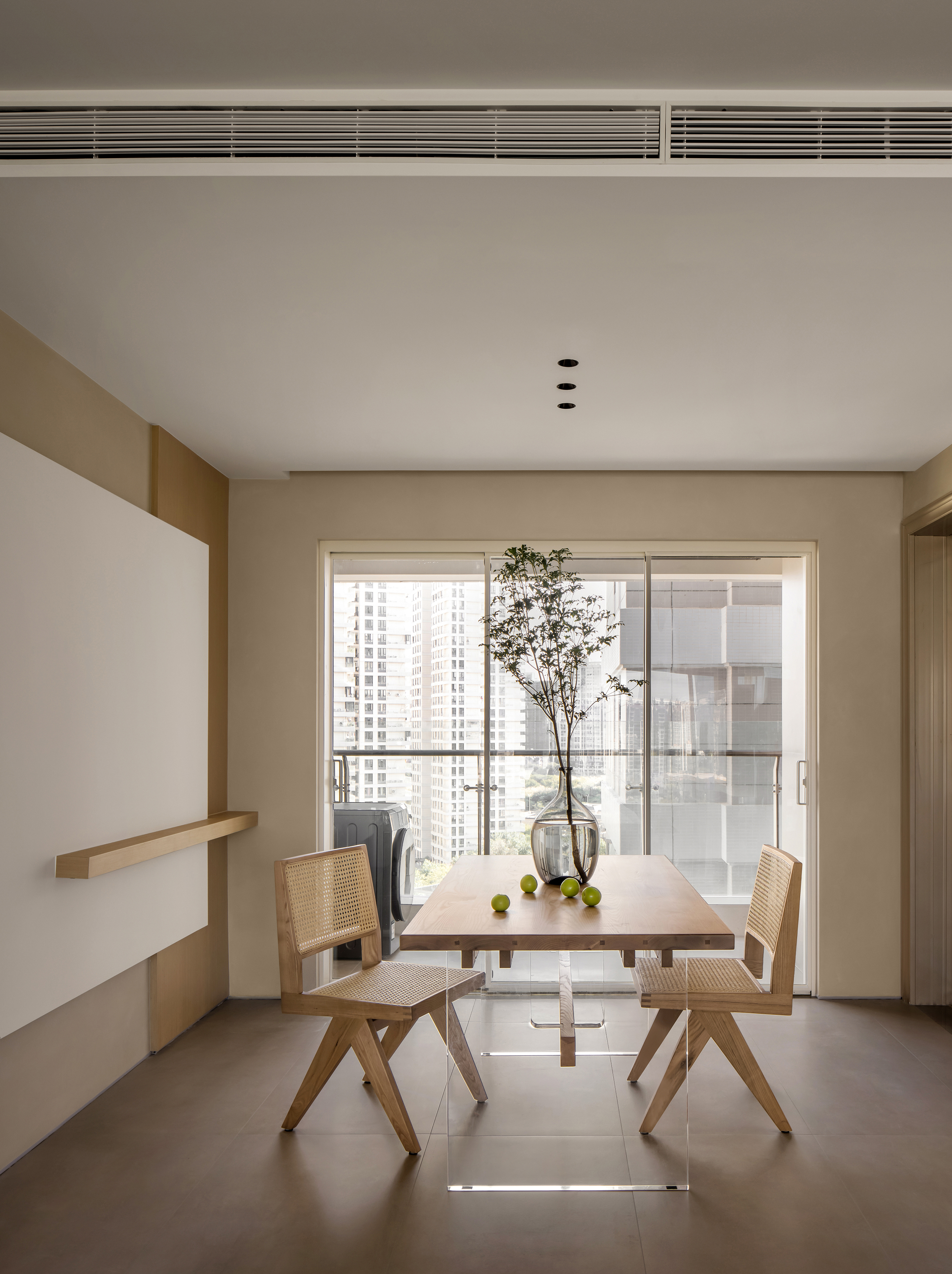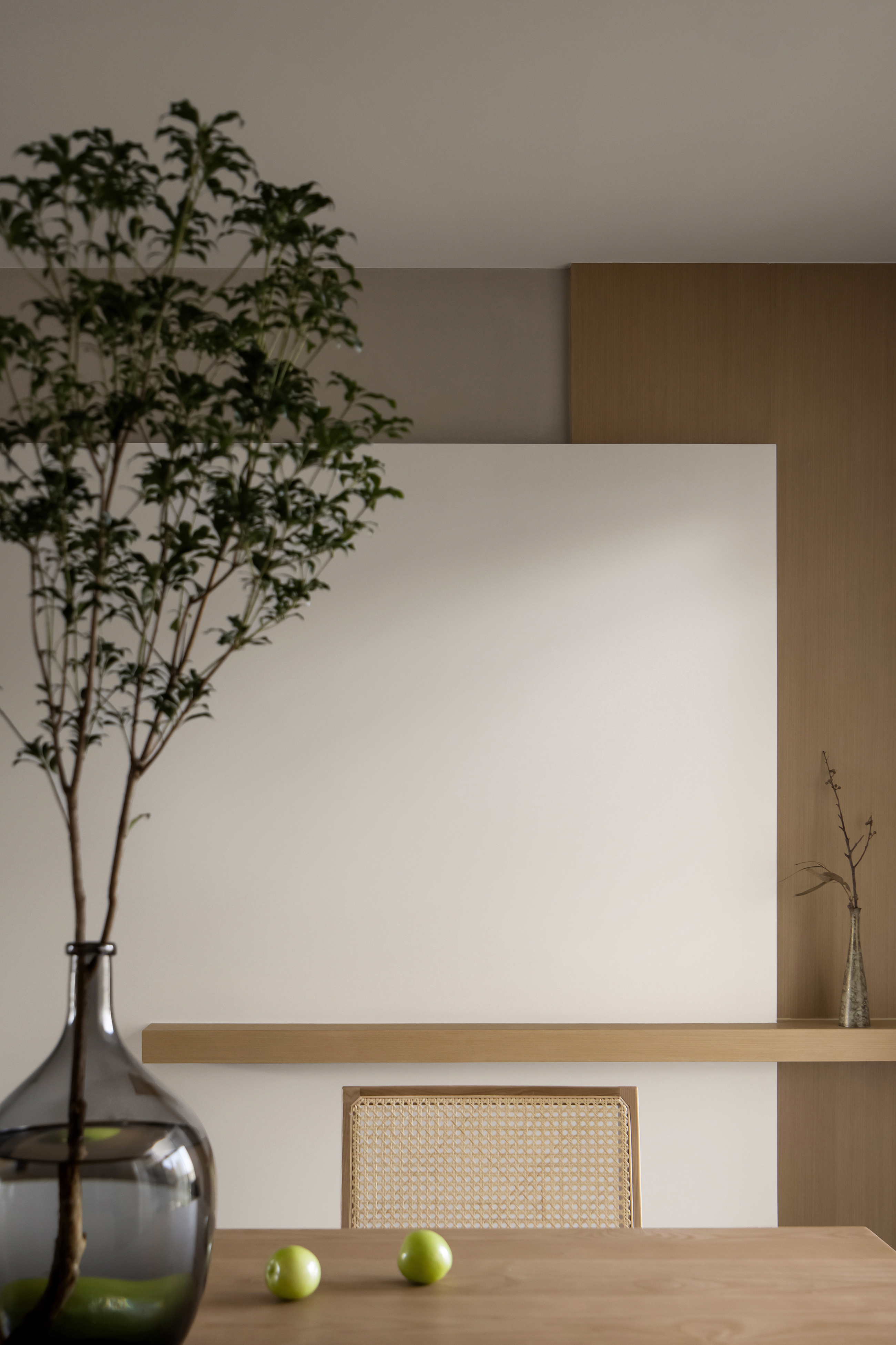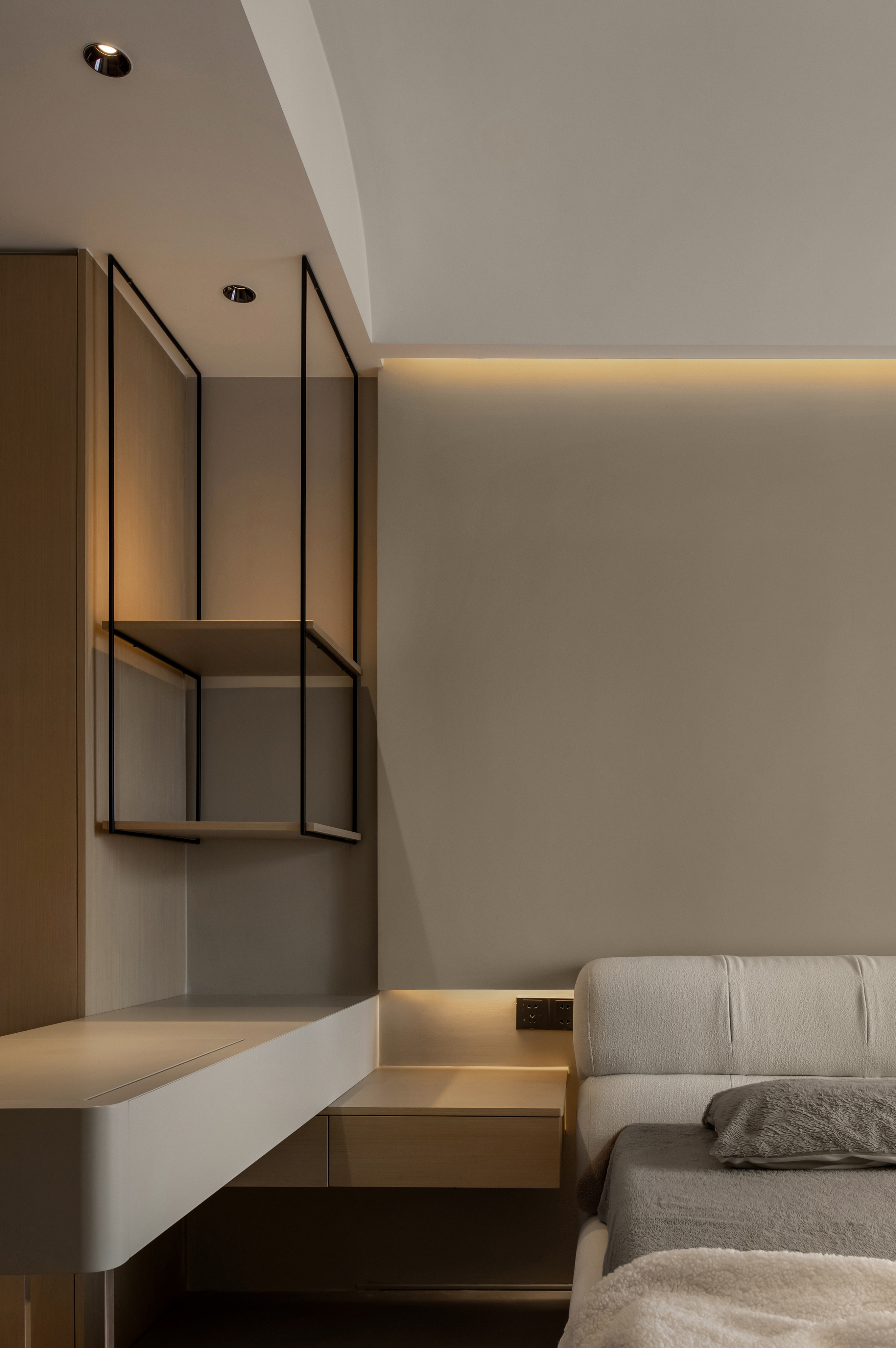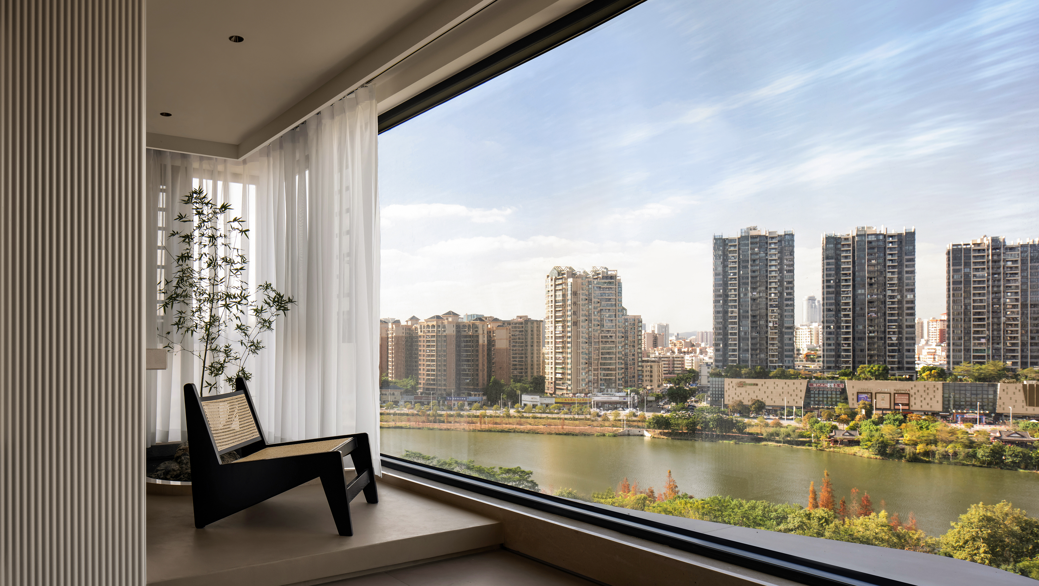 空间意境:本案环境是再惠州衣柜面积最大的环湖公园,阳台外刚好是比较好的景观位置,且楼层低能更接近自然,设计中将原本的客厅外推及茶台延伸打破了原本空间界限来通过流水贯穿造景区,造景区窗外的水和树来打造模糊空间界限,让人更加贴近自然。