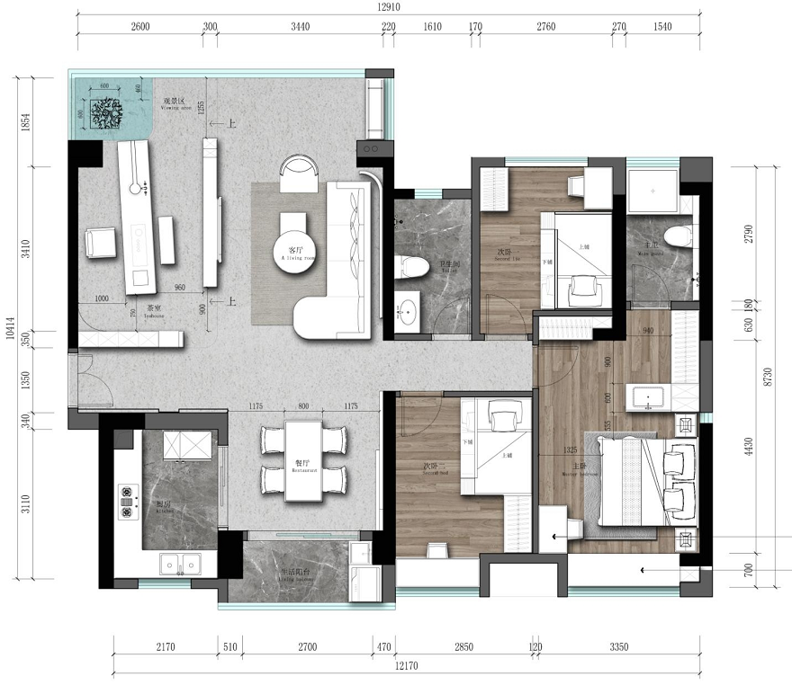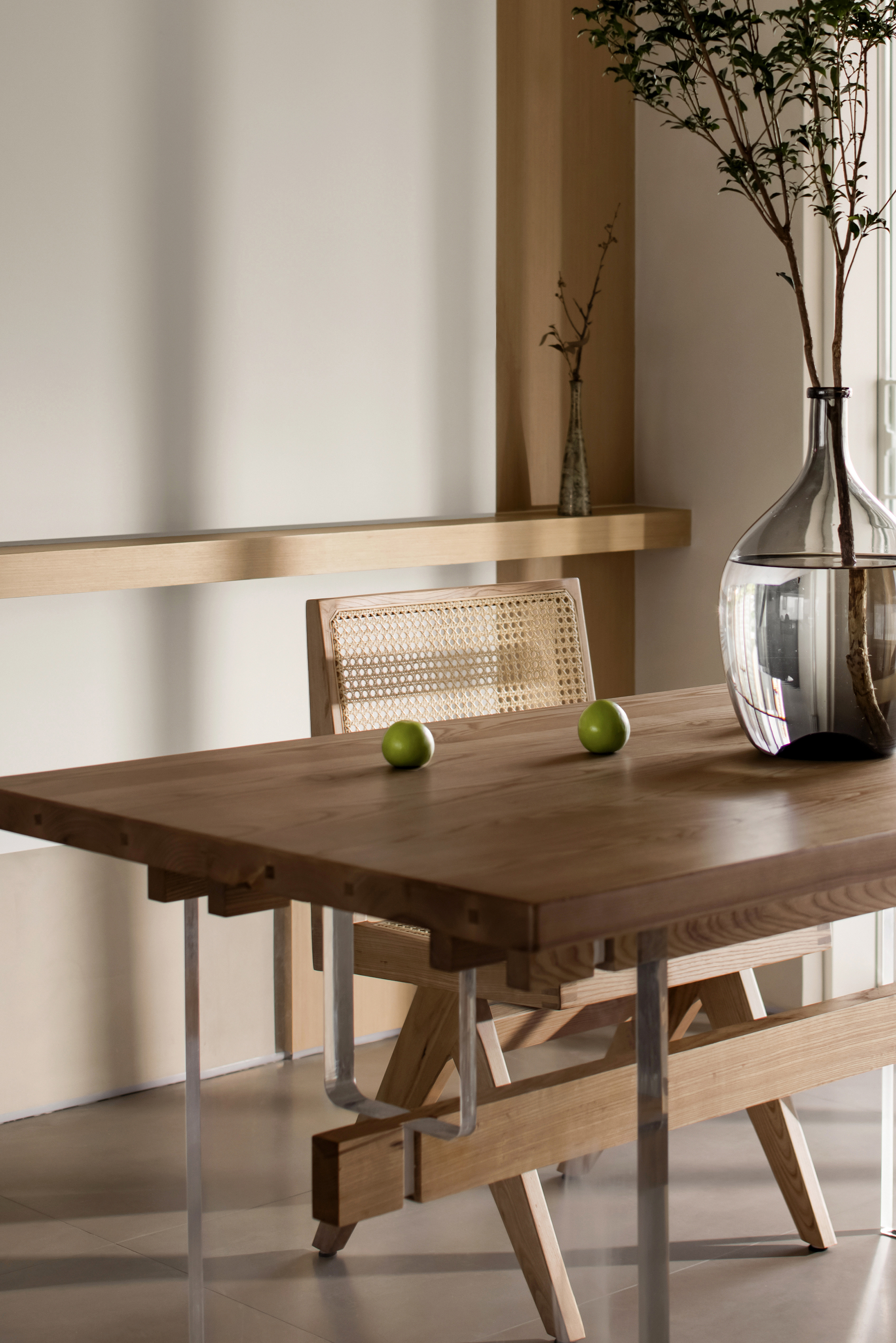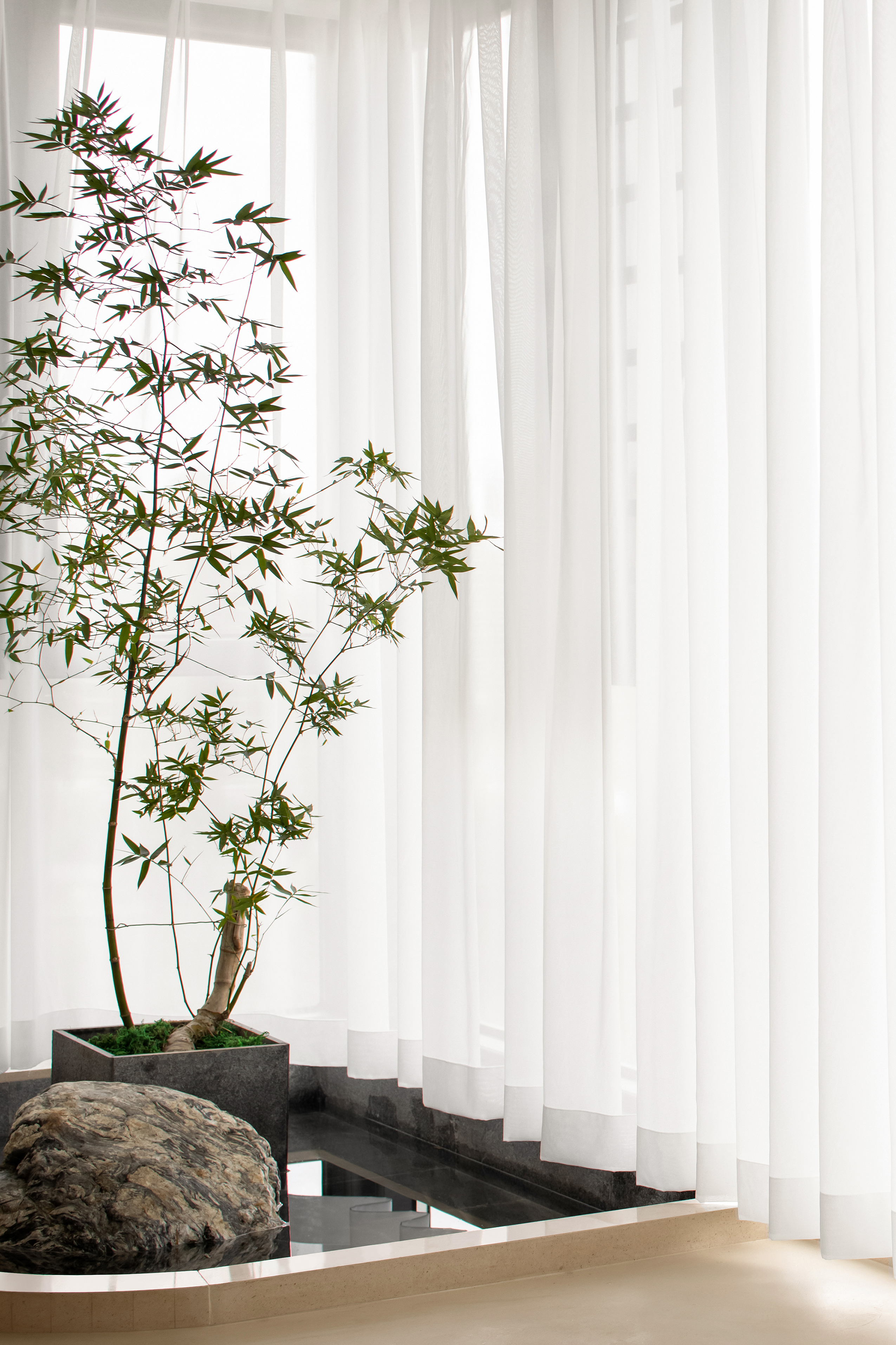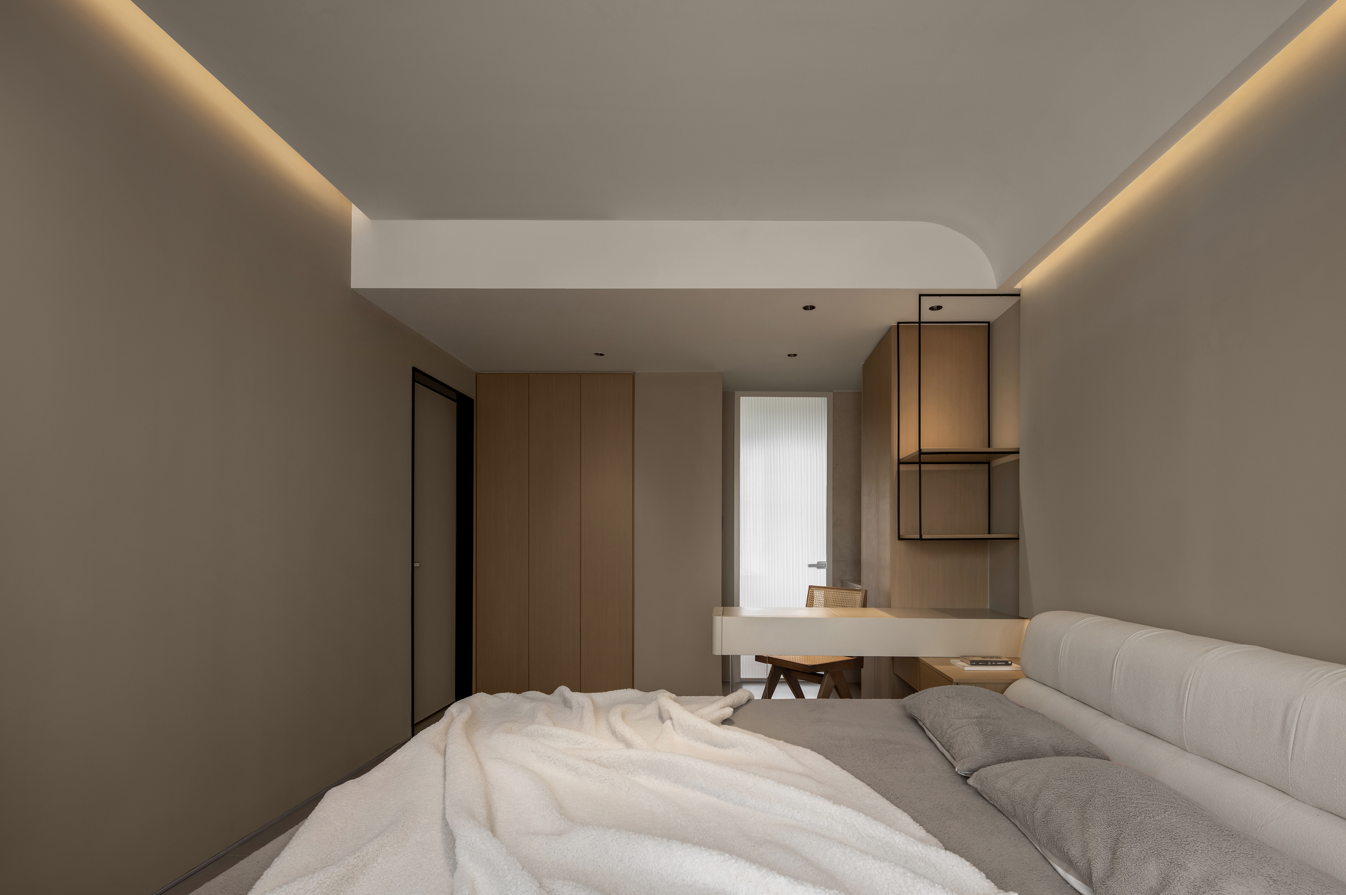空间意境:本案环境是再惠州衣柜面积最大的环湖公园,阳台外刚好是比较好的景观位置,且楼层低能更接近自然,设计中将原本的客厅外推及茶台延伸打破了原本空间界限来通过流水贯穿造景区,造景区窗外的水和树来打造模糊空间界限,让人更加贴近自然。