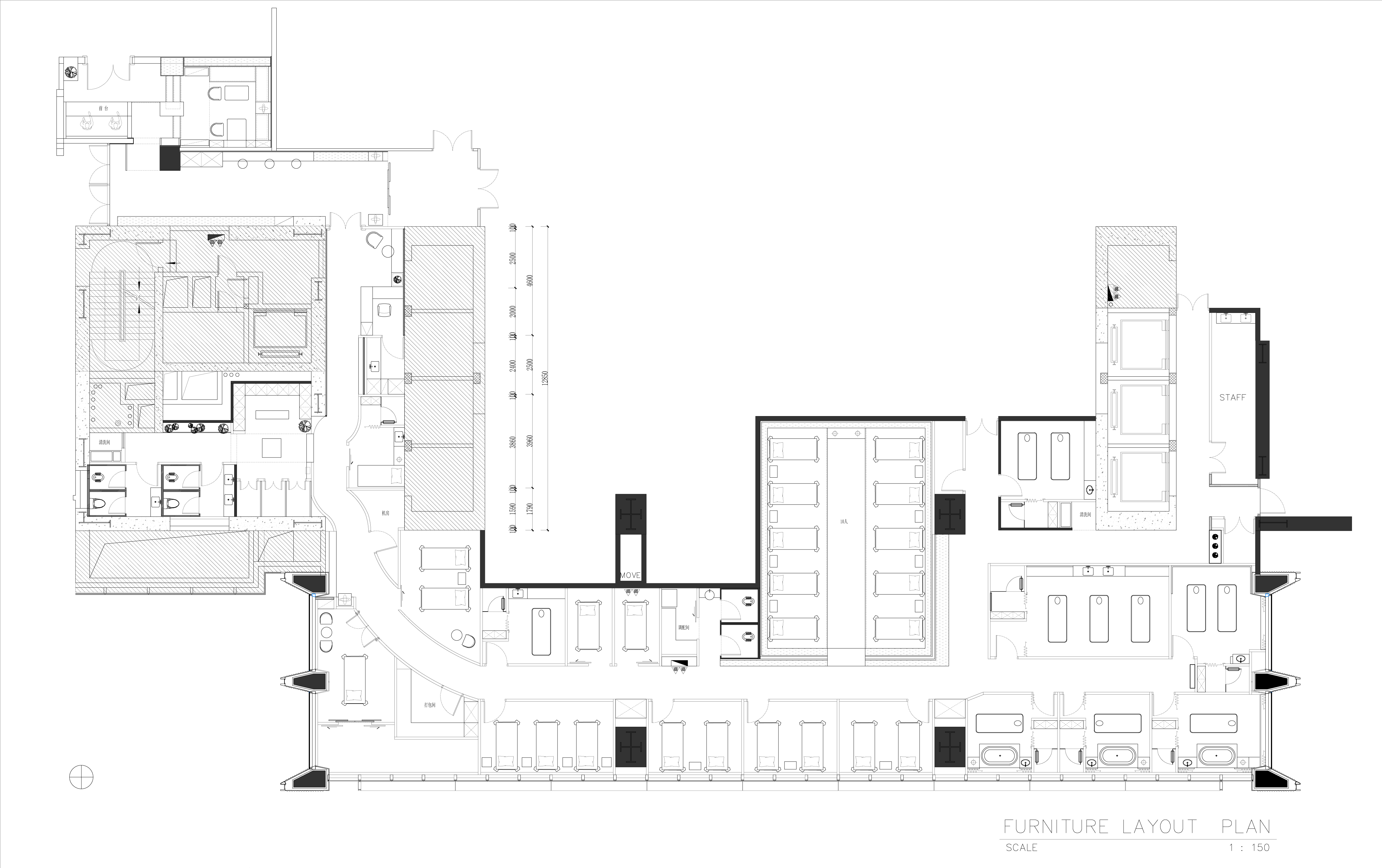 空间布局:空间布局受限于建筑消防--在规划中由较小的门厅引入,进入门厅后别有洞天,整个空间曲径通幽--一步一景的体验