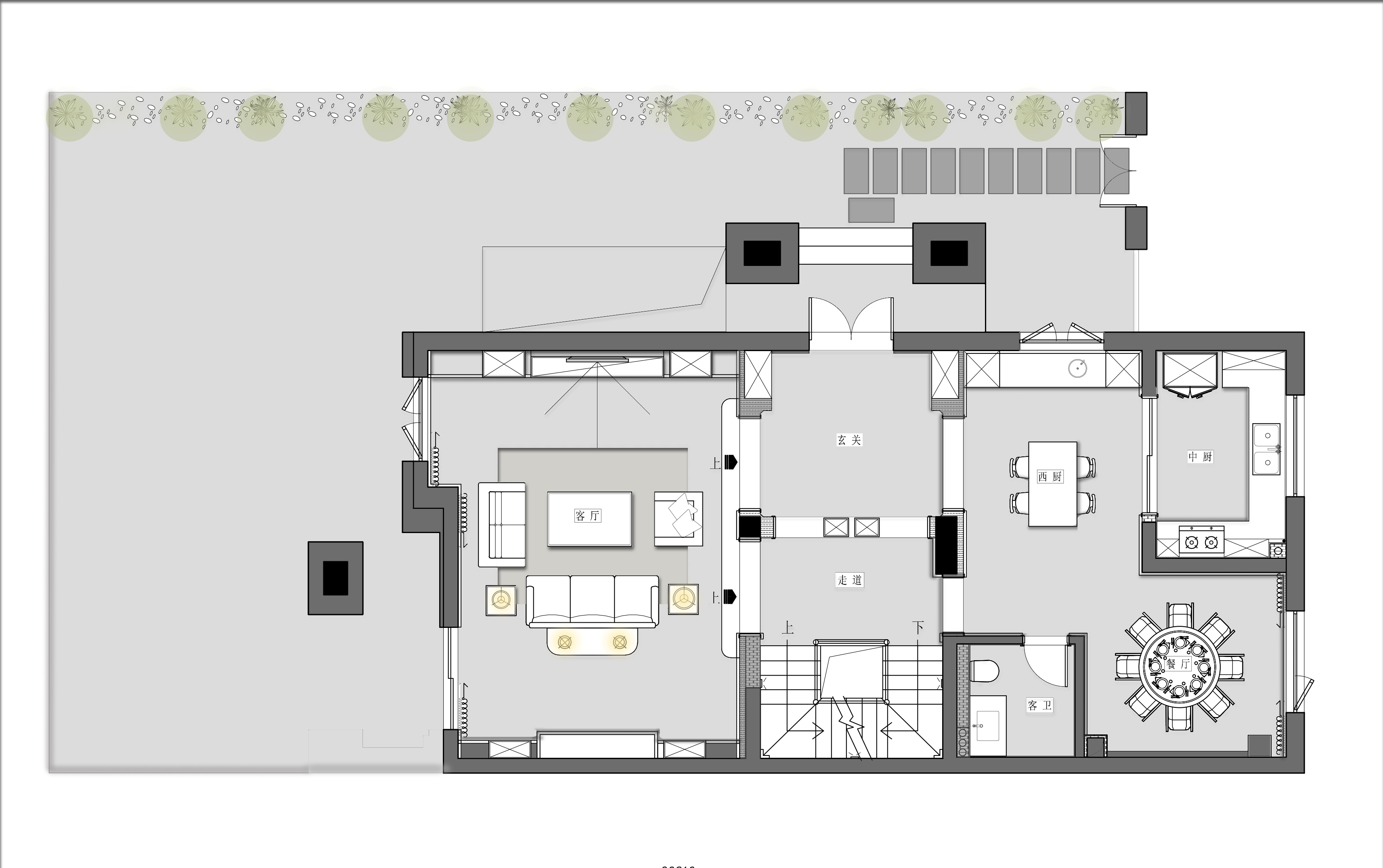 项目定位:根据别墅原始户型图,以及业主的需求,将整体空间做了以下的划分: