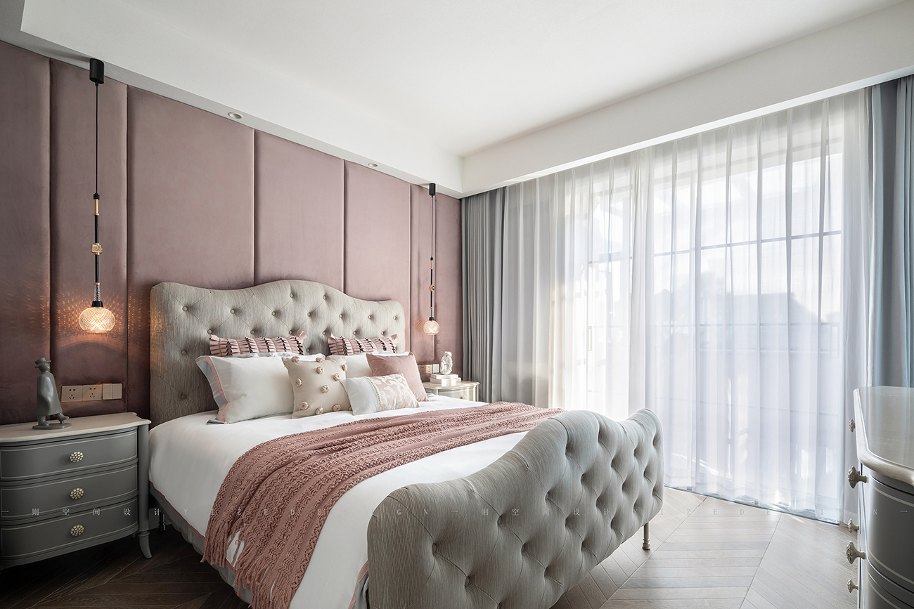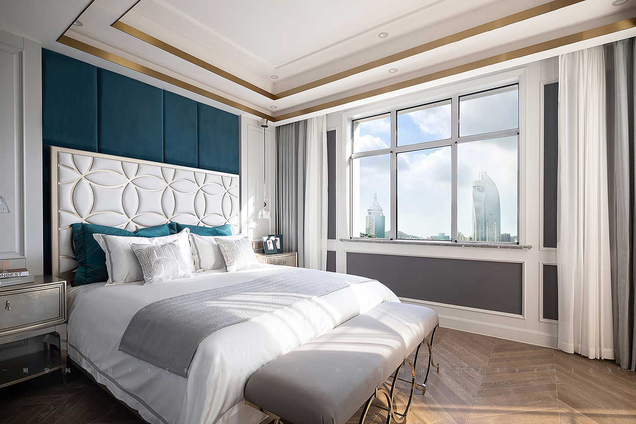 卫生间与衣帽间两个功能区域与其房间相连,强调光与室内的关系,通透大气的整体氛围,使得空间节奏张弛有度。 | 主卧 THE MASTER BEDROOM |