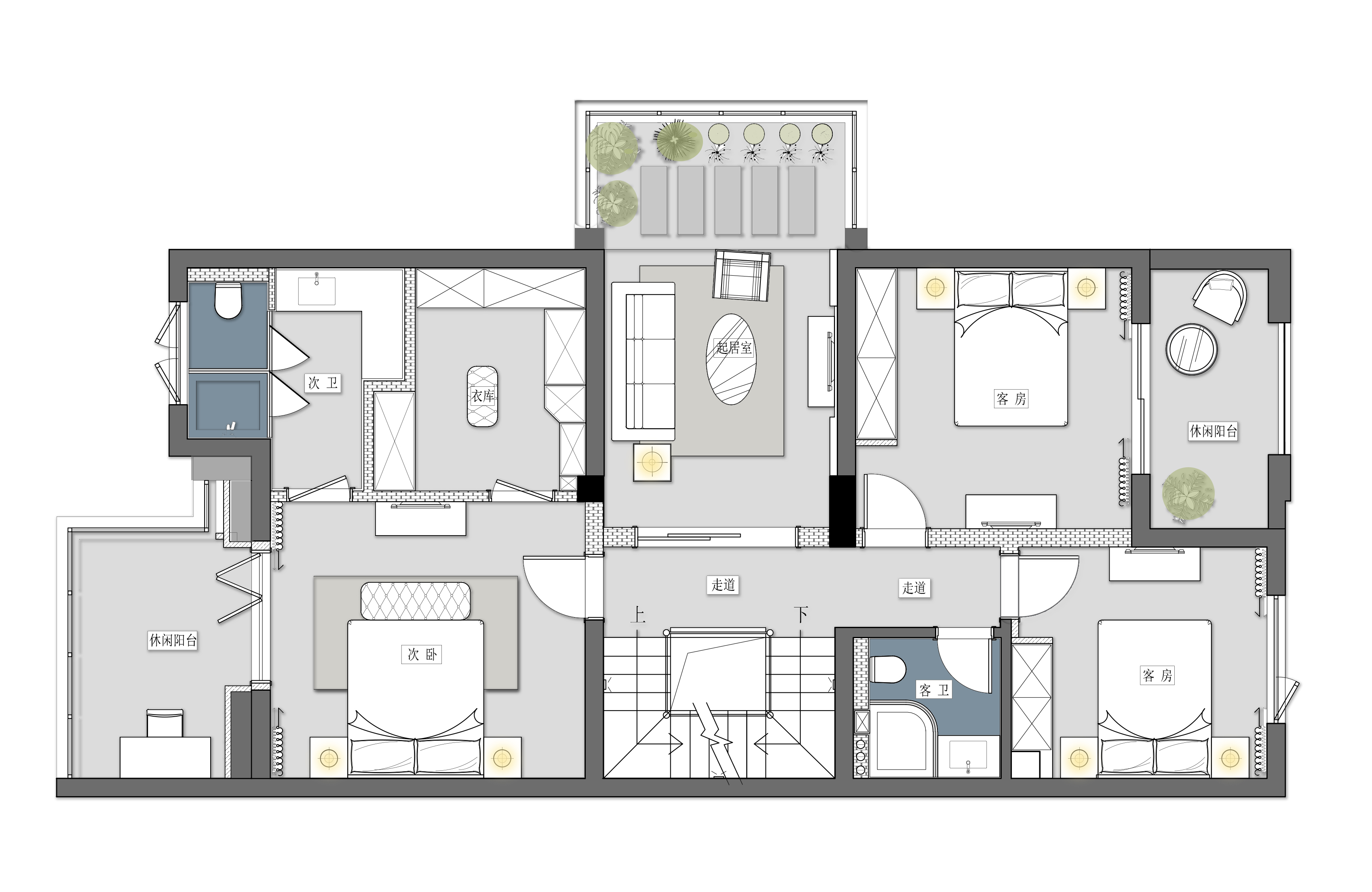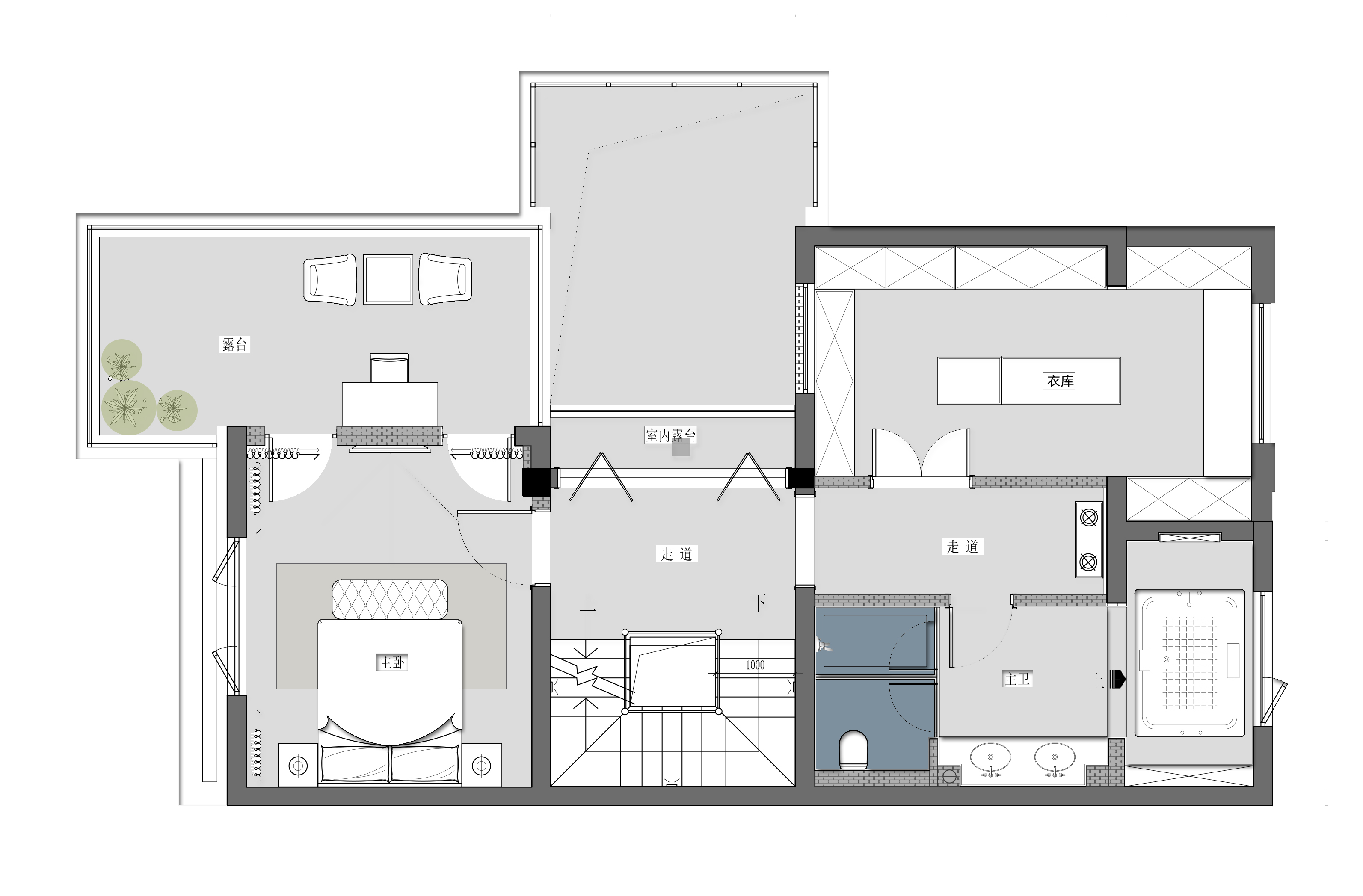 三层为主人空间,该空间包含卧室,大采光起居室,衣帽间,卫生间。