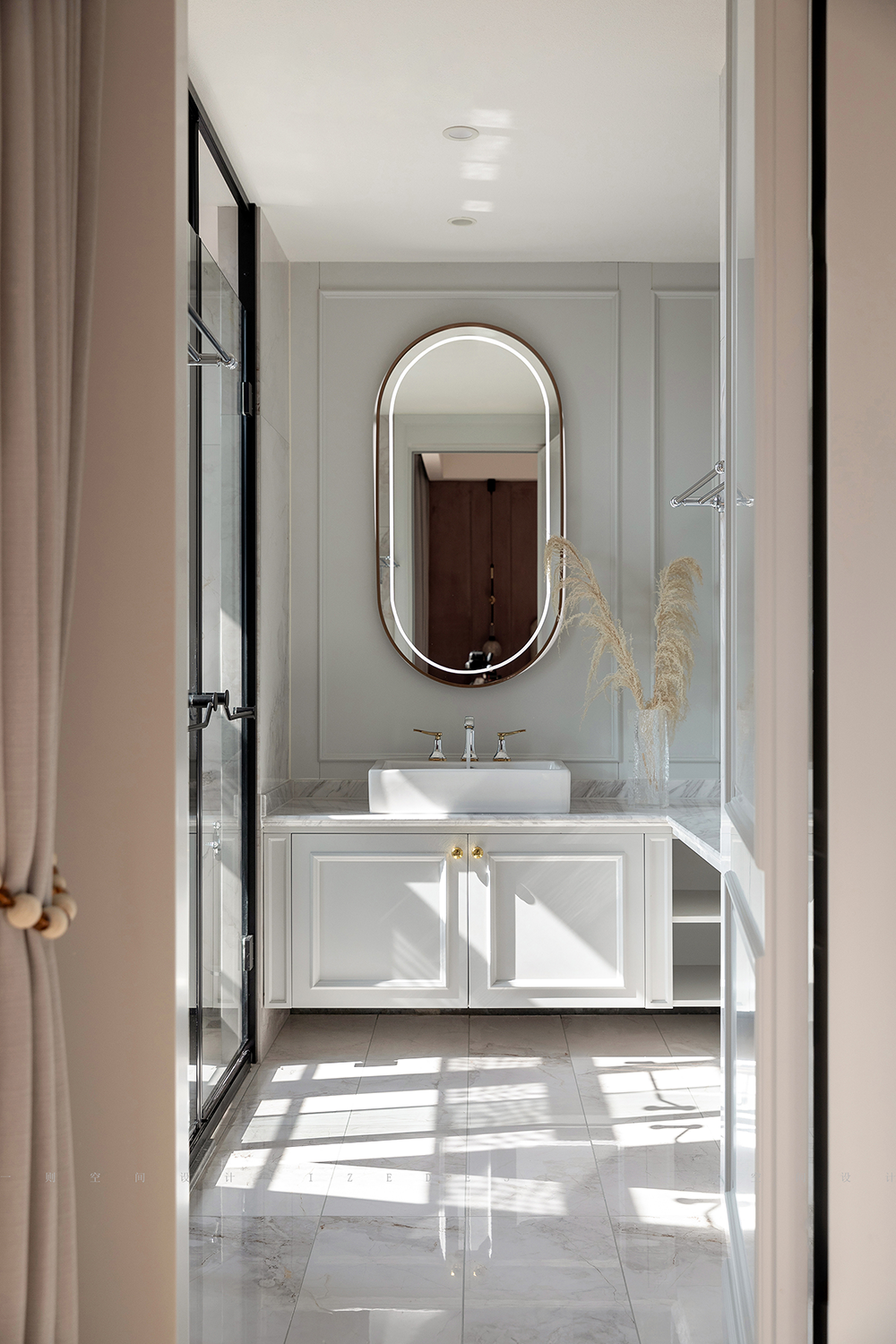 在这一基调之下,女儿房融入粉灰色调,温润的亲和感与自然气息在空间中糅合,彰显着现代主义的舒服、温馨、浪漫。 | 次卫及衣帽间 THE BATHROOM&CLOAKROOM|