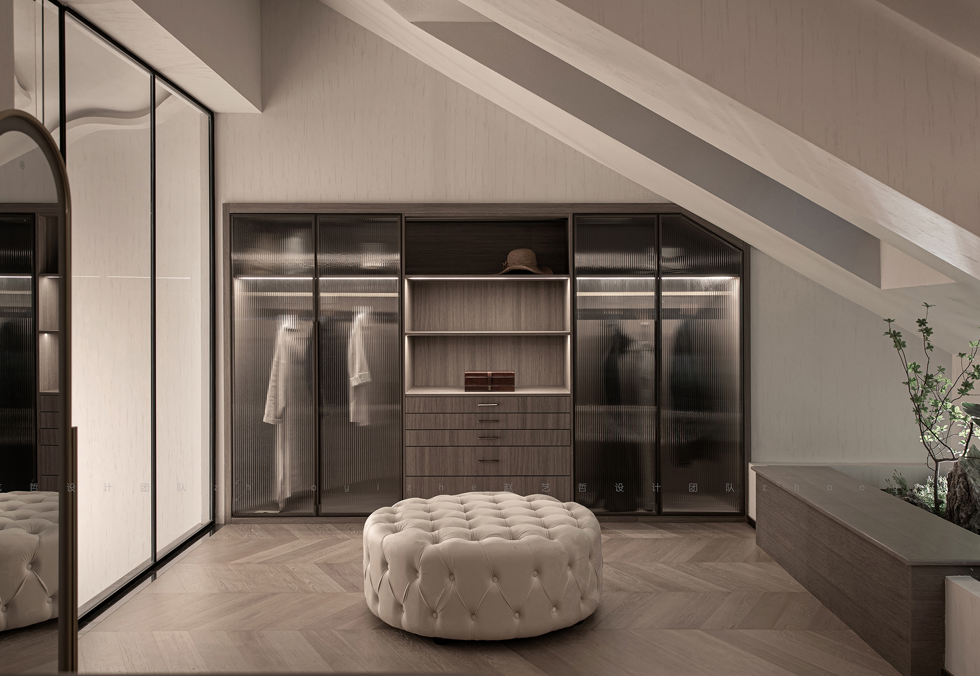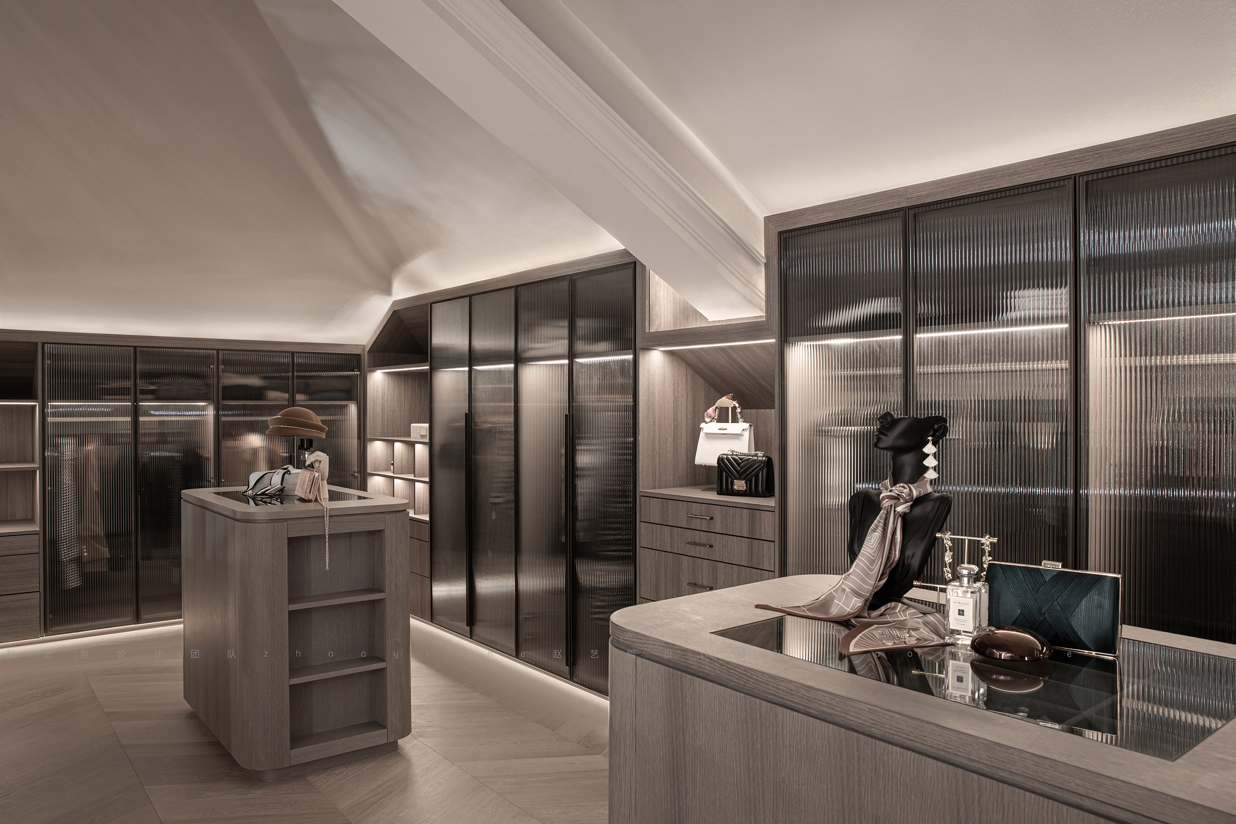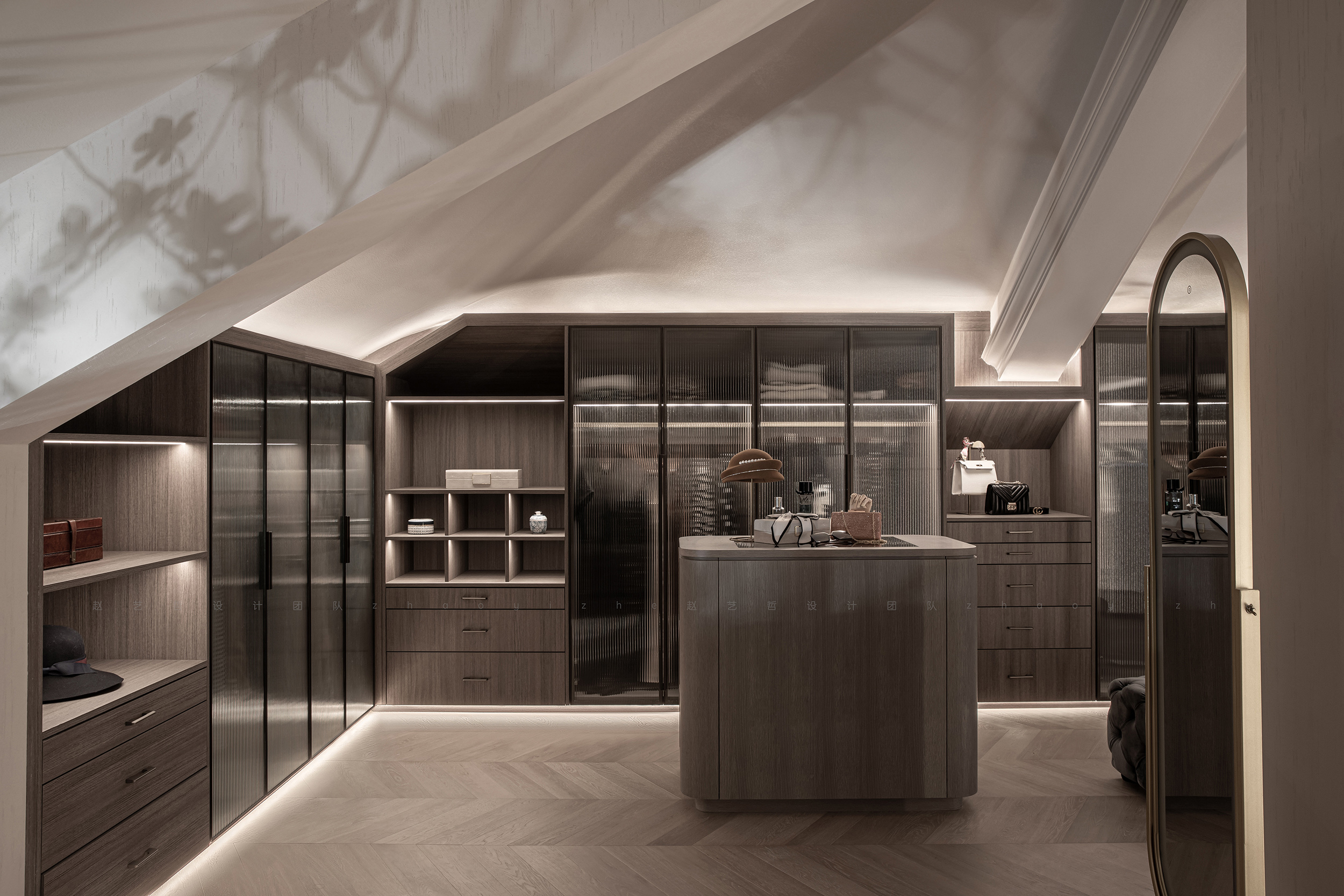 衣帽间最大程度地利用了空间本身的特点和优势,增加储物空间的同时,不忘忽视整体的协调性,并兼顾了空间的私密性。
