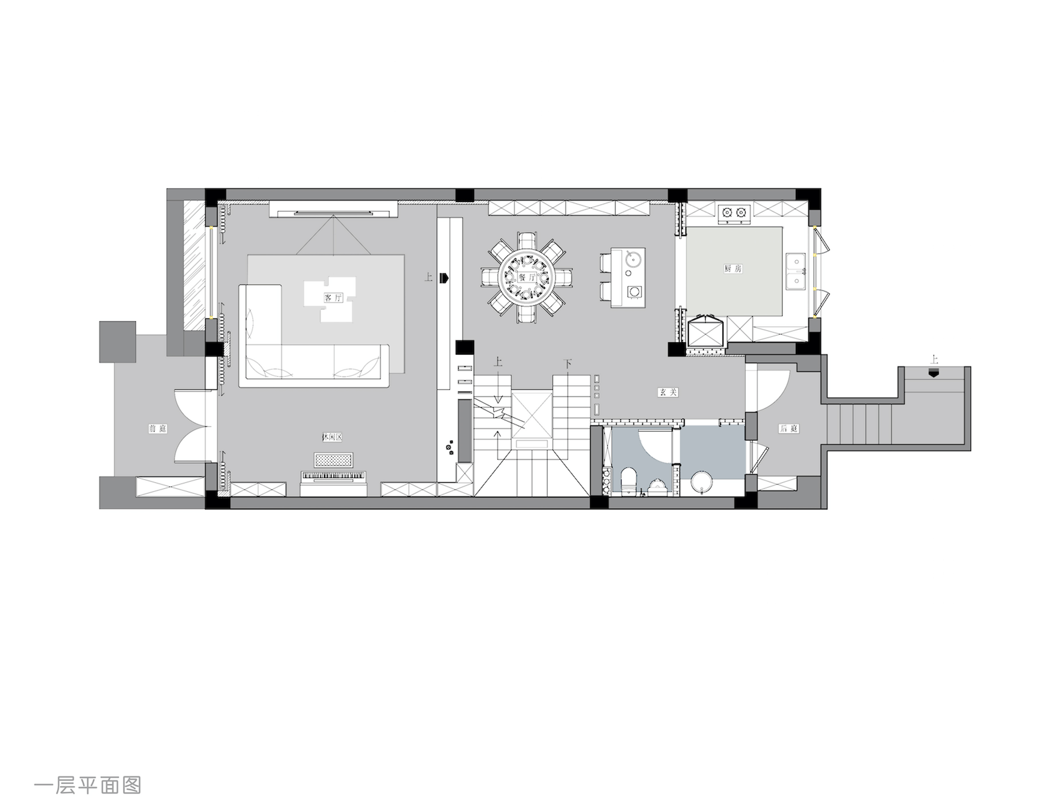 一层为玄关、客厅、餐厅、中西厨;