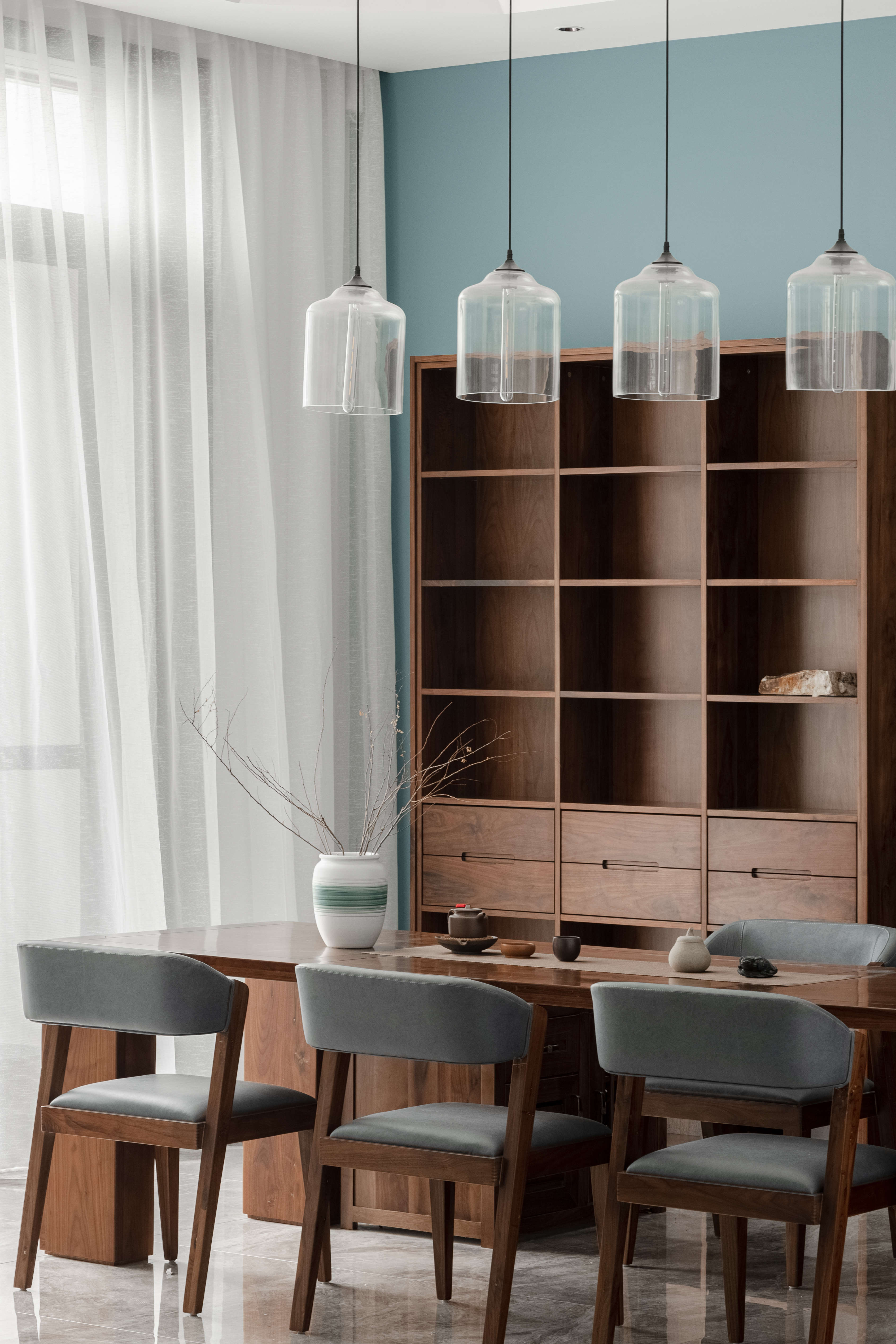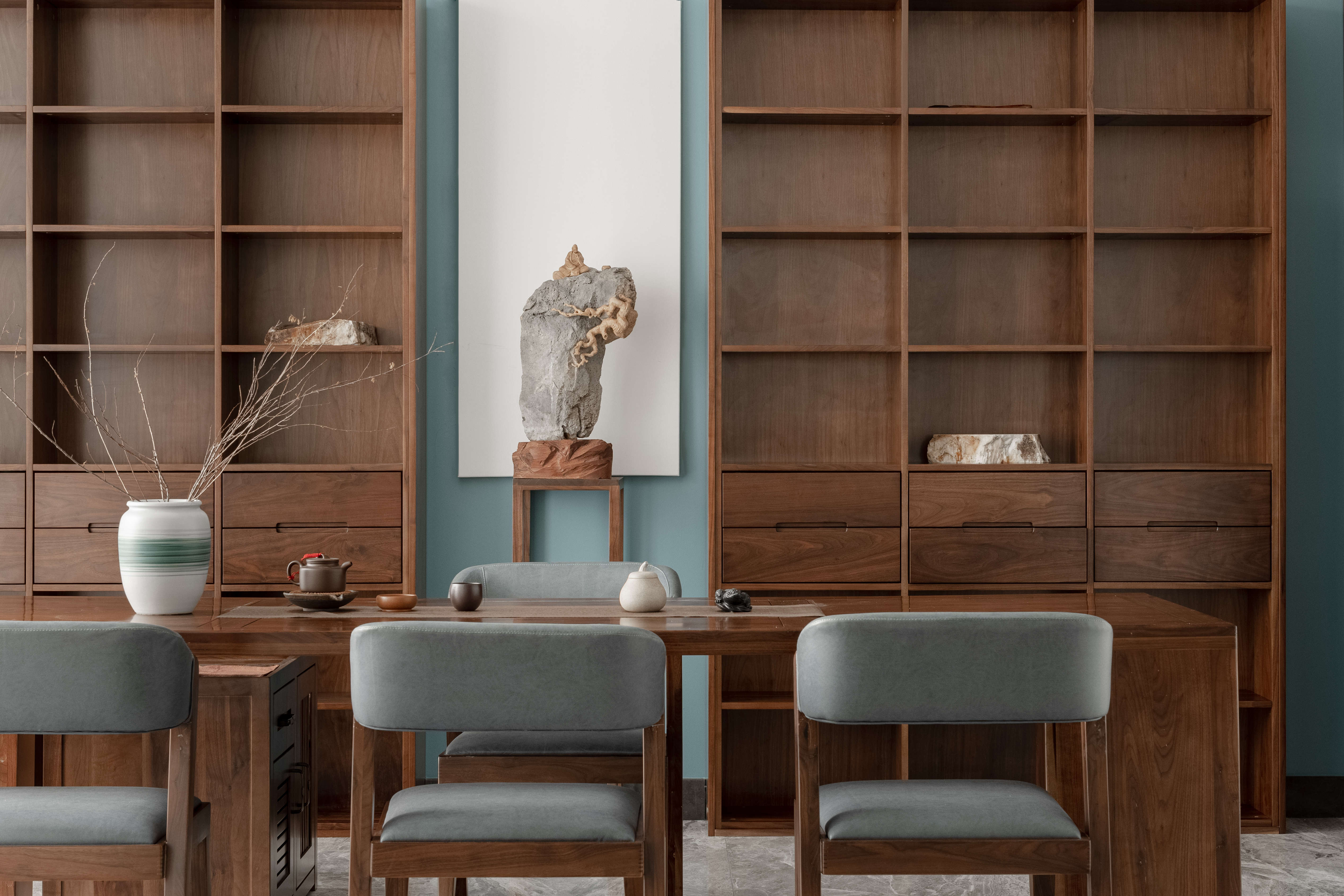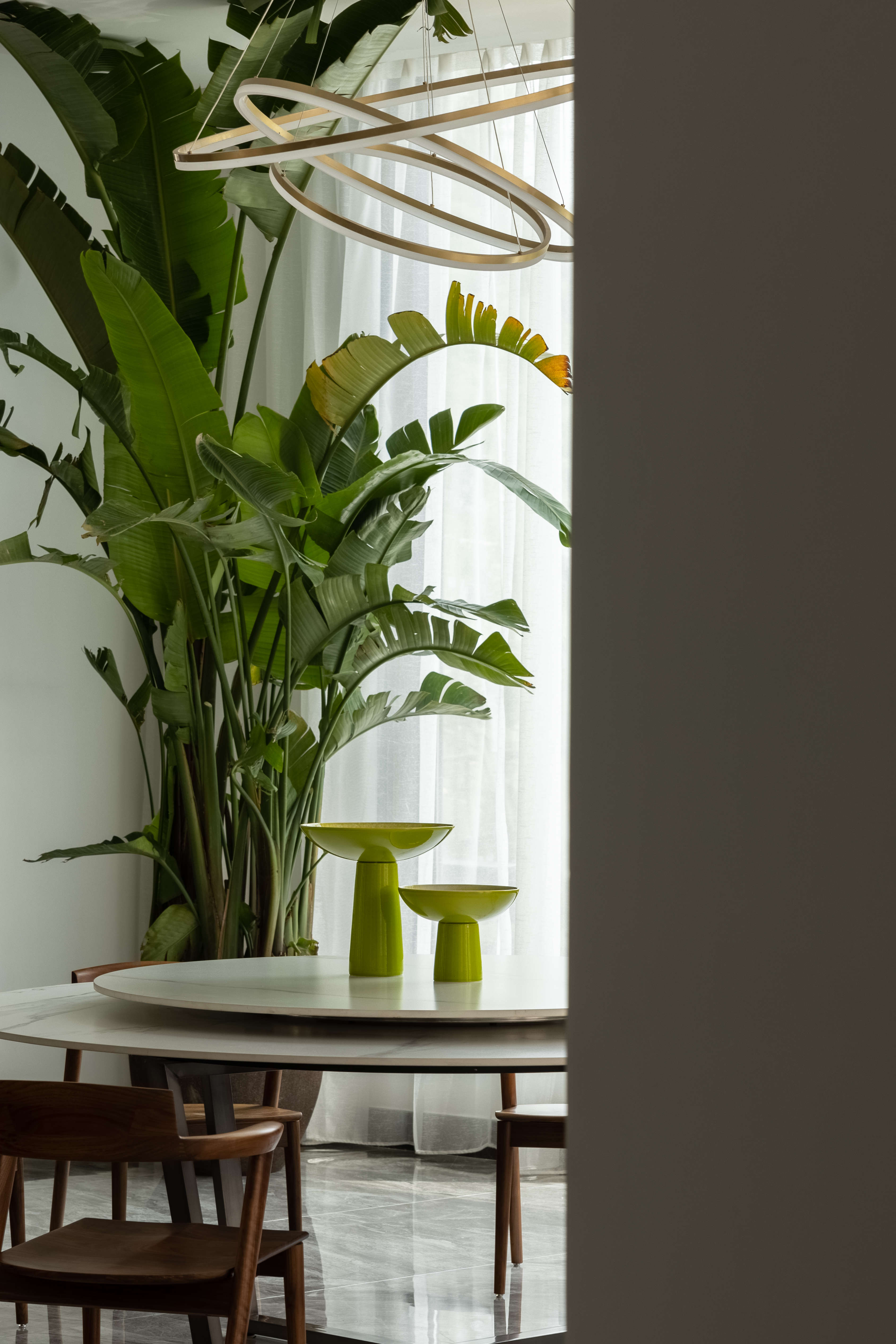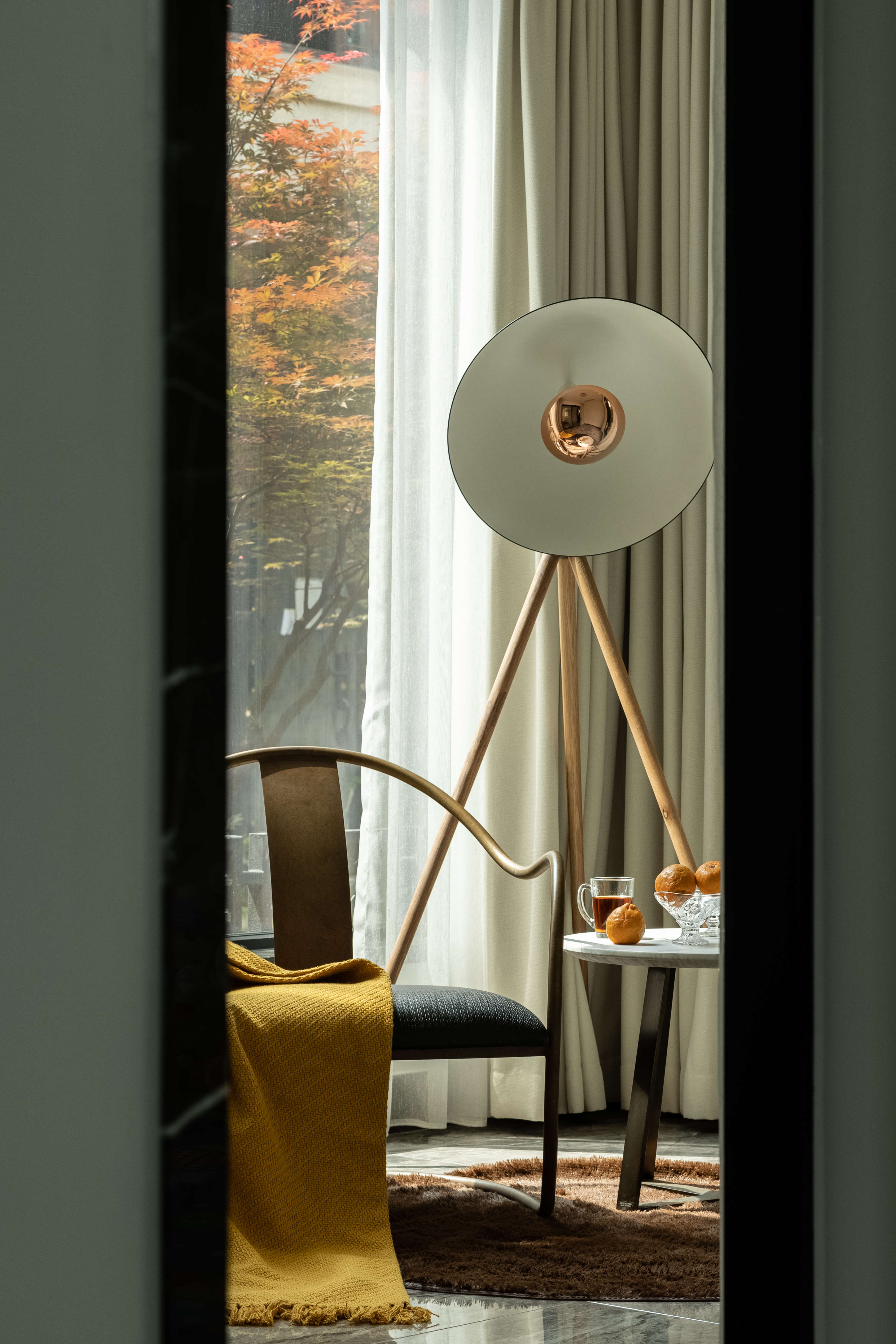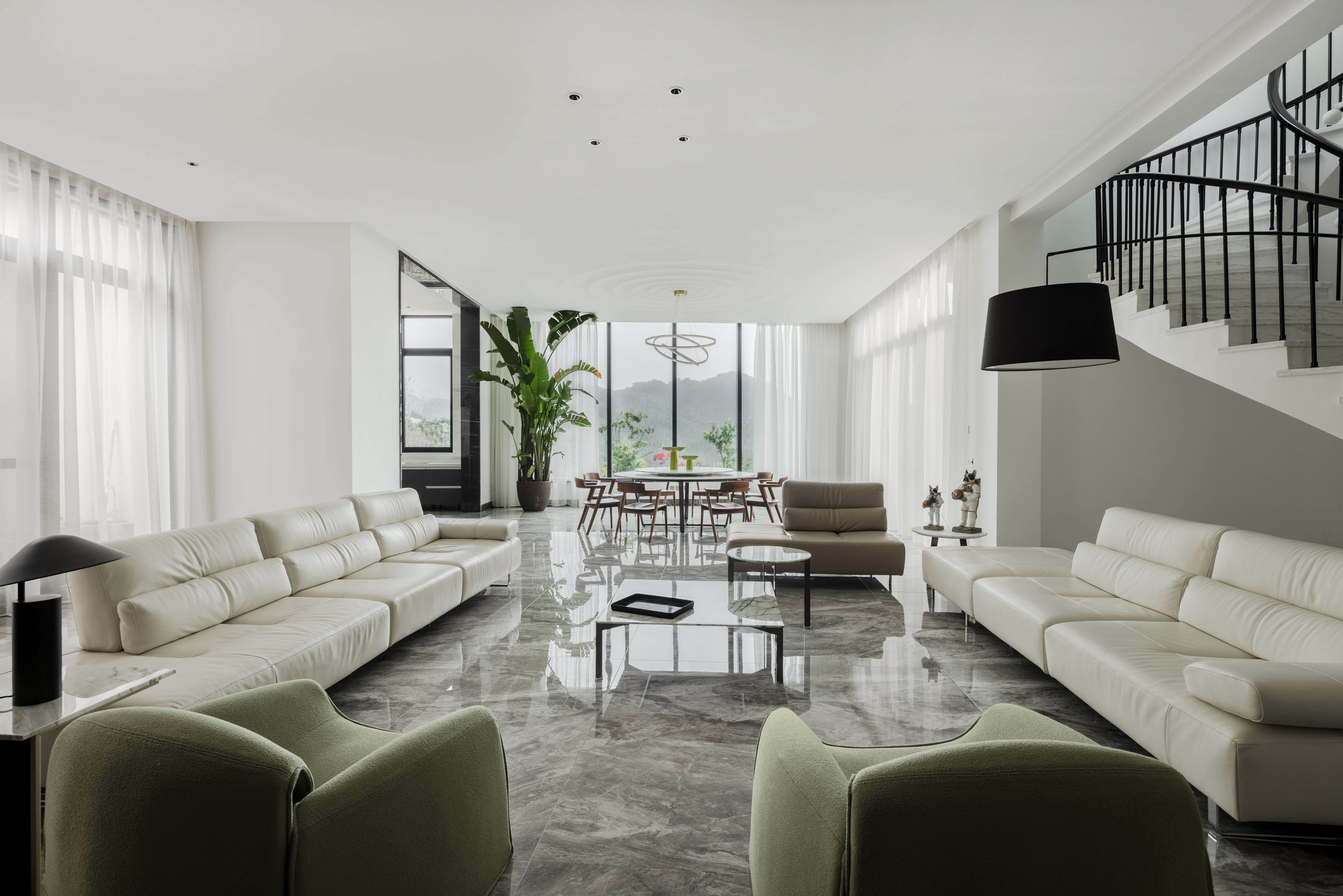 空间意境:半隐于城市之外,“出则繁华,入则宁静”的居所正是本案的所处之地。藏于大境之中,居于生活之内。源于自然而筑,又融入自然之中,顺着建筑的自身优势,设计便自然而然地展开。无需刻意,自然成就。