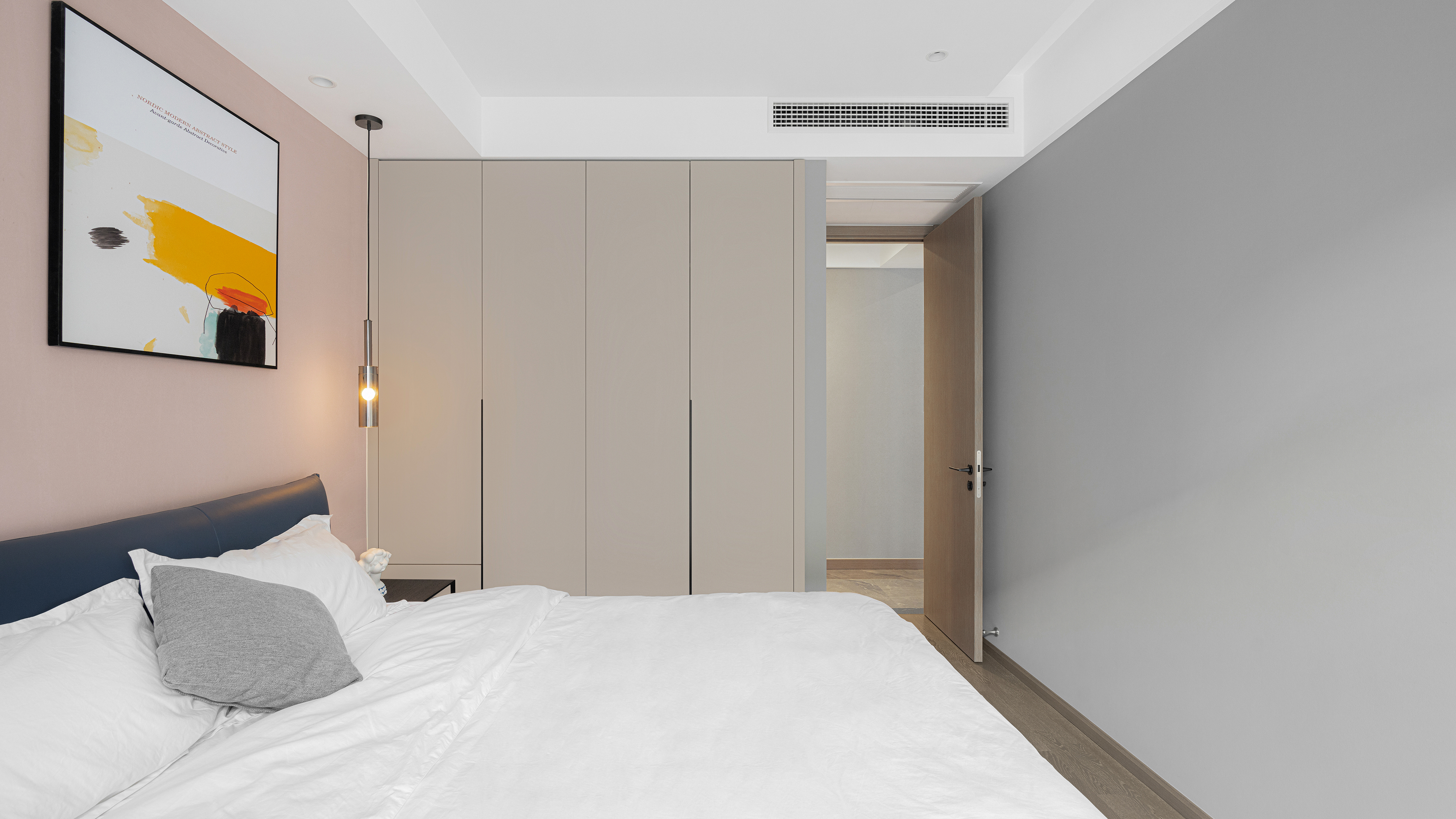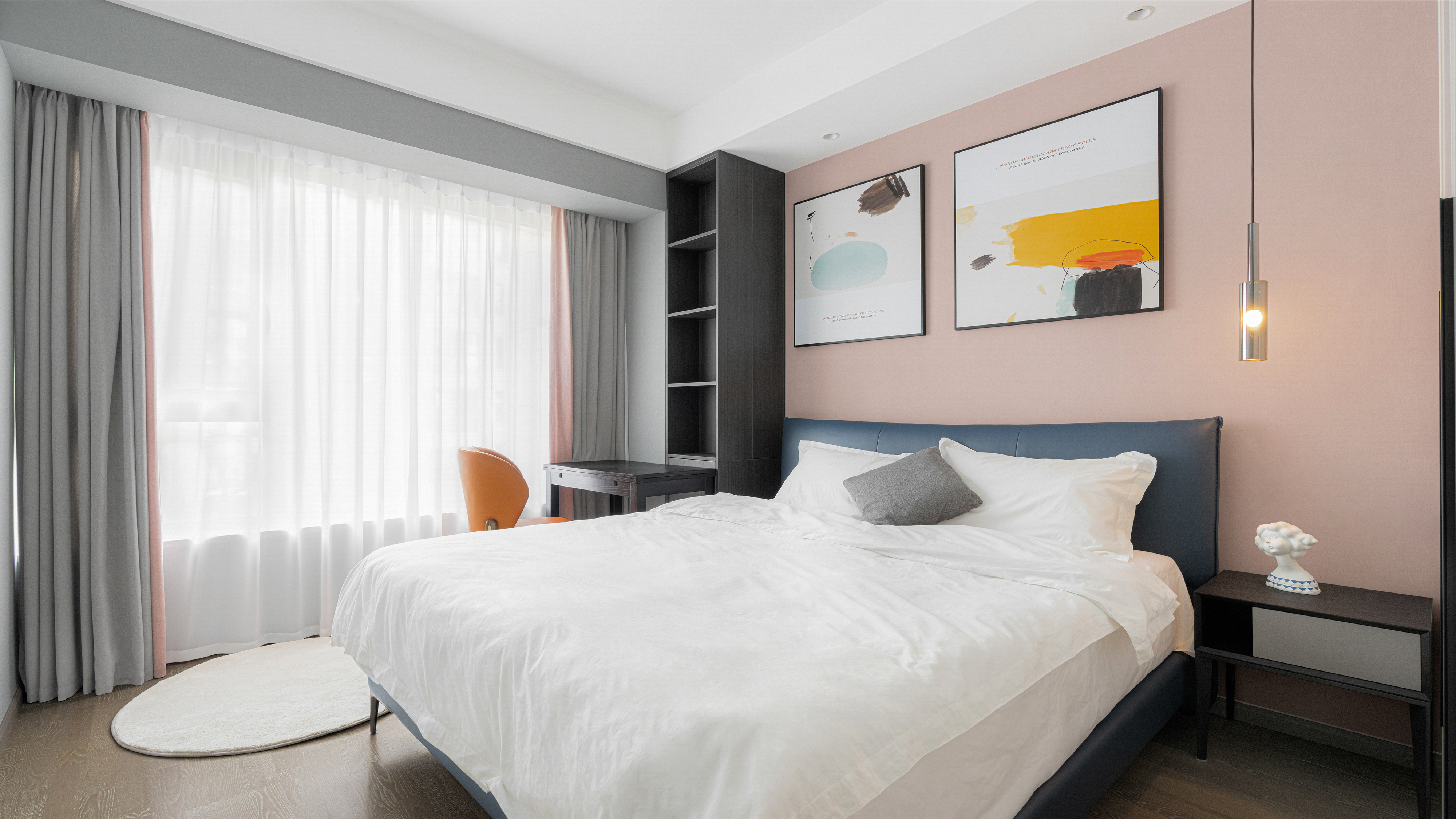 女儿房在呈现简约大气的同时,又极力配合着孩子的审美与志趣。甜品色系既突出着女孩的喜好,也让空间涤荡出满满的艺术氛围。