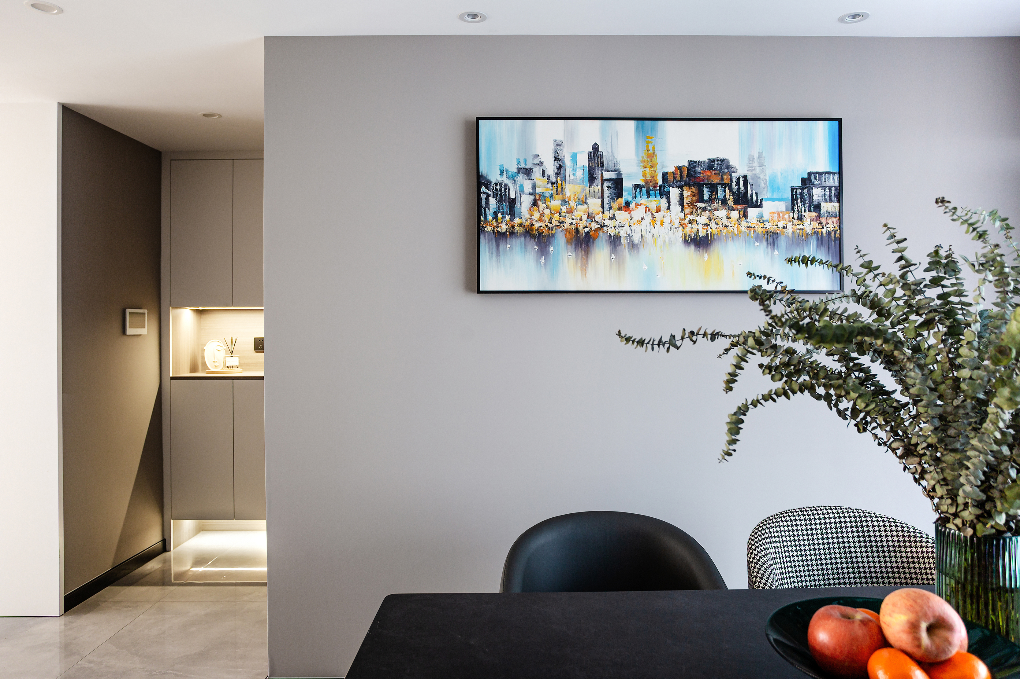 空间意境:软装装饰处理方面,着重用简洁有质感的材料来处理造型,不做复杂造型避免给日后保洁增加烦恼,事实证明,即便是现代简约风格,也能有其独有的韵味。