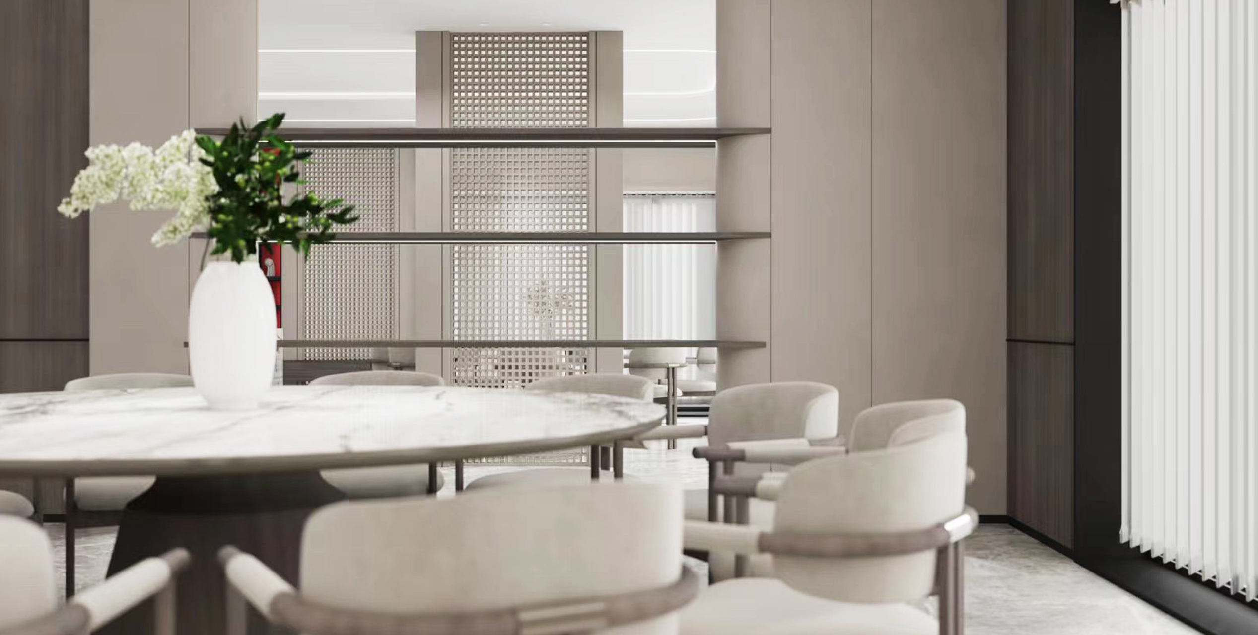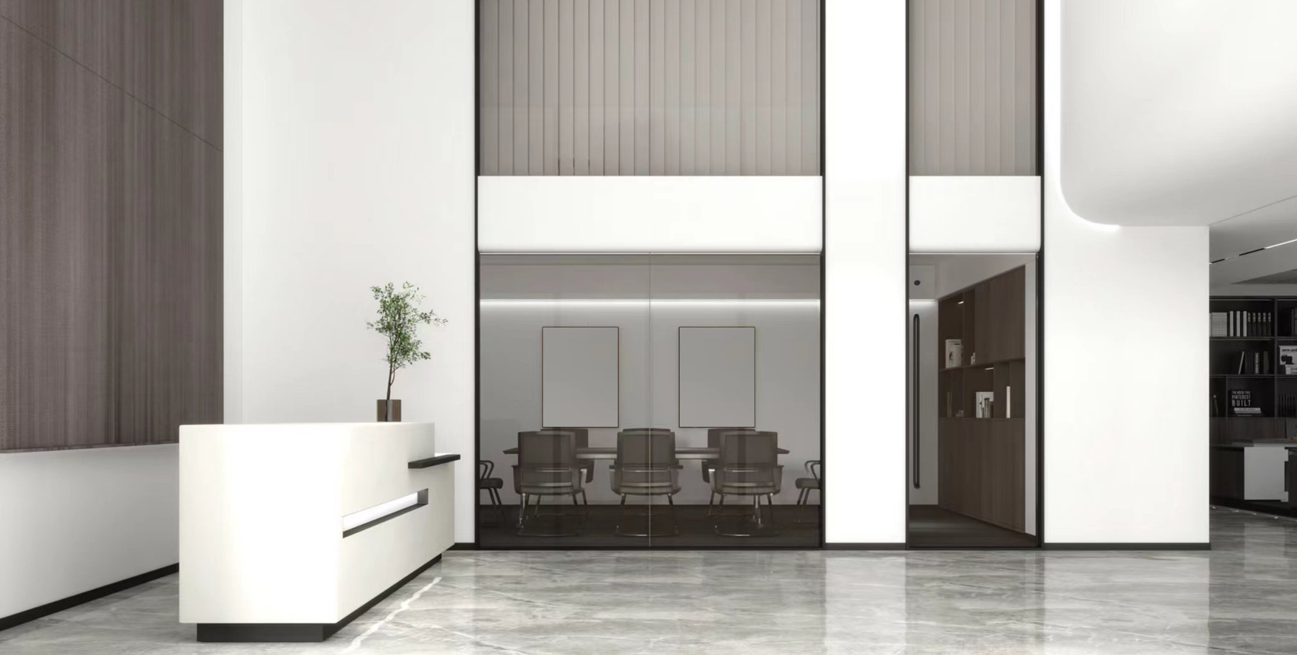 空间意境:办公空间极简的同时不乏设计元素,会所接待空间则要兼顾品质