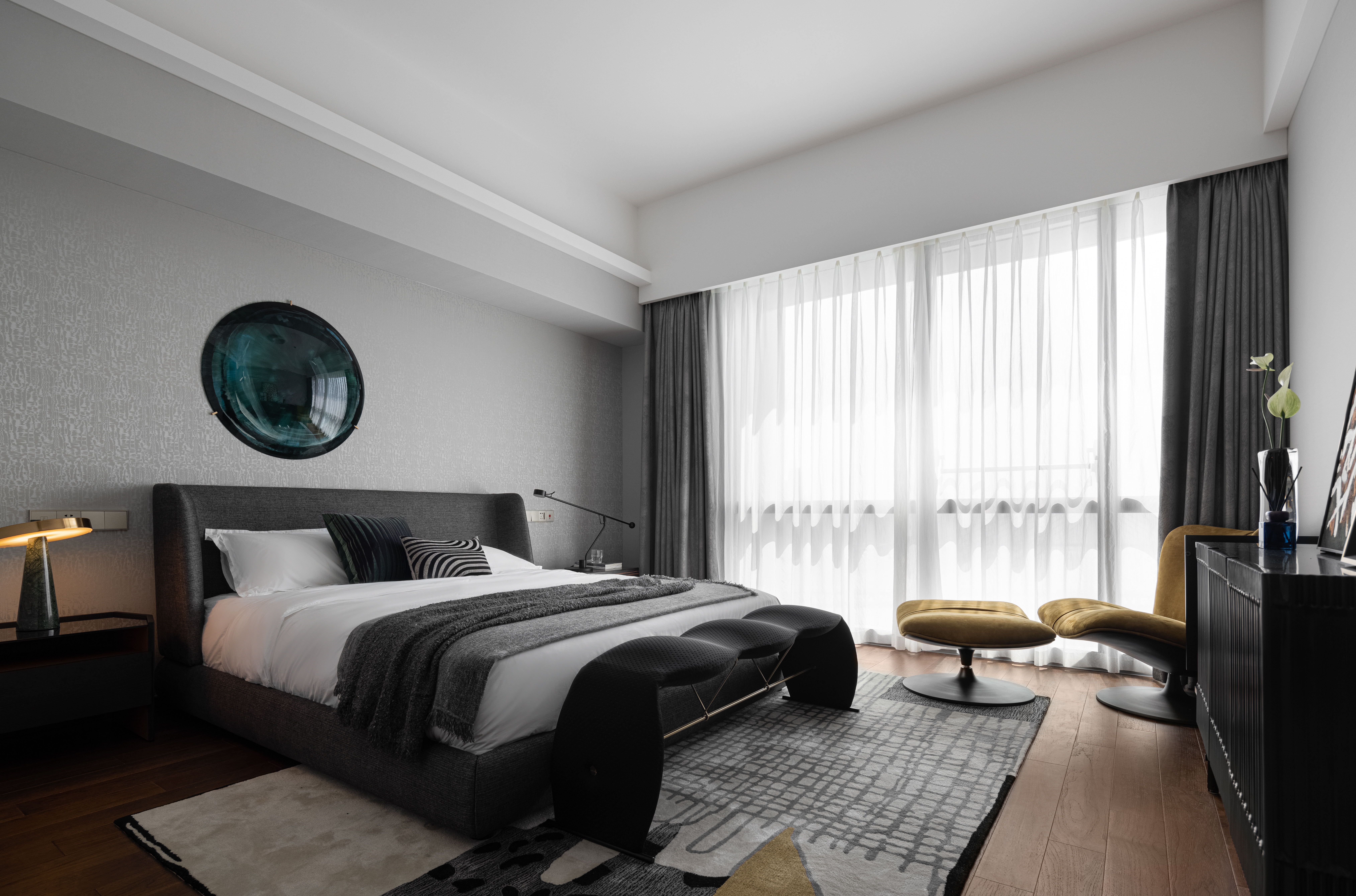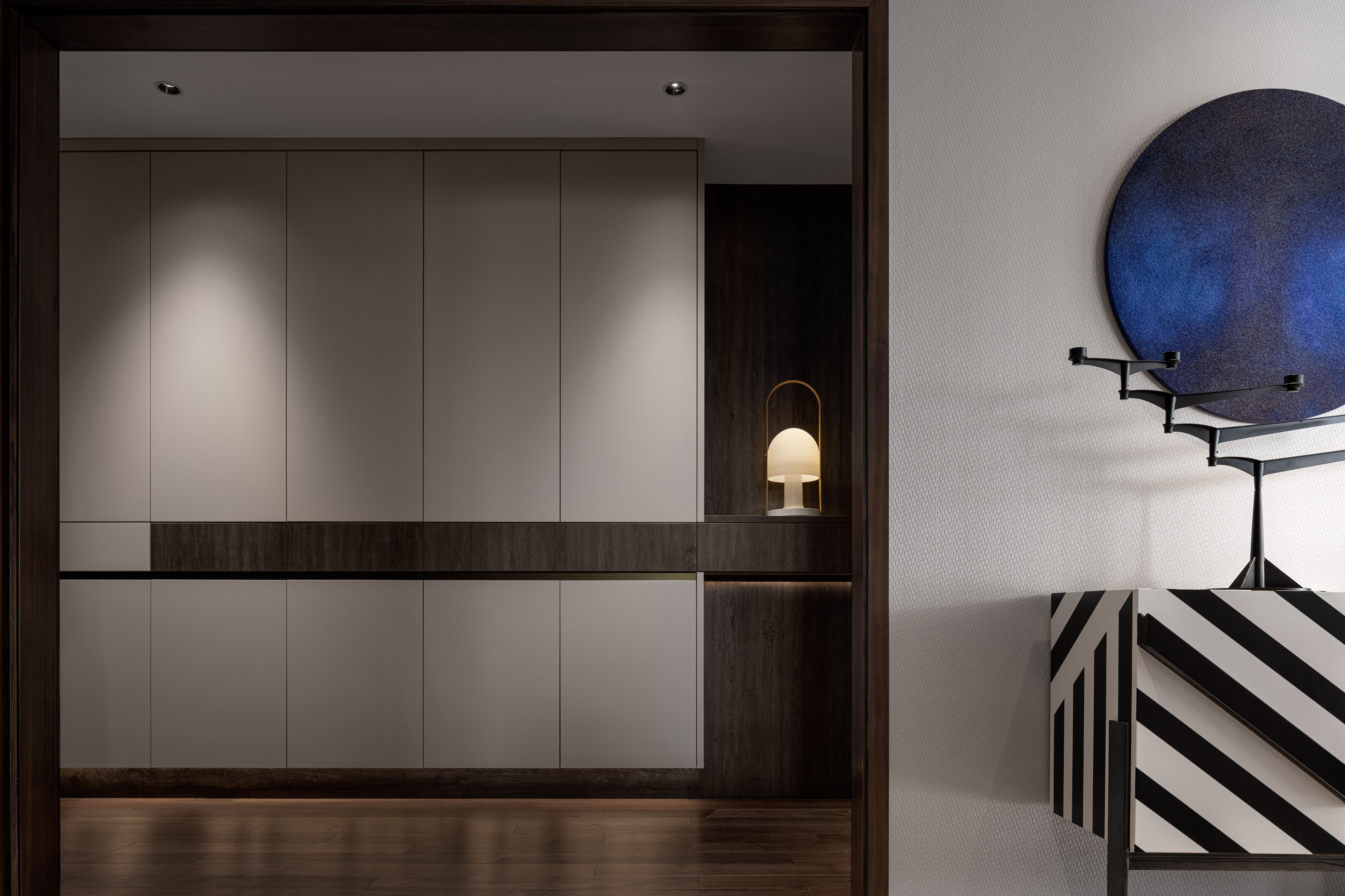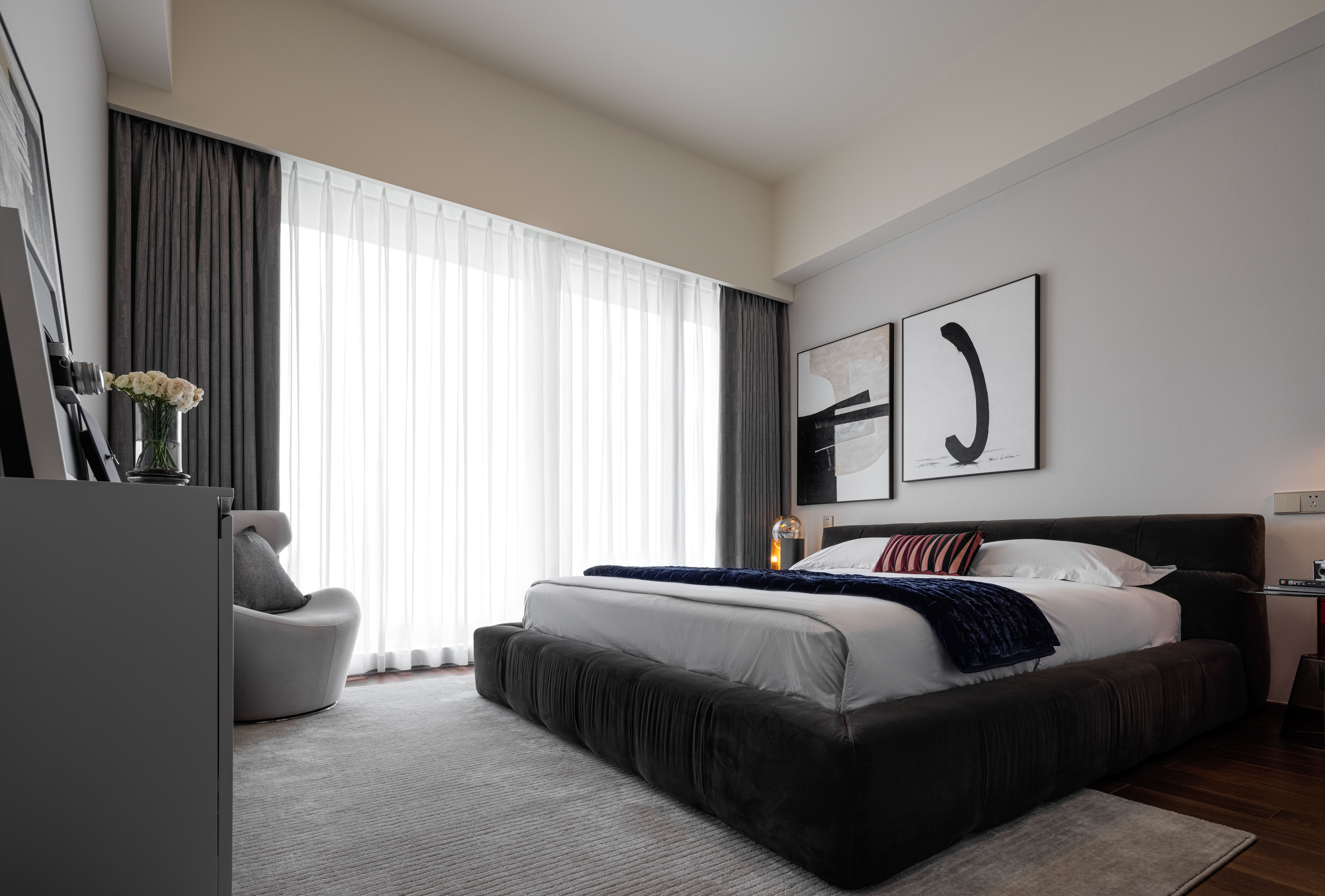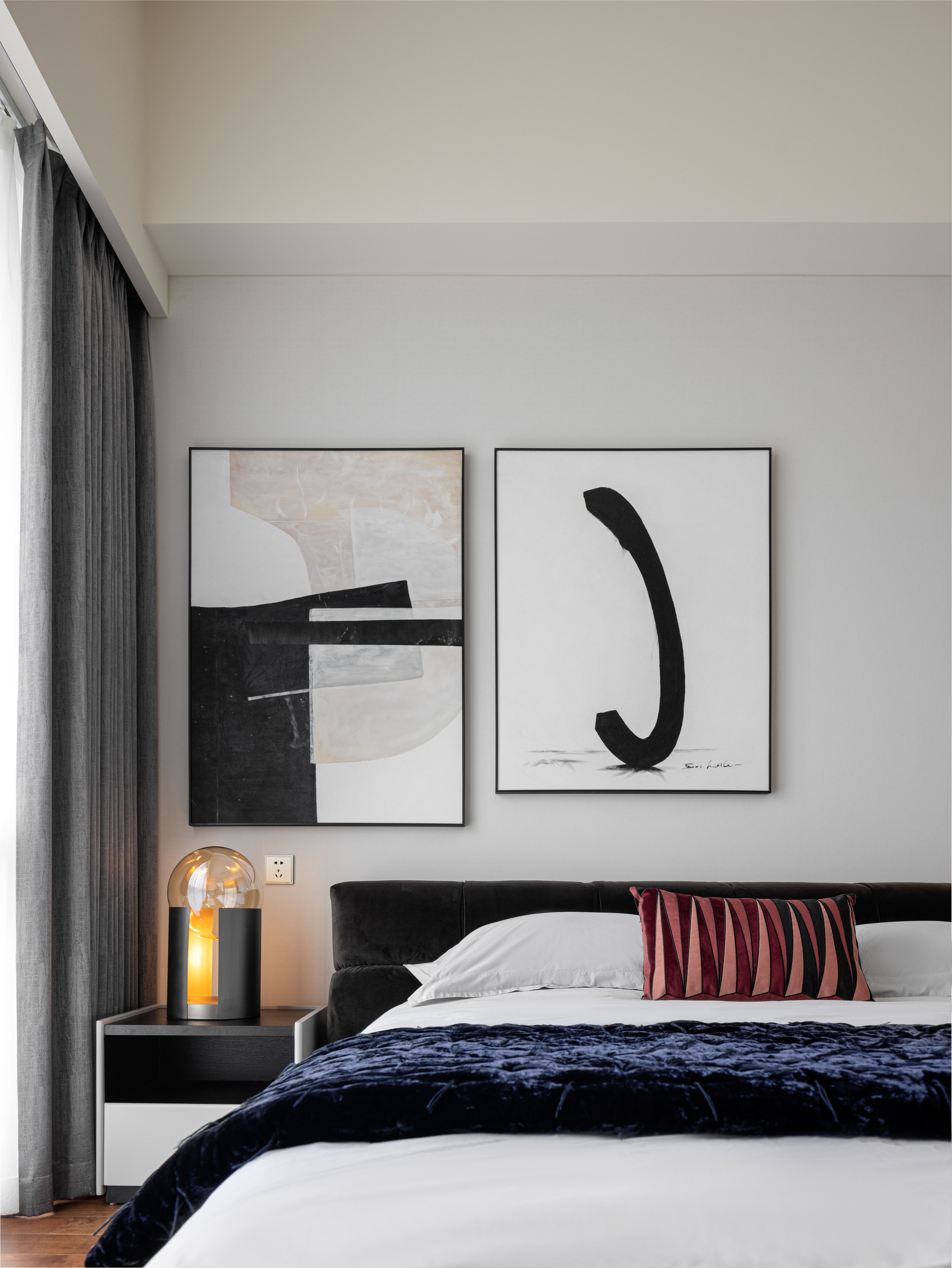 客厅,是一个家的核心空间,它被寄寓着多种氛围场景随意切换的愿望,这里不仅属于居者个人,更是联通及调动所有在此者情感互动的功能空间。双面超大落地窗,阔绰通透的超A视野,尽览渝中母城的景观变化;色彩情绪在此处被集中释放,设计将抽象画的艺术审美与细节的品质生活完美融合,成就了独有的经典式美学。