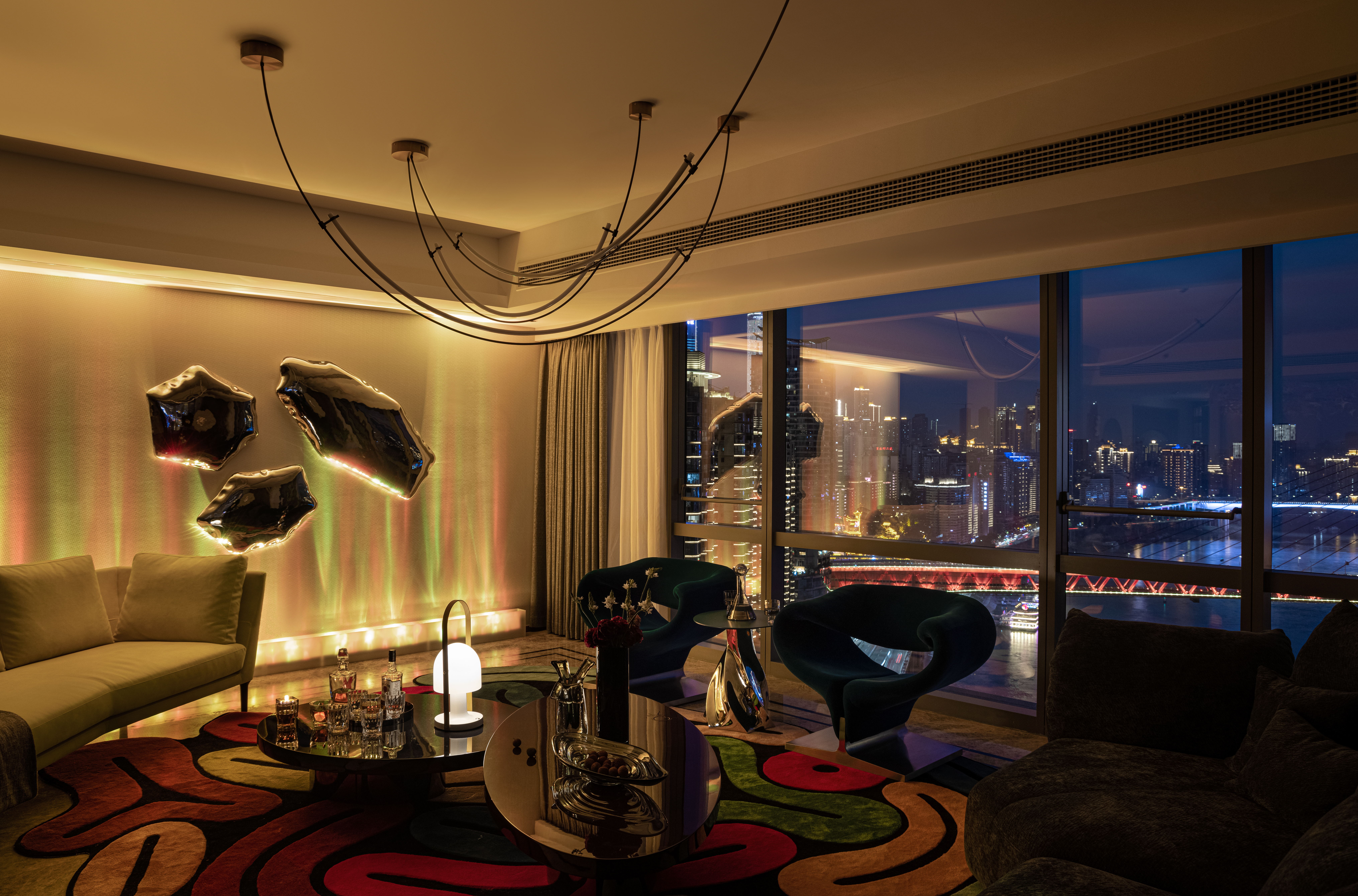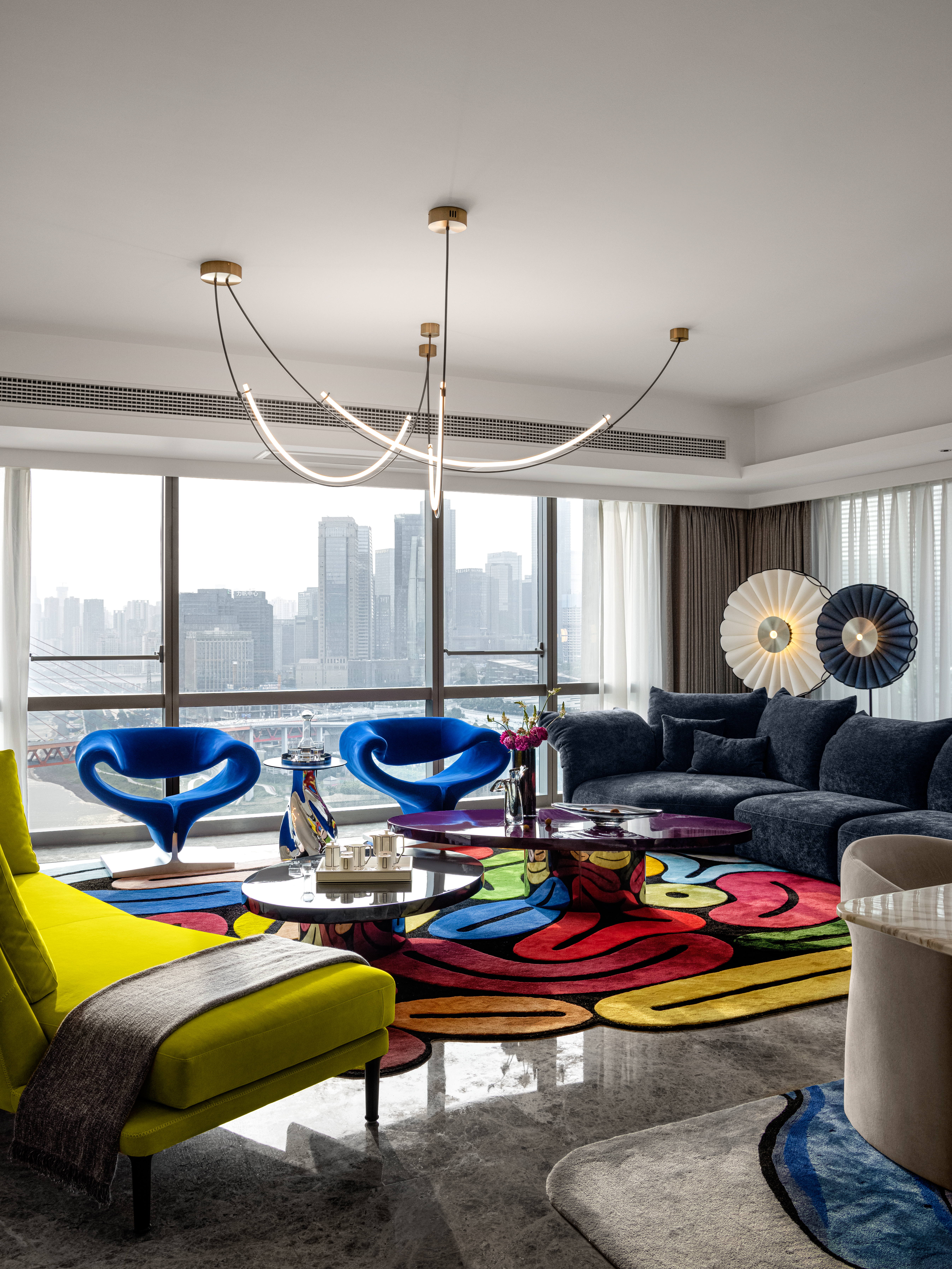 项目定位:本案位于朝天门来福士,作为“新旧重叠”的地理位置,整个作品的设计语言也通过多种色彩的交汇去囊括居者的情绪——业主生长于重庆,但长期居住于美国和上海,这个空间是业主对家乡、对一座城市、 对内心深处最遥远记忆的呼唤,亦是融于当下华灯而仍独享自我的【乌托邦】——大胆奔放的选色带来视觉冲击,浓烈而又细腻的情感则被设计师一点点从深处唤醒。