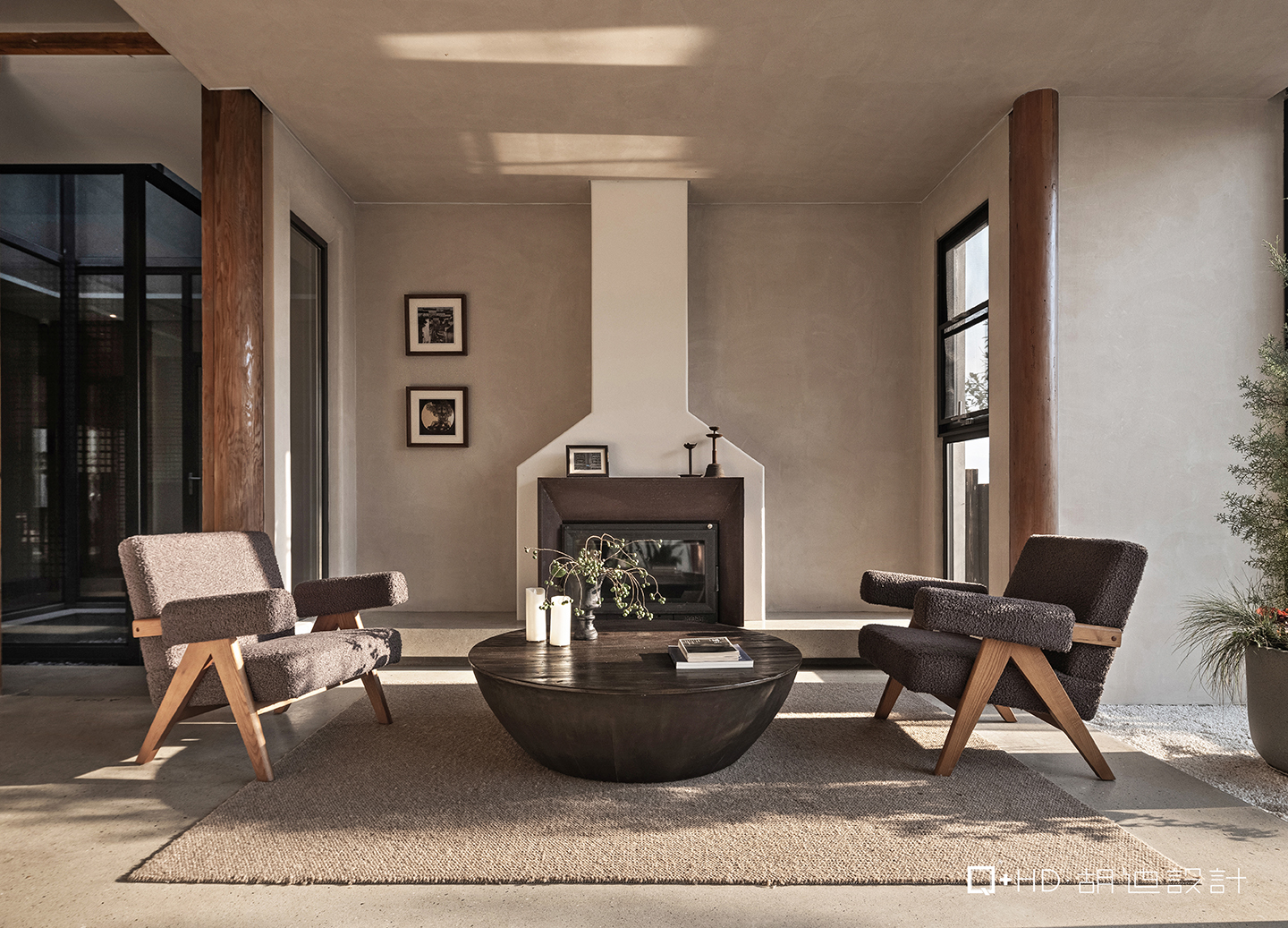 设计选材:选材上没有使用过度的复杂装饰材料,大大面积使用环保涂料和实木木板,空间中很多地方运用当地的石头和木材,最大限度的减少材料消耗。