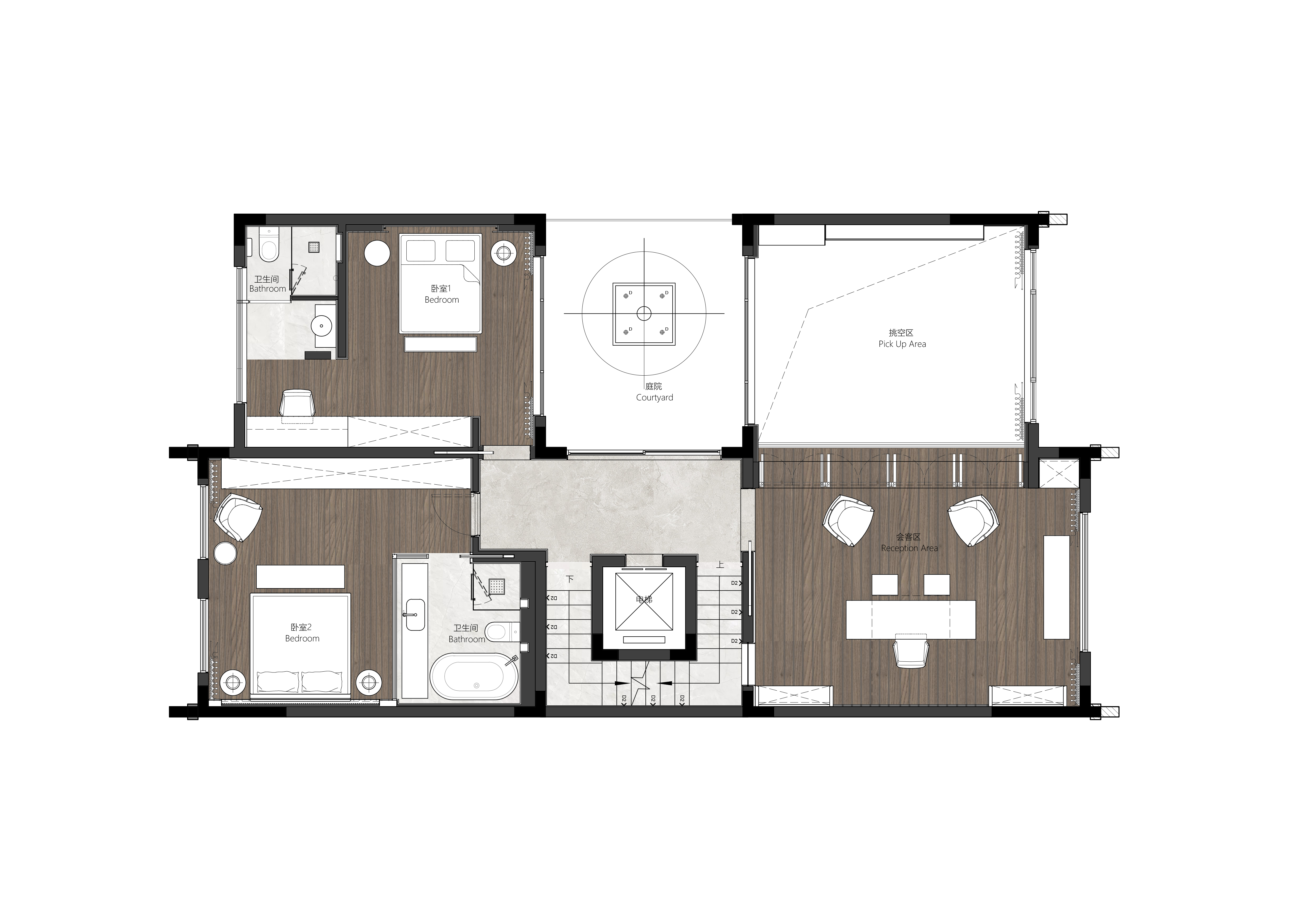 屋主夫妇已逾耳顺之年,这座别墅除自住以外更多的承载着亲礼之愿。基于生活习惯、美学偏好等方面的诉求,设计以室内建筑和家庭情怀为建构概念,通过空间仪式之营造、动线之安排、量体之形塑,以及科技的优雅置入和古典文化的含蓄表达,为屋主描绘一幅集聚会、团圆、休憩、养心等多种功能于一体的家宅画卷:以欢喜心过生活,以平常心生情味。