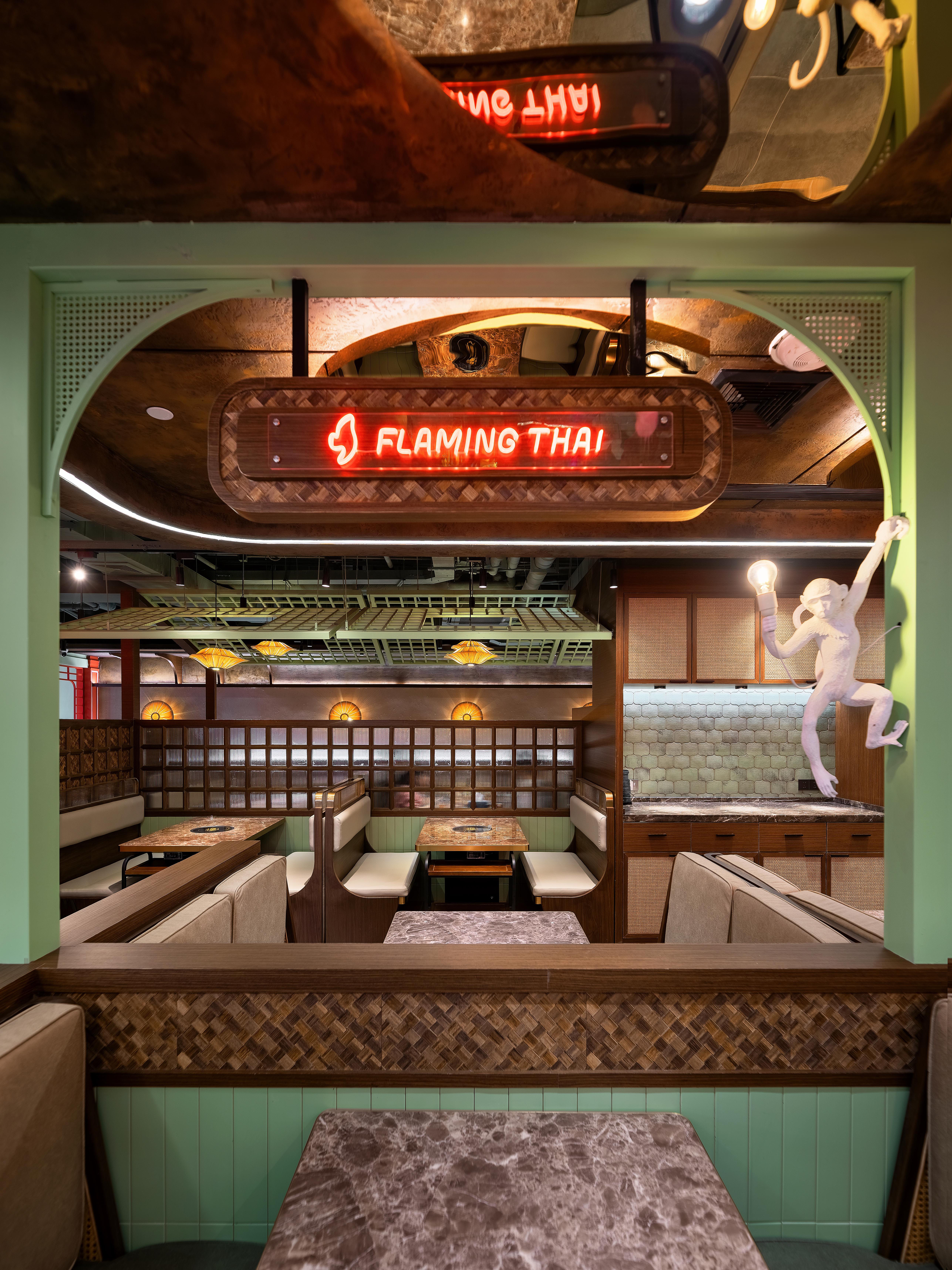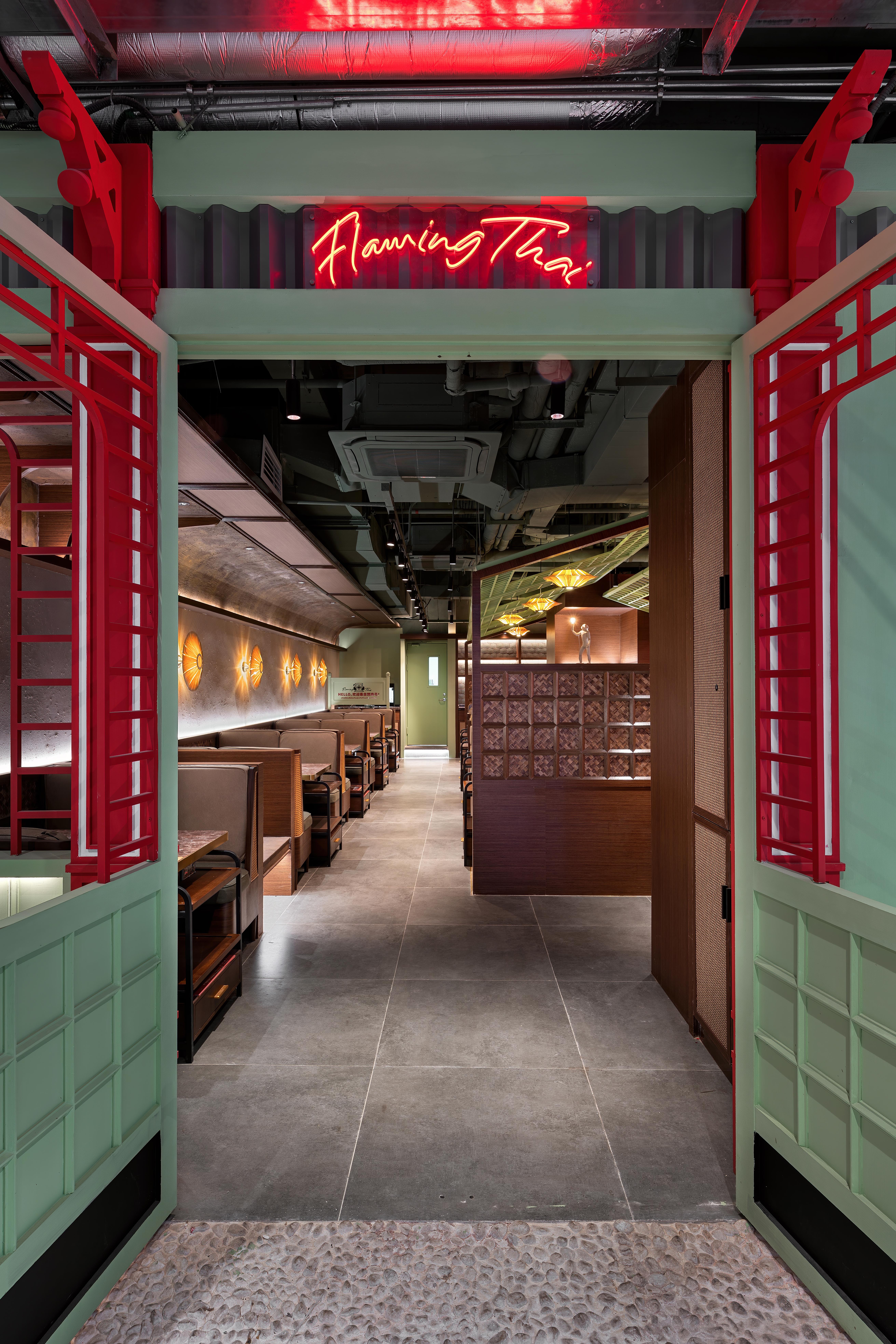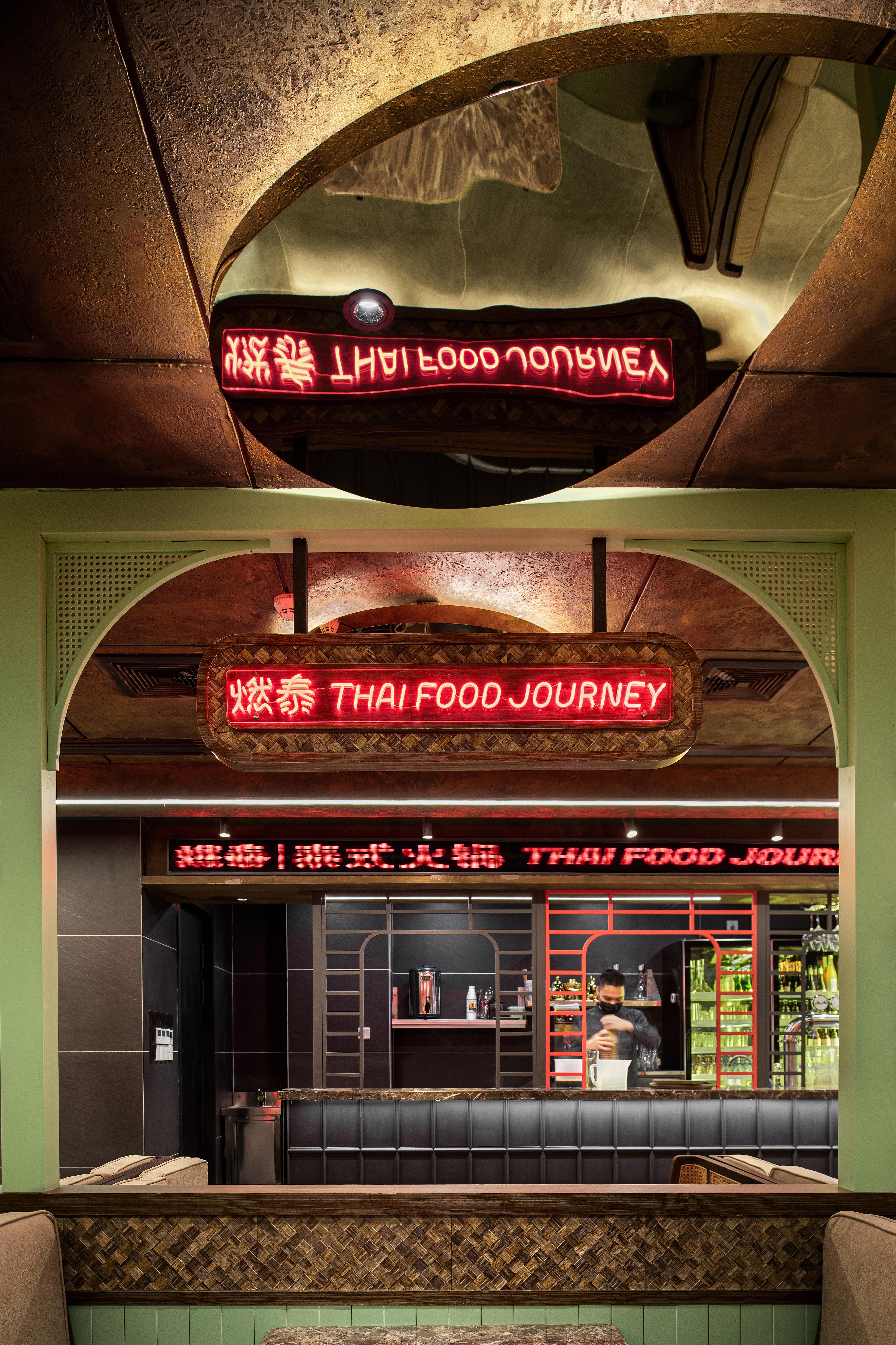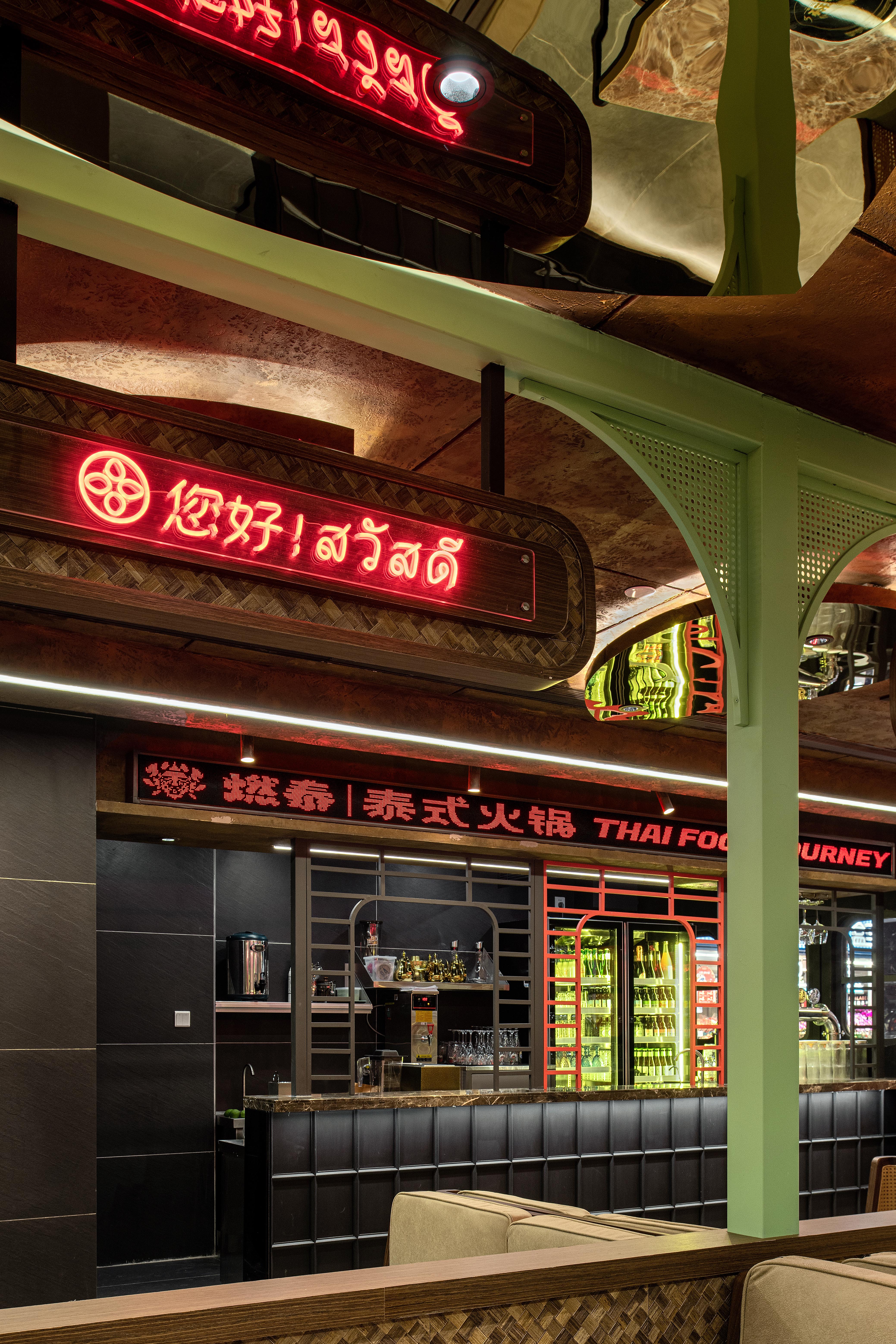 设计过程中为满足有限空间里的在地性及对燃泰品牌全面升级的构思,故以提取泰国喧闹又静谧的精神特质,针对性地诠释泰式风情的当代注解。 -