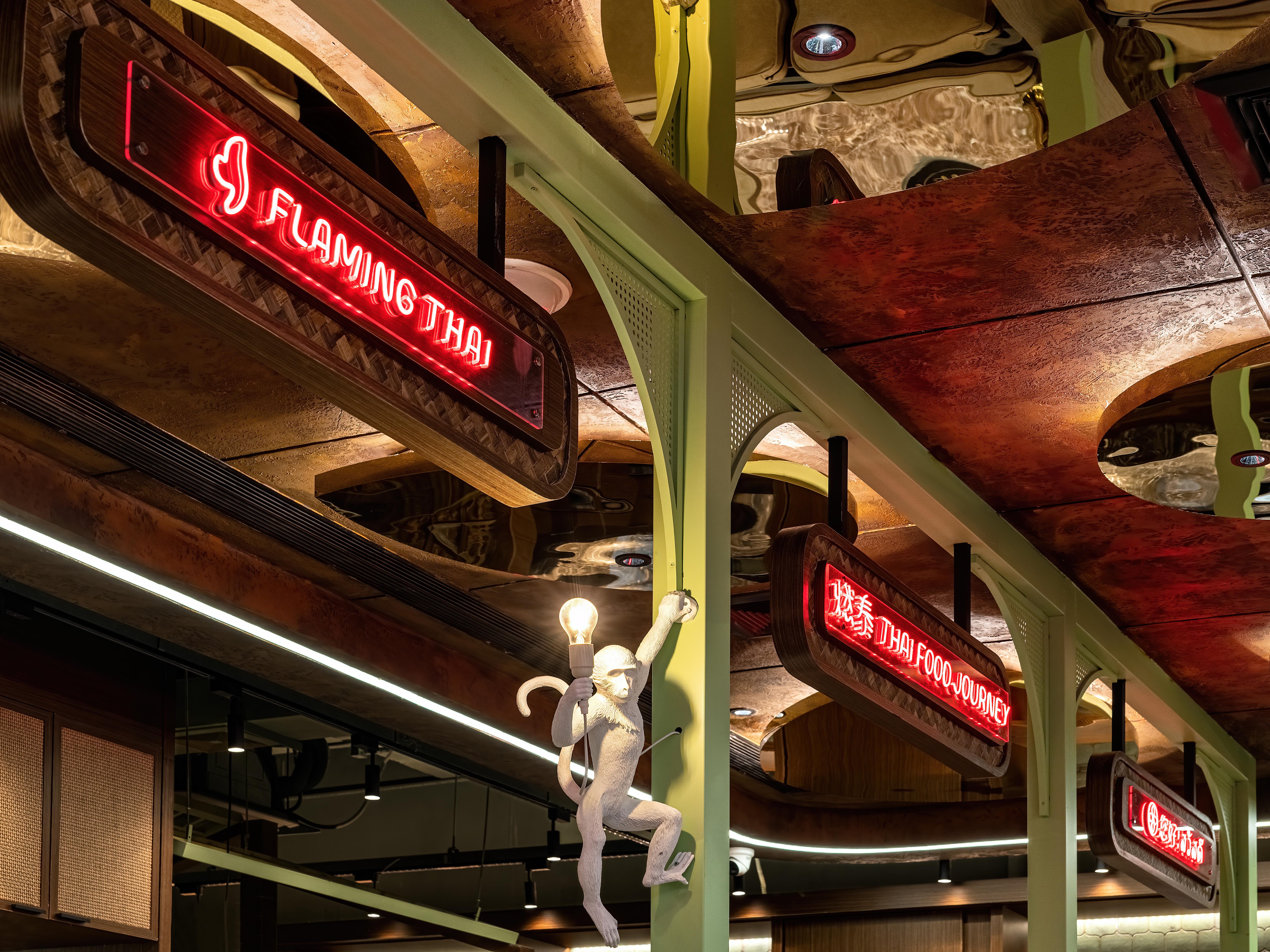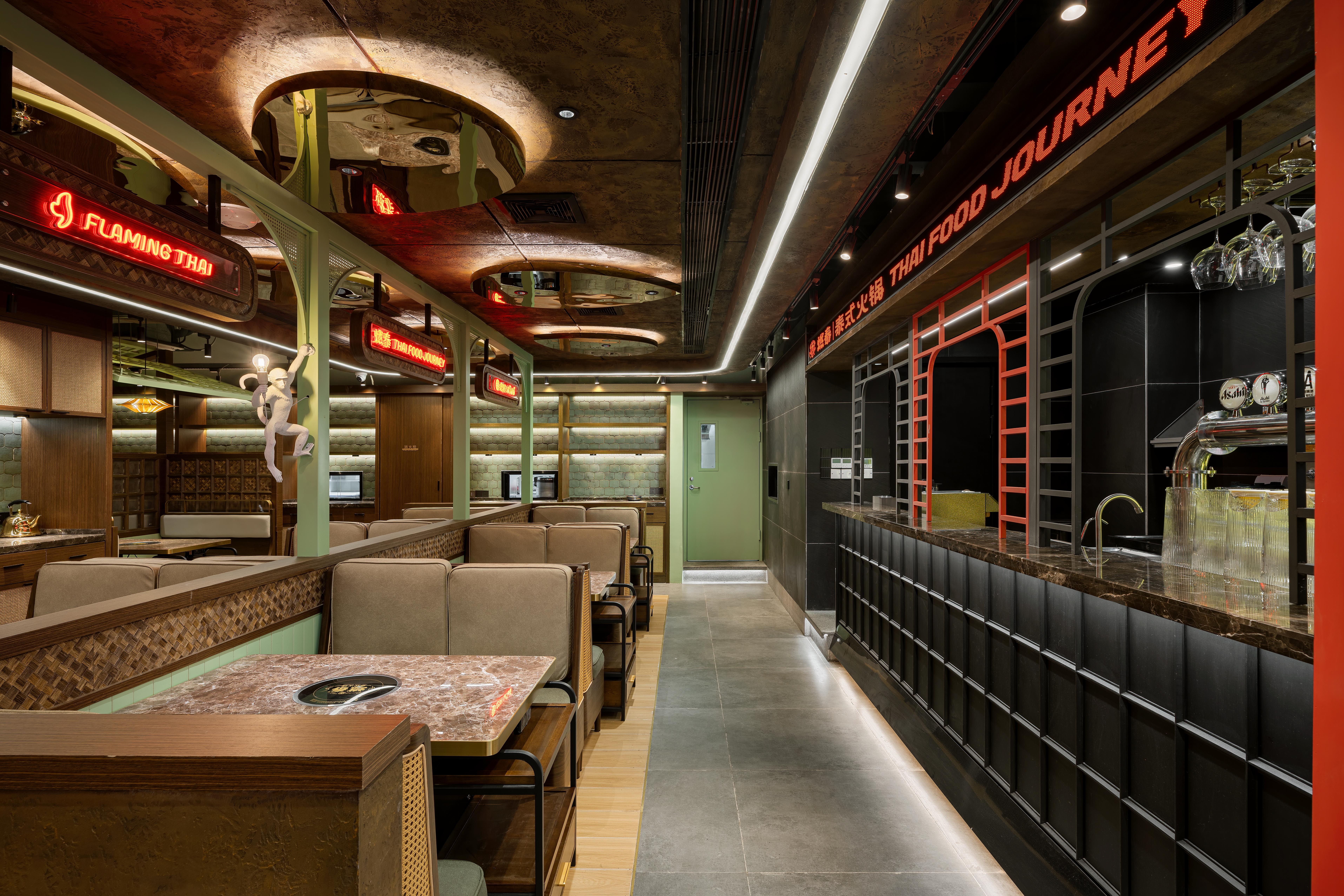 项目定位:本案项目位于广州市天河区YCC!天宜,由正在设计团队全新研发的燃泰·泰式火锅空间系统。设计规划上利用泰式火锅独特的人文厚度与美食吸附力,致力打造成体验及消费场景创新的高地。