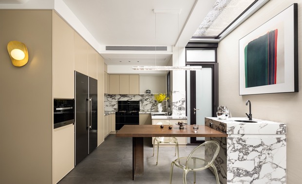 项目定位:明亮而温柔的基调,奶油色的艺术涂料,温润的木饰面。客餐厅厨房一体化的设计令视野开阔。流畅的线条感,营造出精致富有质感的浪漫氛围。