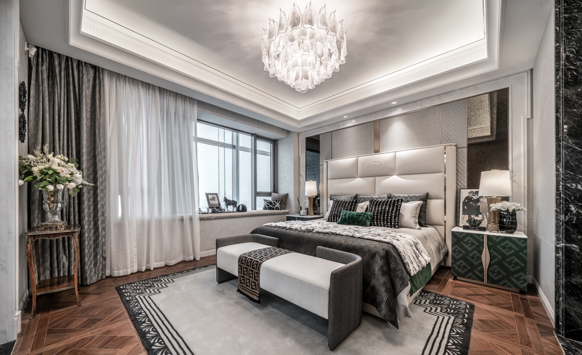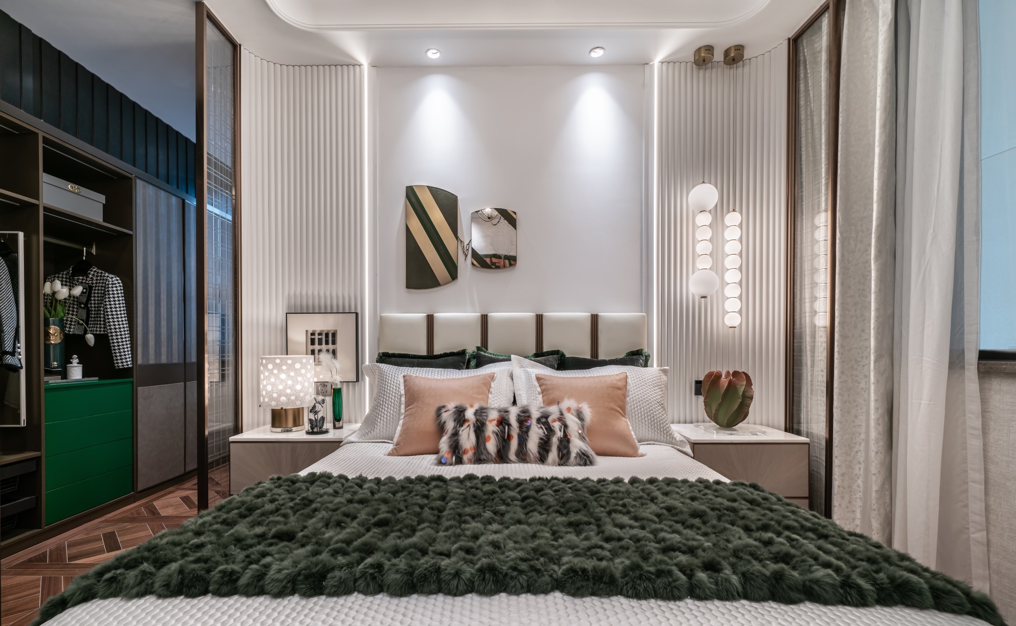 主卧延续客厅整体色调,空间轮廓的勾勒尽显格调