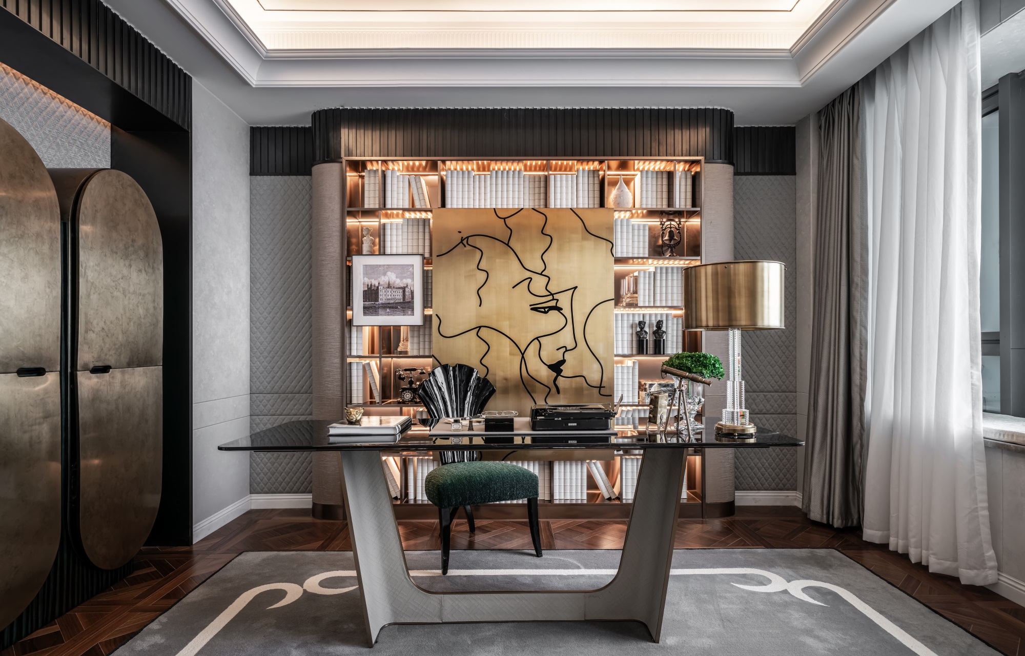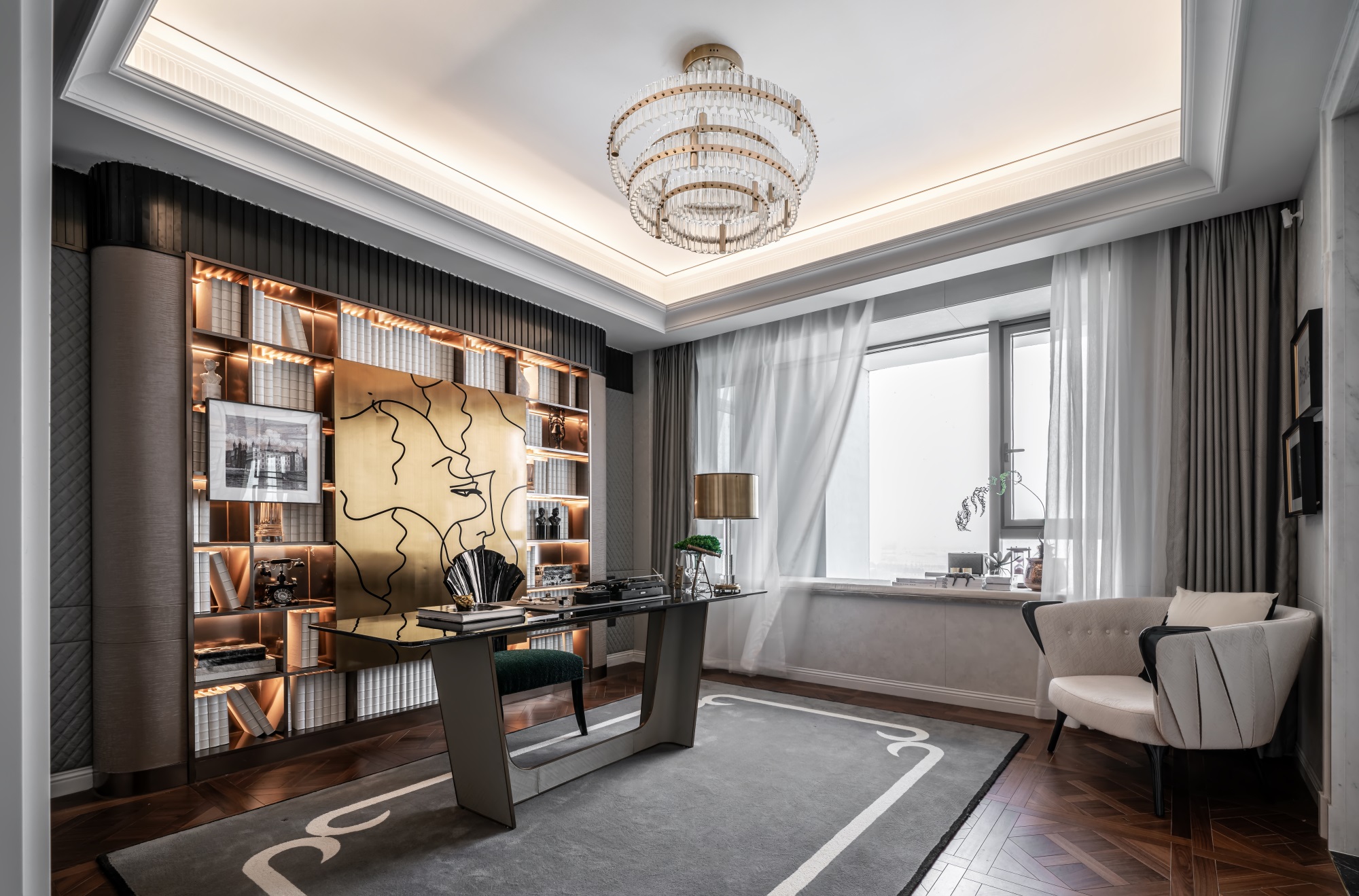 线条游弋生辉形成装饰画,将人的感知力无限延展,静坐于书房之中,不经意的抬眸间即可感受到艺术的韵味。
