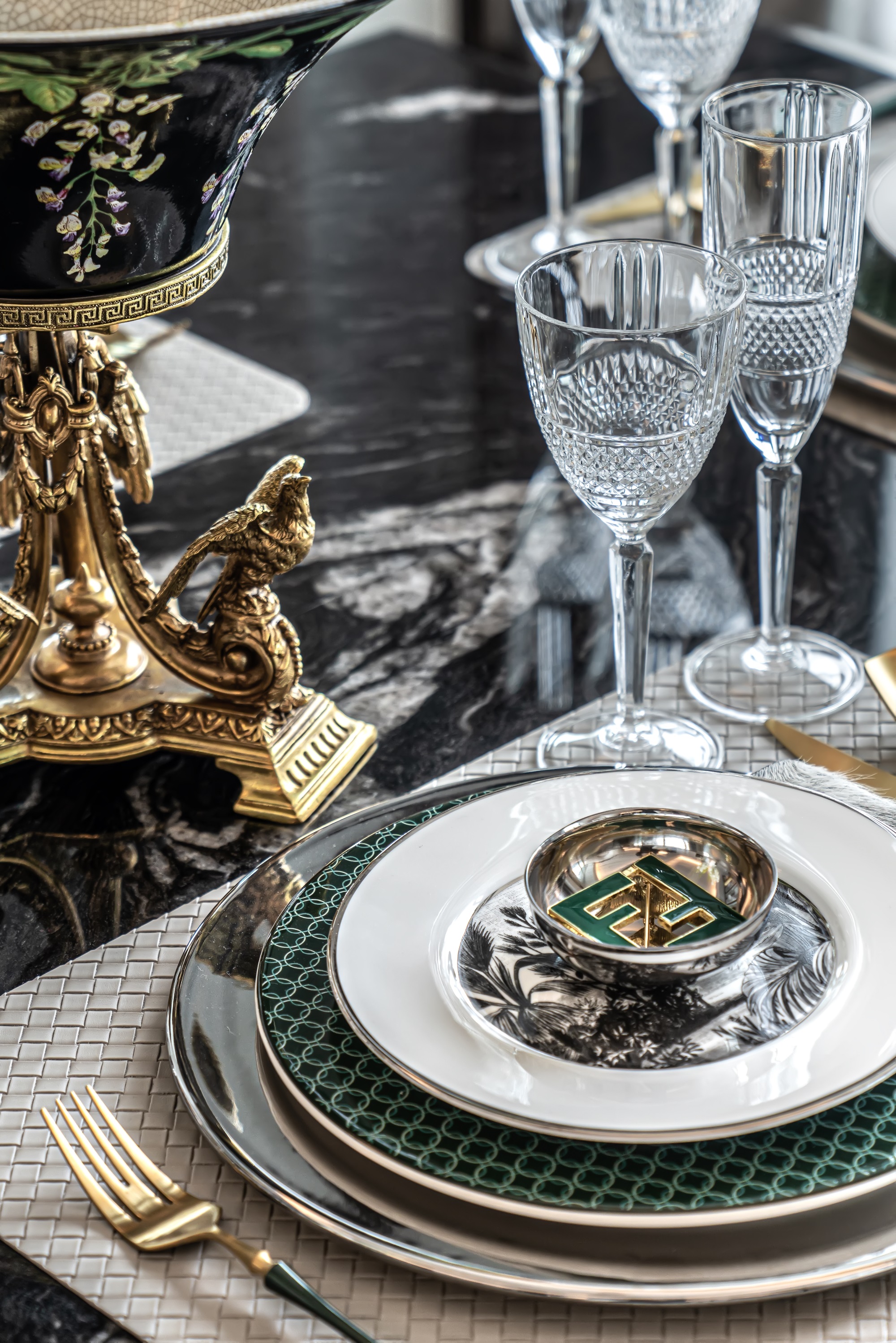 通透的水晶元素与经典复古色的摆件,独立存在又互为依托,让餐厅在富有礼序的陈列下,与优雅休闲的审美志趣相得益彰,光华流转下围合出宴会氛围般的仪式感场域。