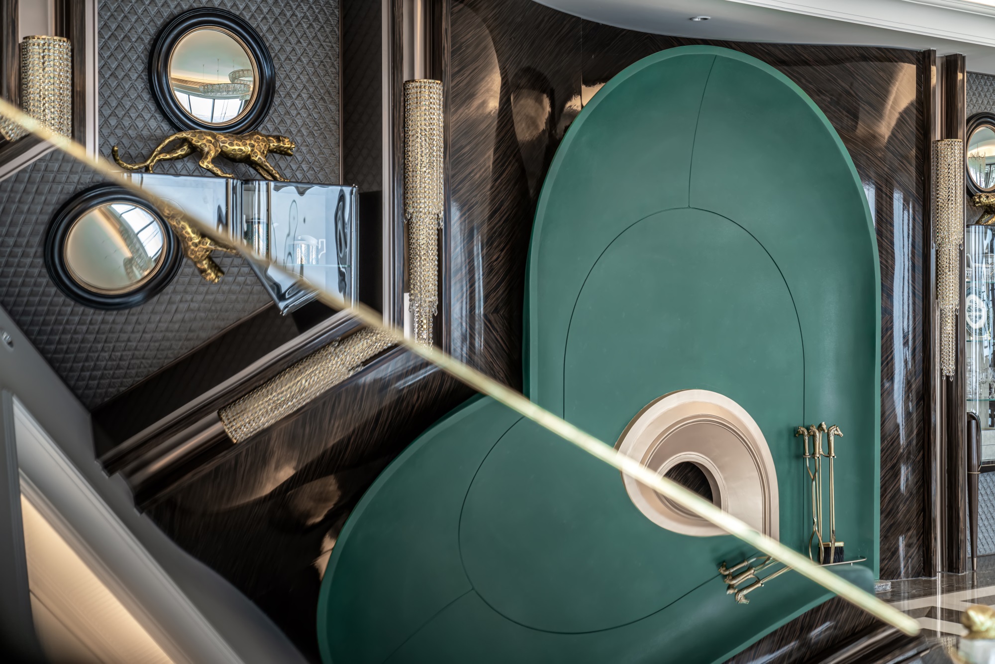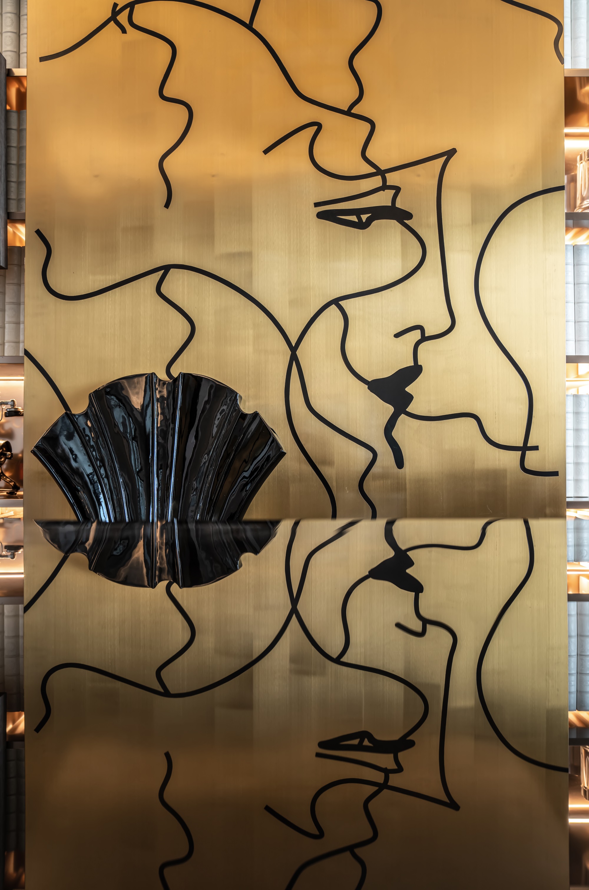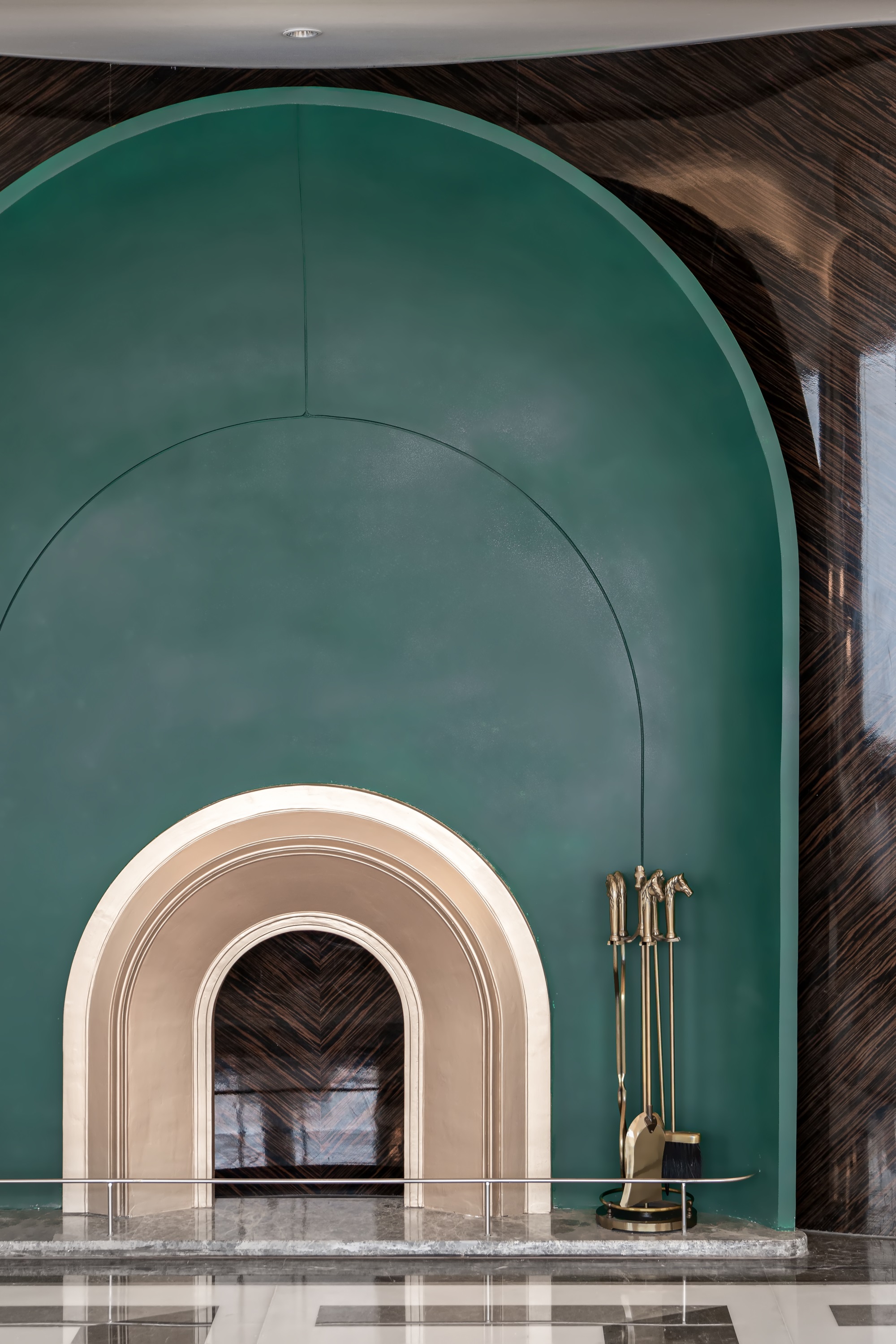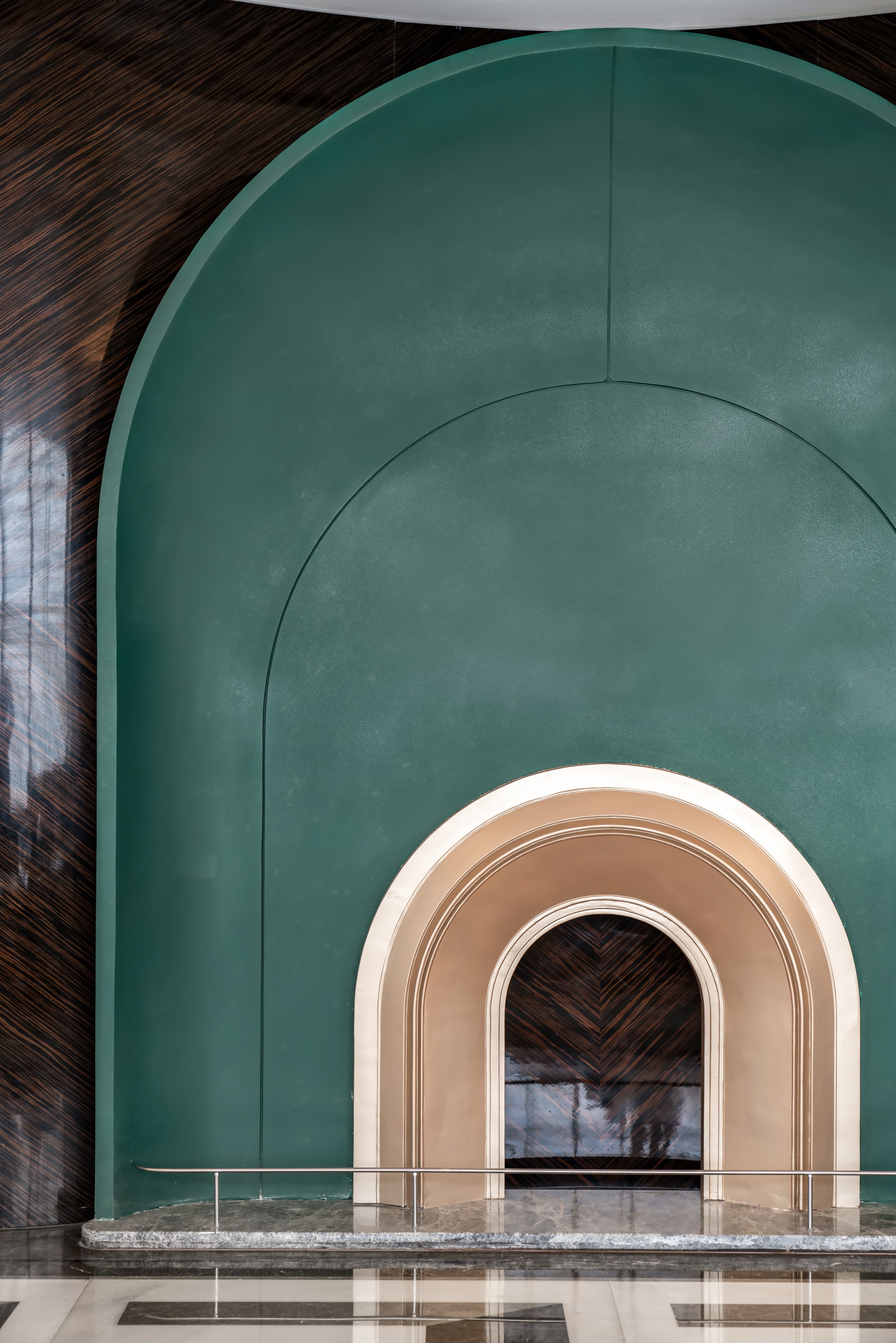 弧形线条层层递进,空间情绪随着金属光泽的跳动而富有变化。展示柜及各处的摆件,将装饰艺术落实到每一个细节,它们并不单以一种视觉符号的形式存在,同时也确切表达着锐度从城市的发展与变化中提取出的独特生活形式与设计思维。