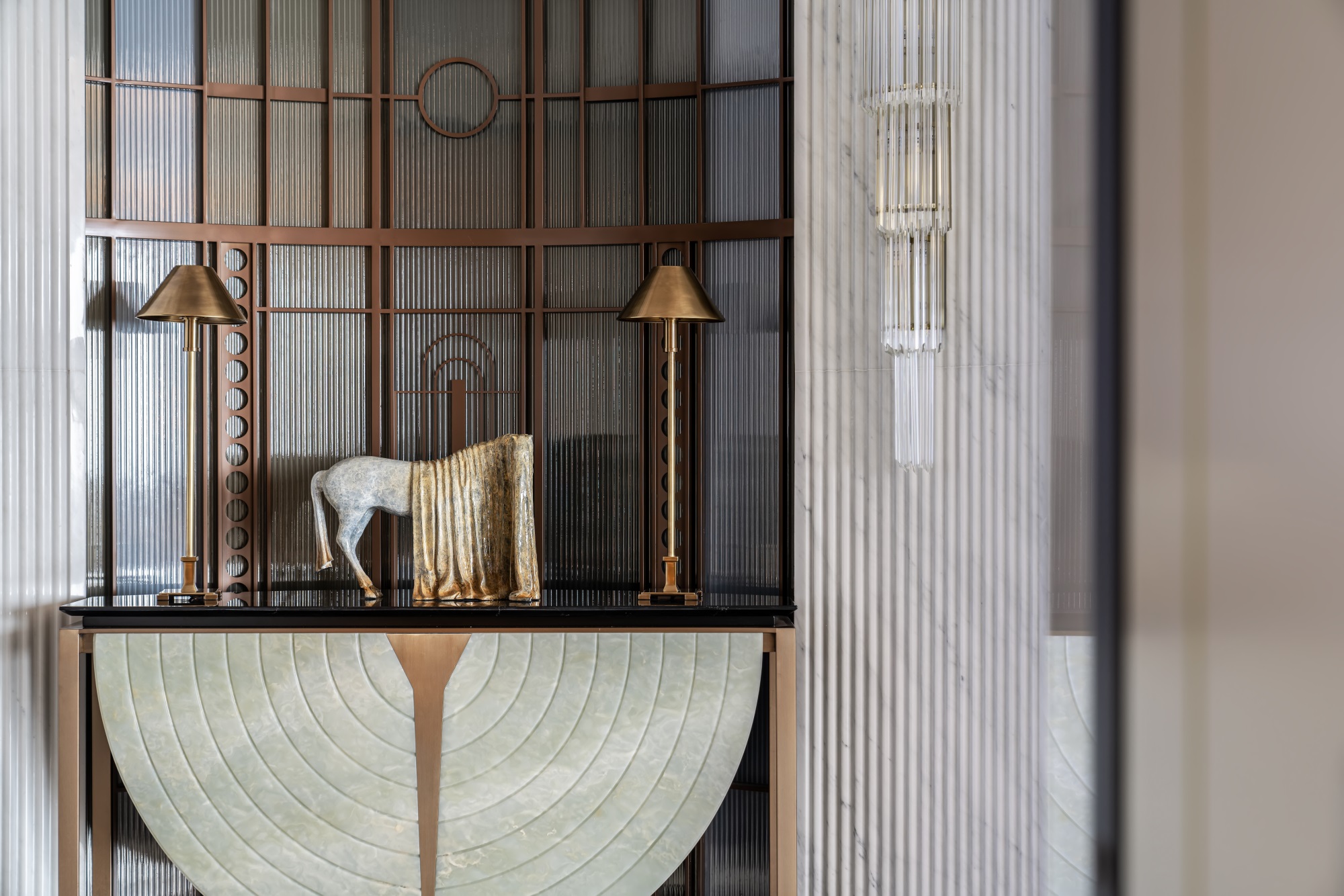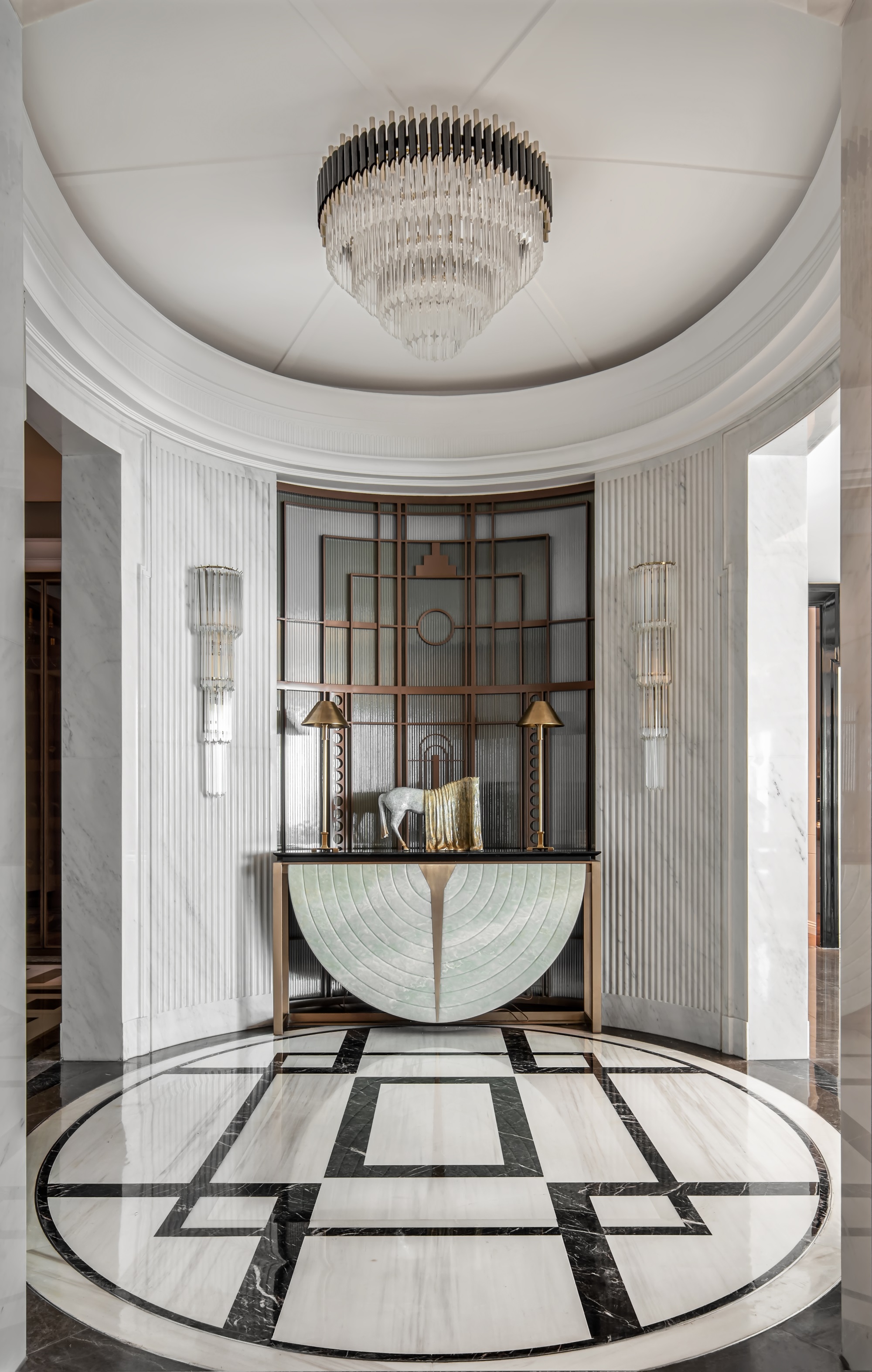 秩序,然而又打破一切的既定!空间以中轴对称昭示ArtDeco的风格特色,线条与色块碰撞,石材与金属的融合,将生活艺术贯穿于空间的情致中,演绎与当地文化、现代艺术的共鸣。
