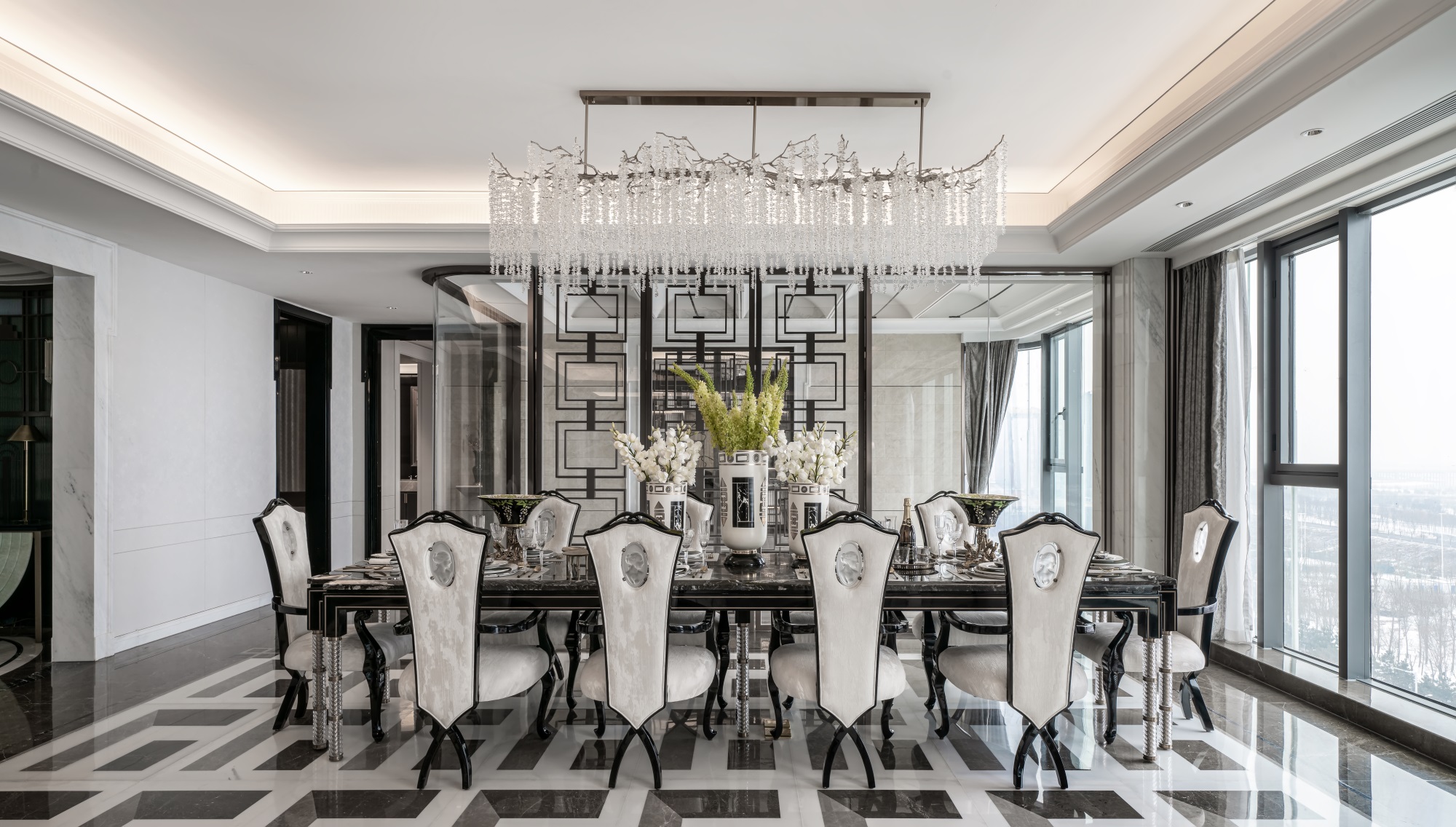 空间意境:设计通过ArtDeco装饰主义风格呼应石家庄不断超越的人文精神,在东方瑰丽的气质下,演绎品质生活方式,让居者推窗观景的同时,感受到多元摩登的“大都会”生活,仿佛跨越了时代曼妙而至。
