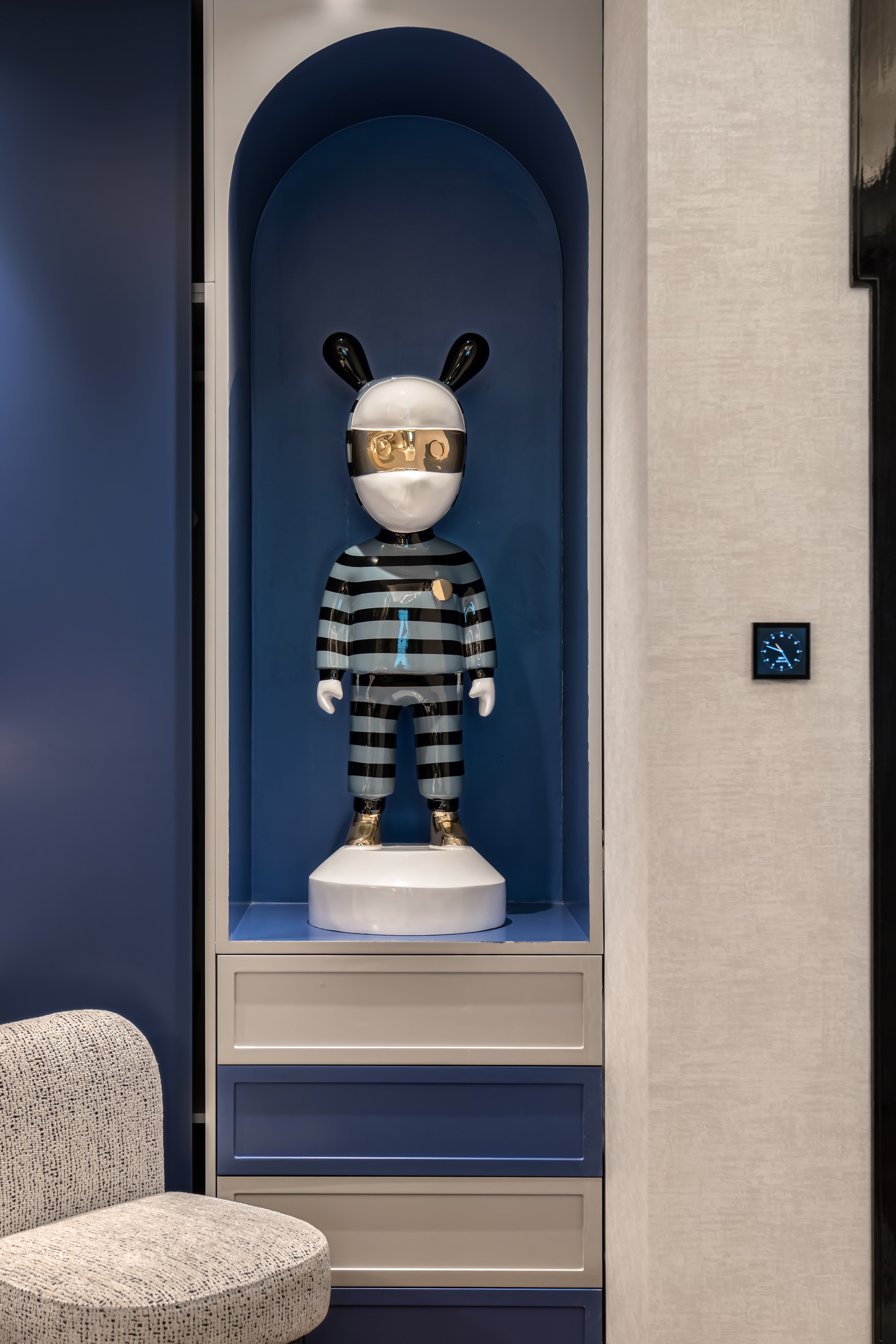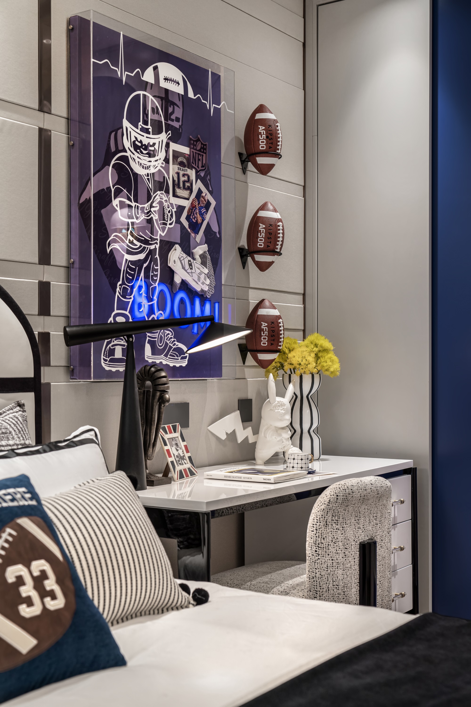 男孩房则选择电光蓝搭配具有运动感的摆件,充满童趣和腔调