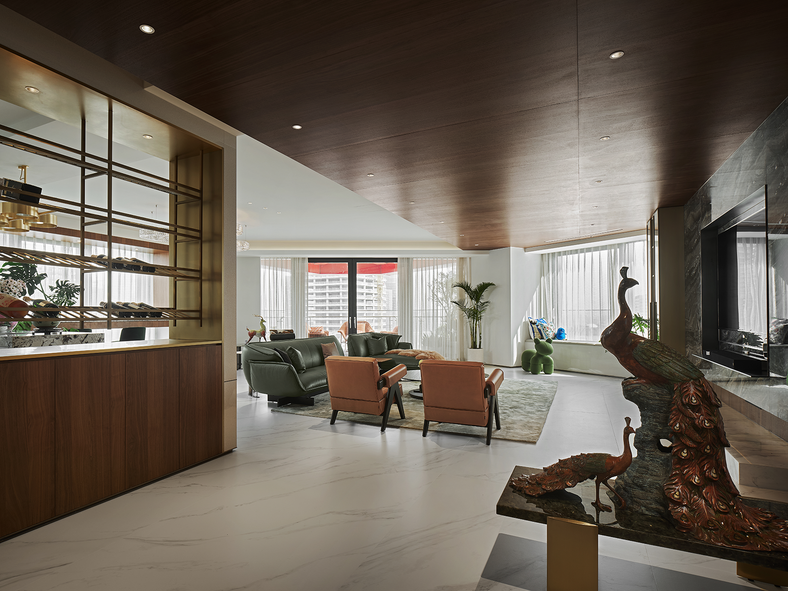 在设计案中给予有别一般的视觉观感,用灵活的动线增加生活的乐趣和层次感,并在软装摆设上采用中西合璧的手法达到mix & match的效果。