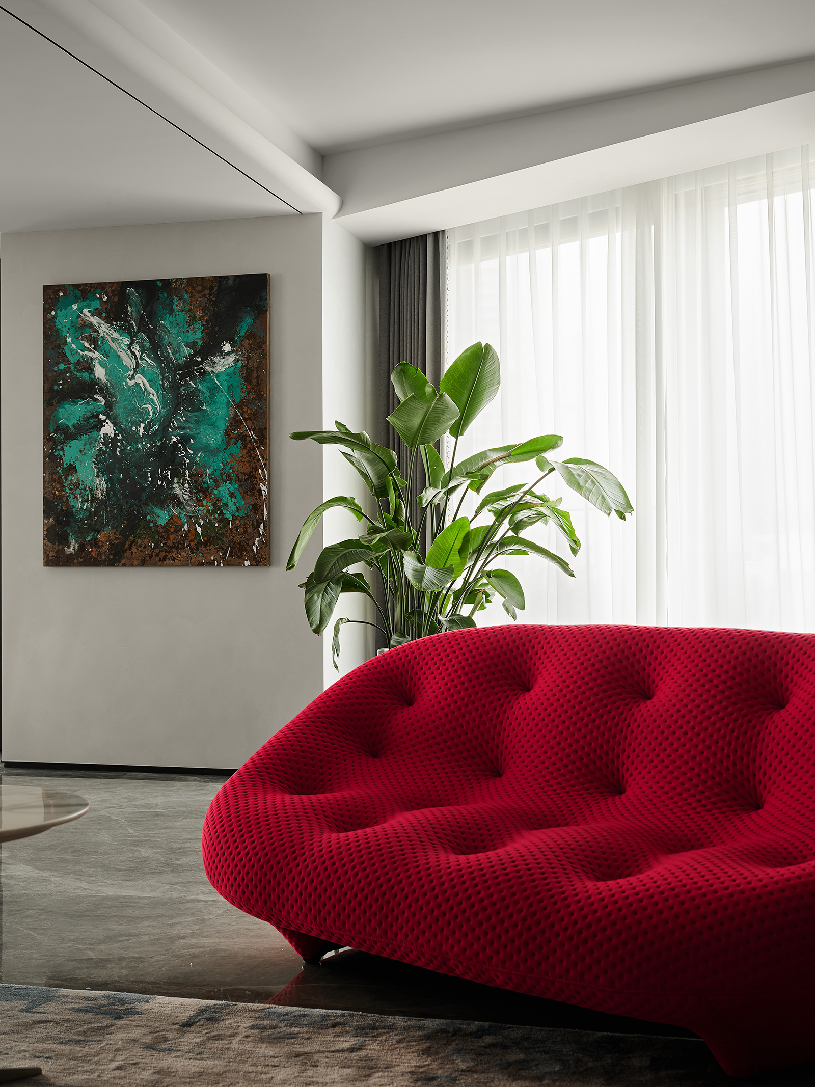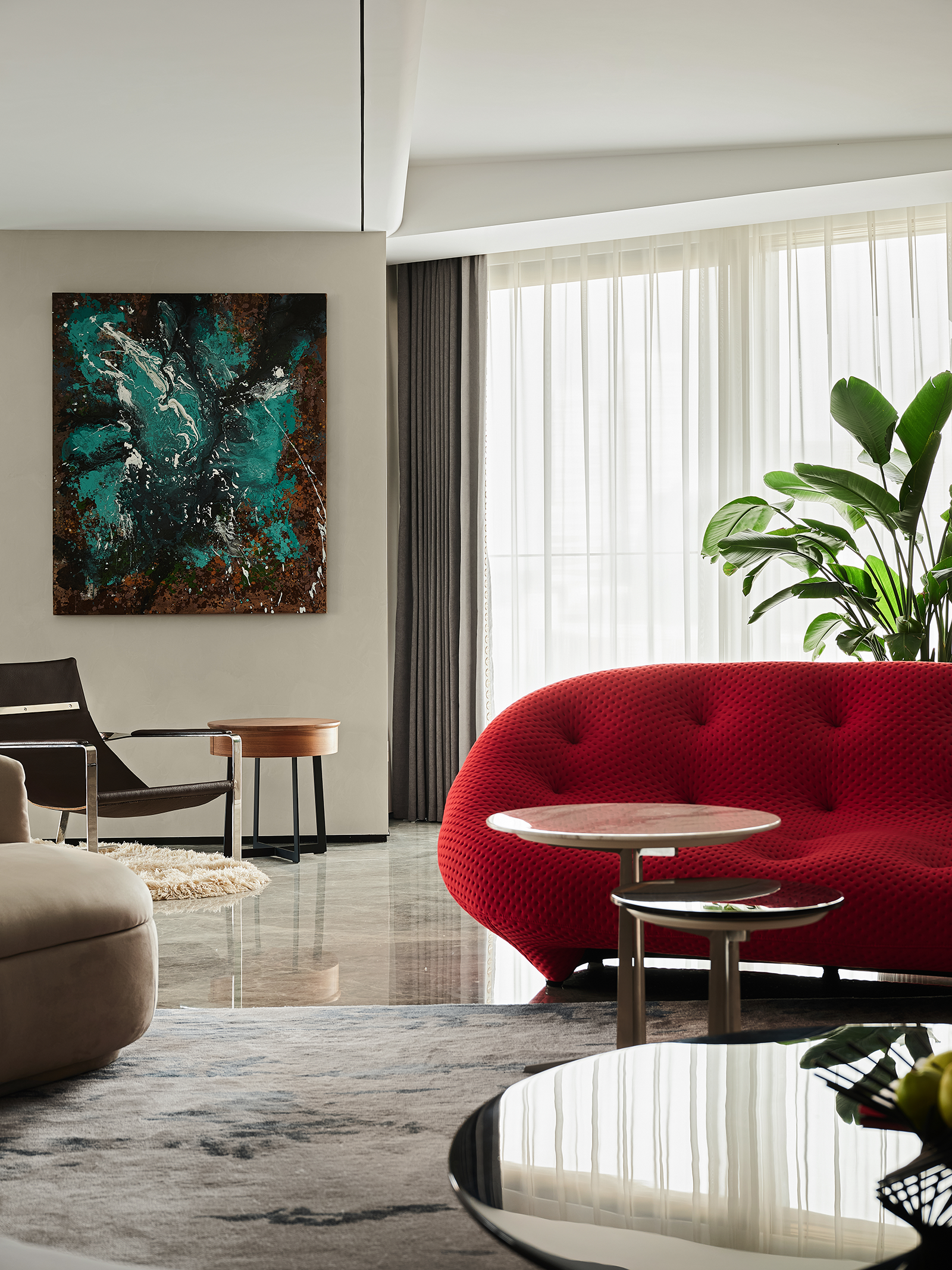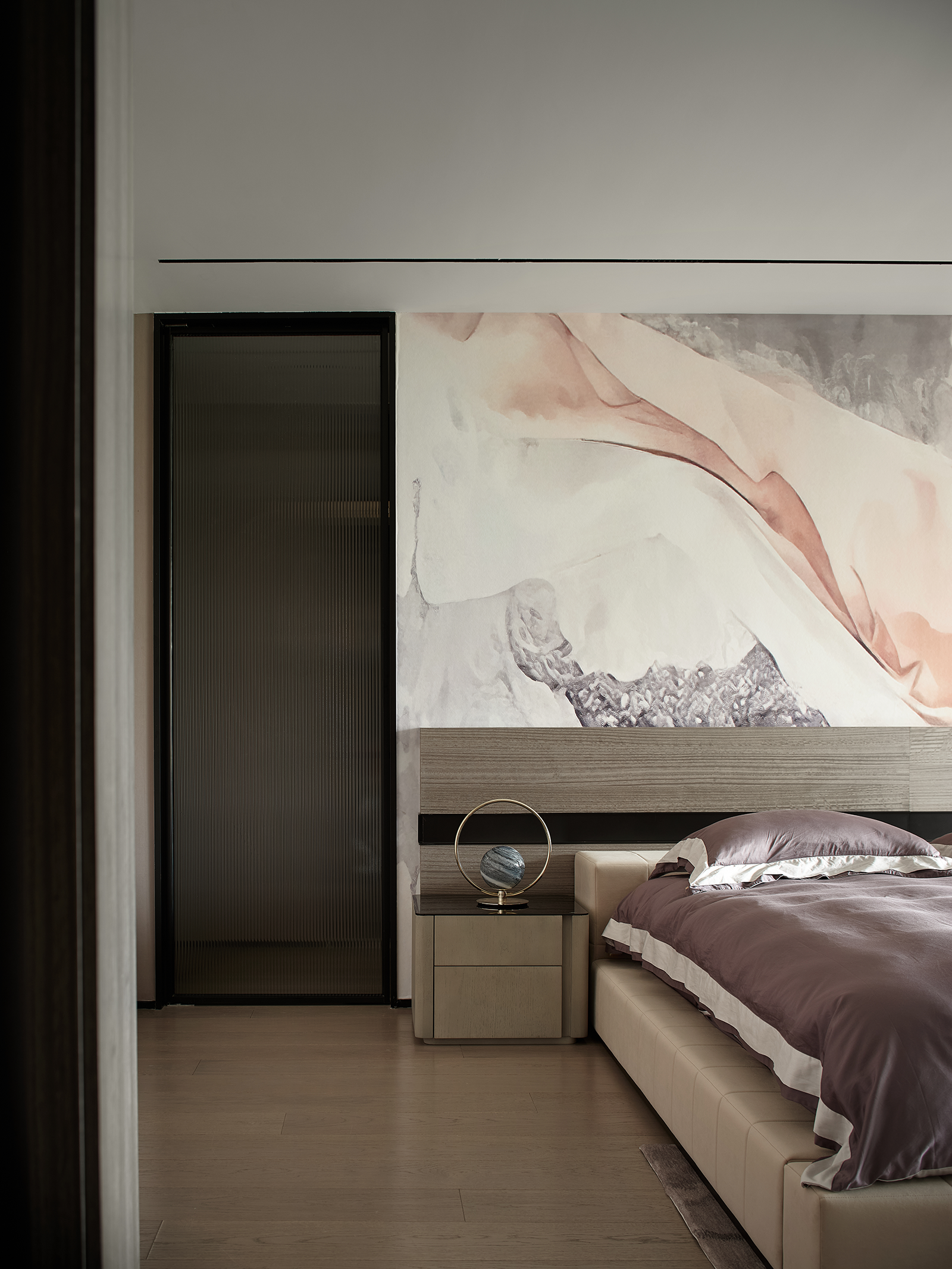 在注重家温暖与生活气息的同时,设计赋予空间奢华的灵魂,重构现代法式风情!空间以中性色调为主,硬朗与温润交织在一起,形成既冲突又丰富的场景。