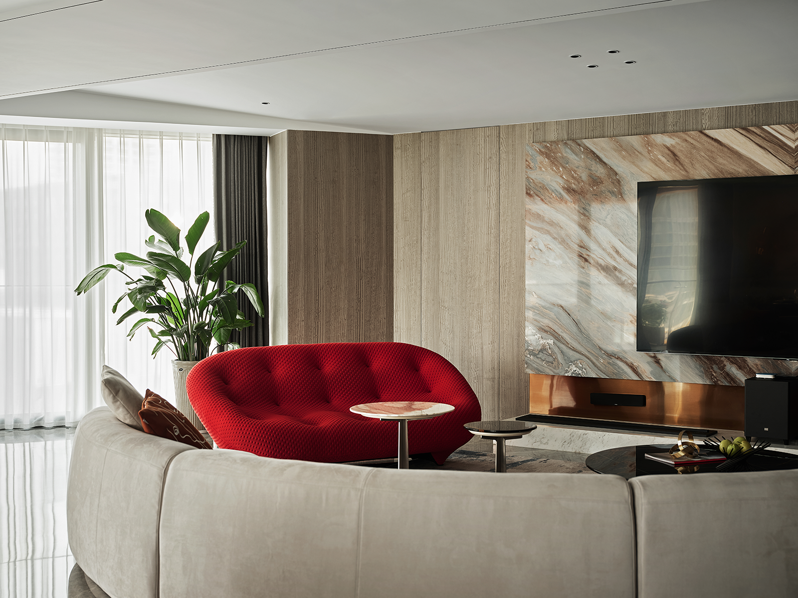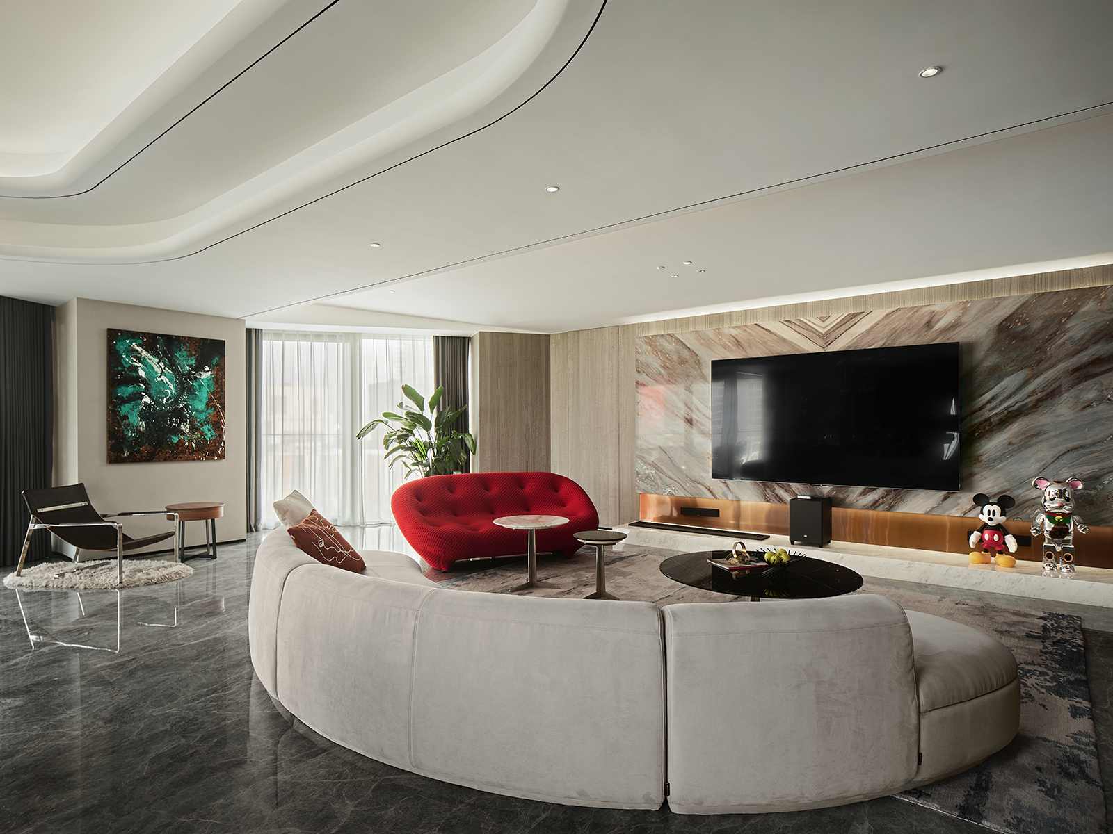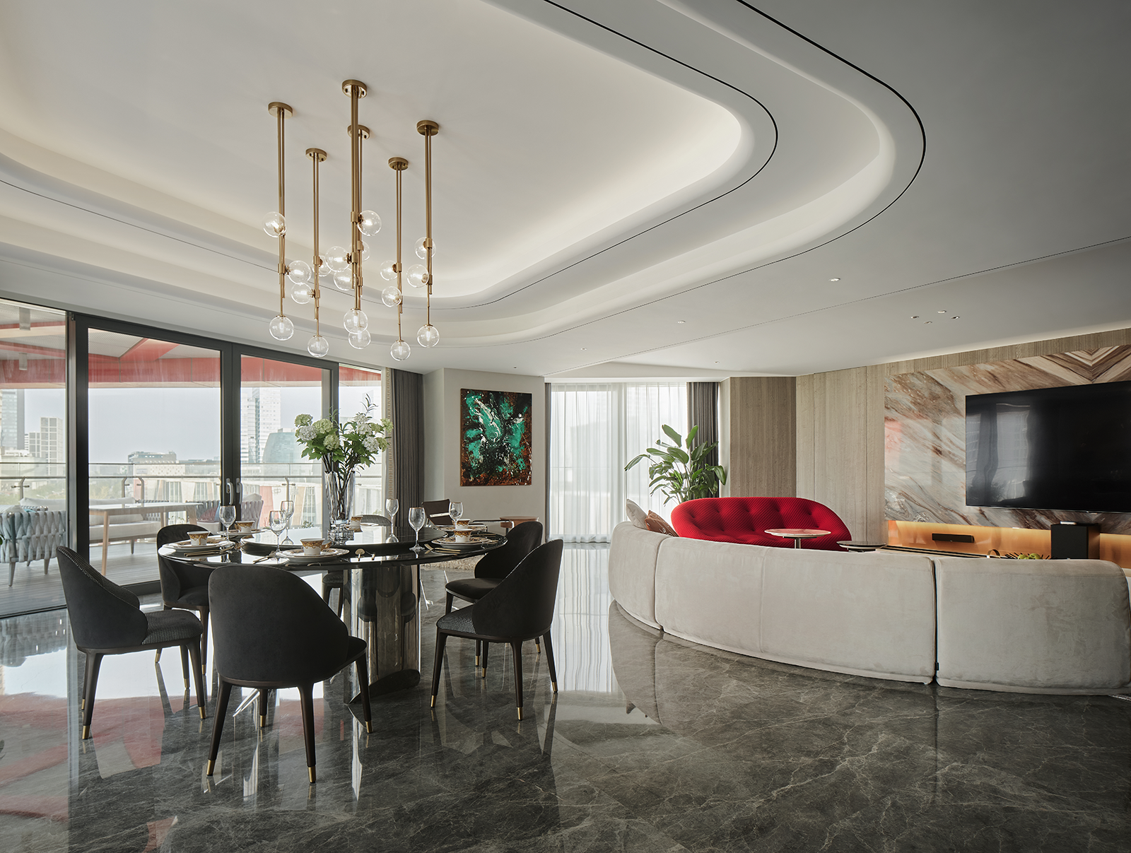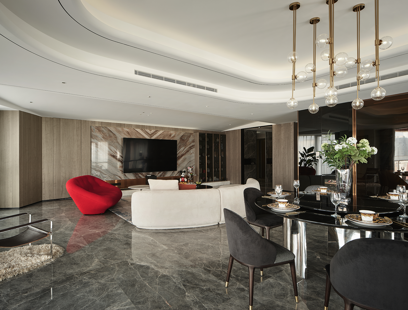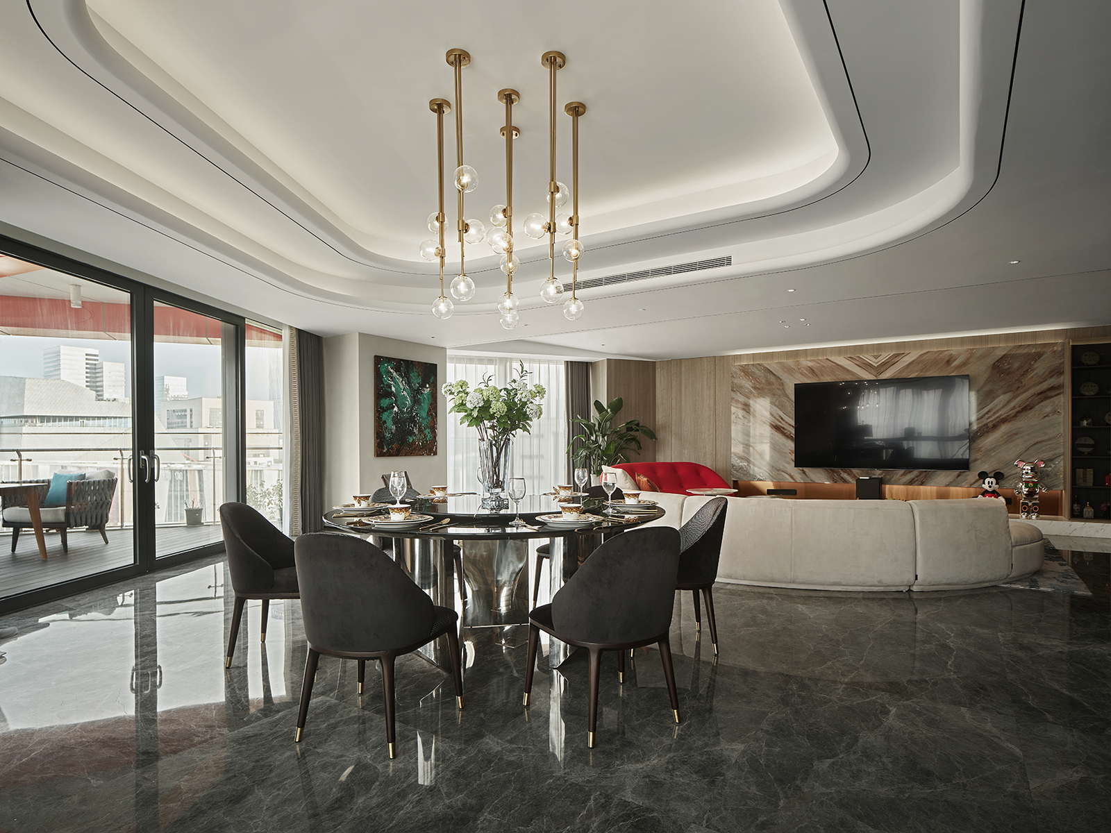 本案设计风格定位为现代轻奢,符合业主对于精致与优雅生活的推崇,结合业主的习惯,设计了一个舒适雅致的家居环境。
