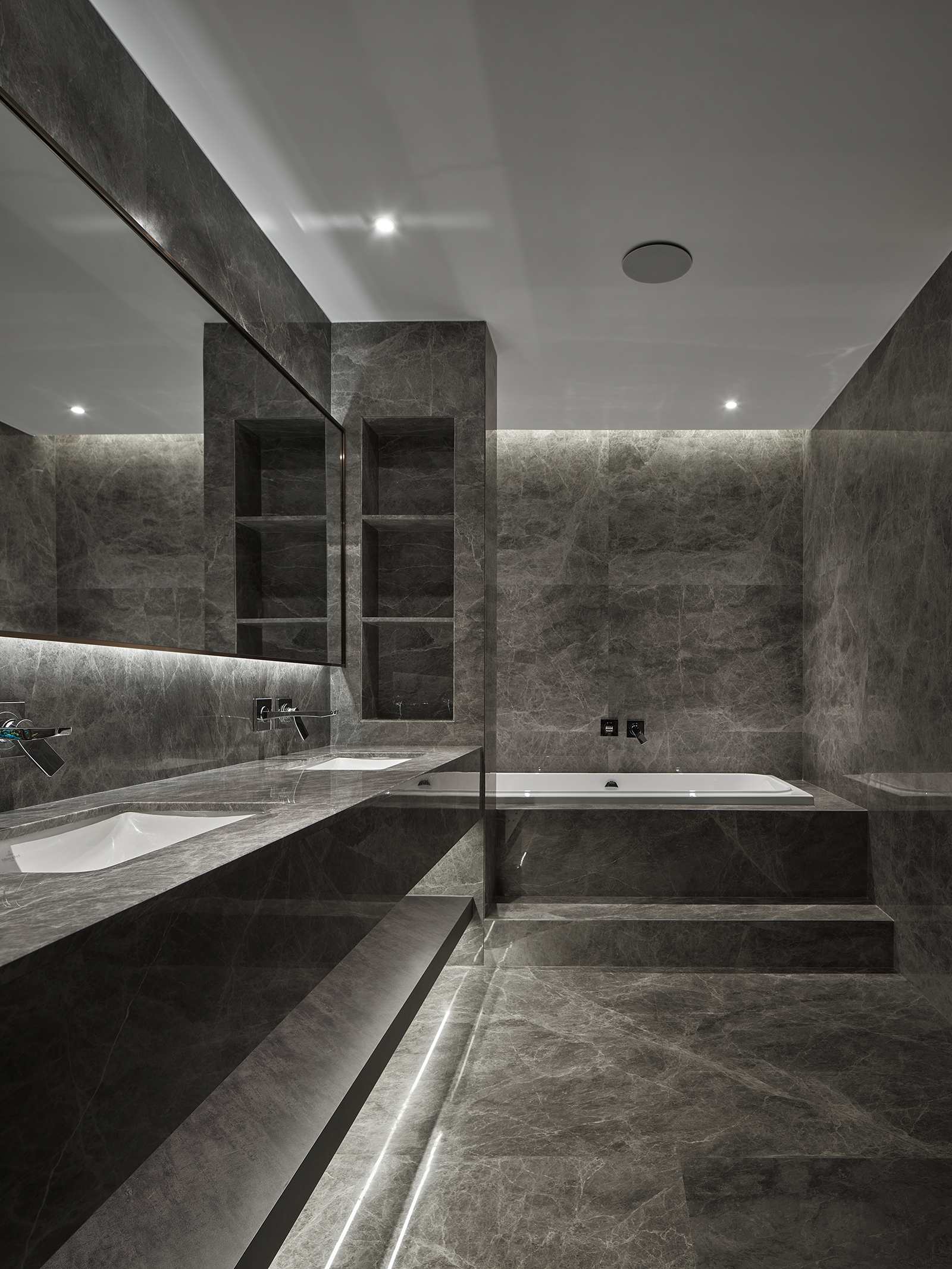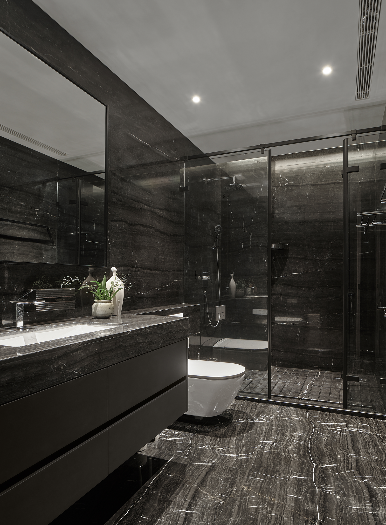 善用黑色衬托质感、延伸感、灯光、材质、形态过渡层面都经过精心拿捏,增添其细节之处的魅力。