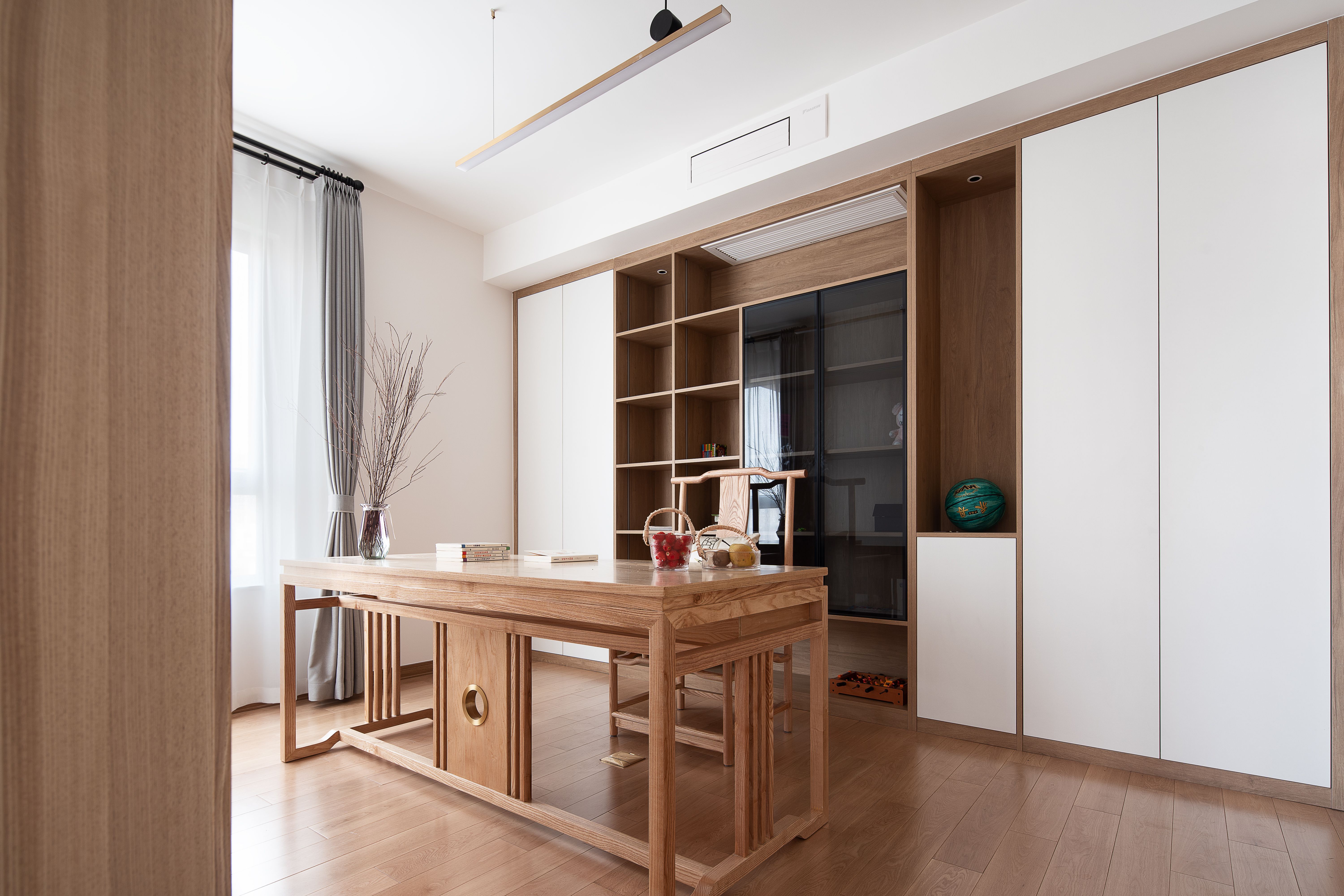 用户体验:清晰纯净的空间流线是书房的关键,充足饱满的思考空间,静静的整理所有思绪,不被打扰,禅意无穷,正是日式原木风的核心。