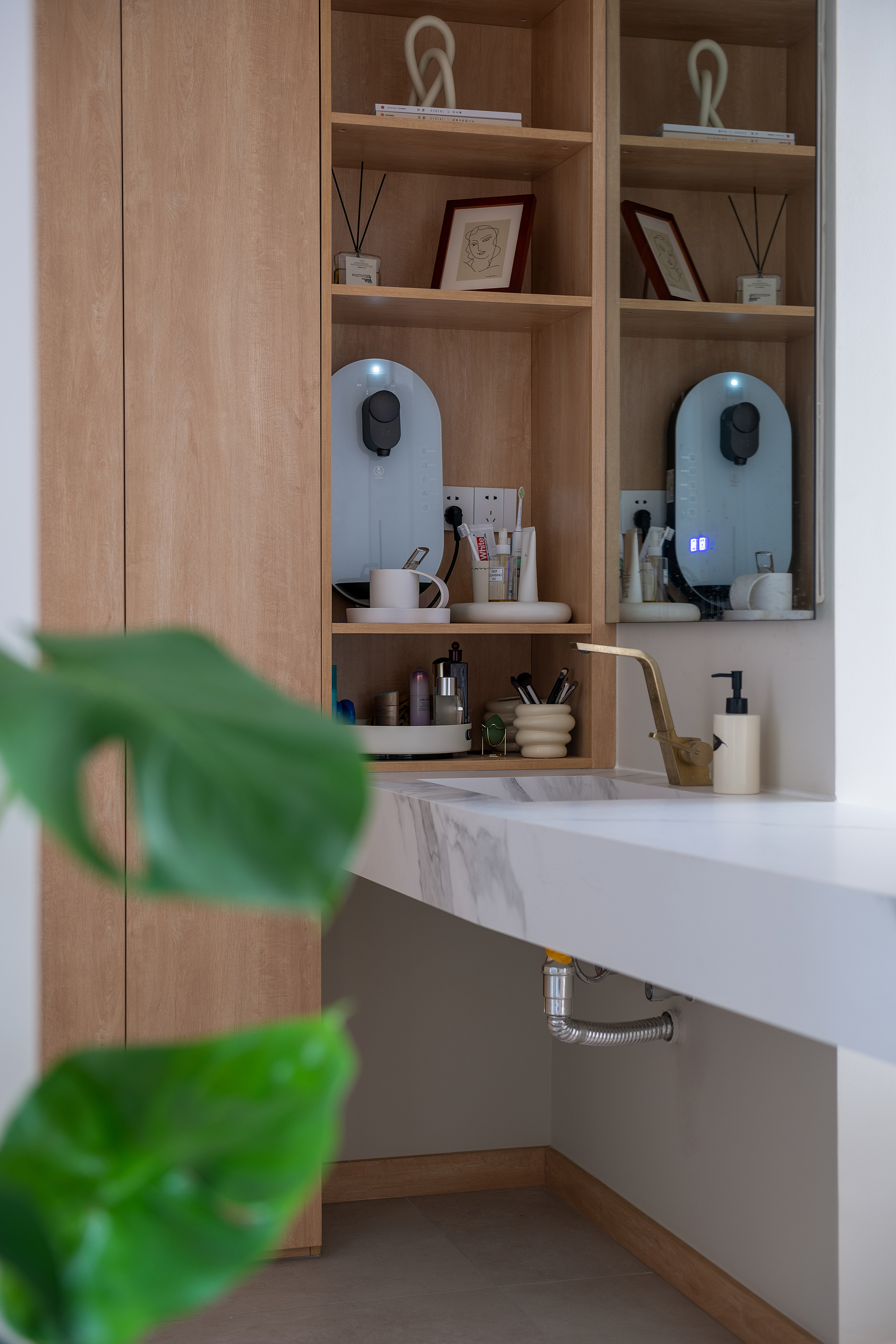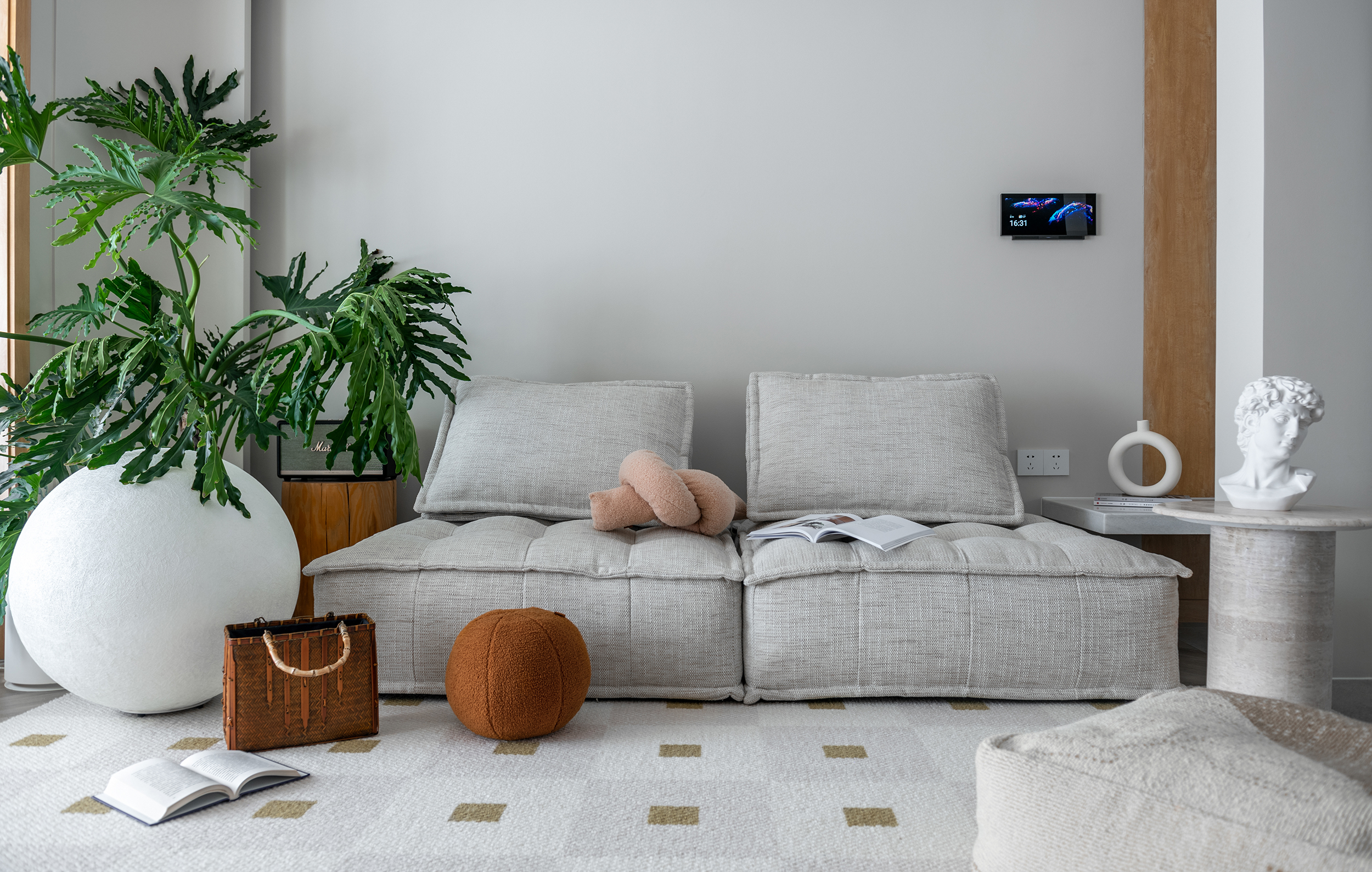 温润清透的色彩,辅以明媚的自然光,以点修面,在柔和配色与诗意停顿中,间奏出空间的质感。 -