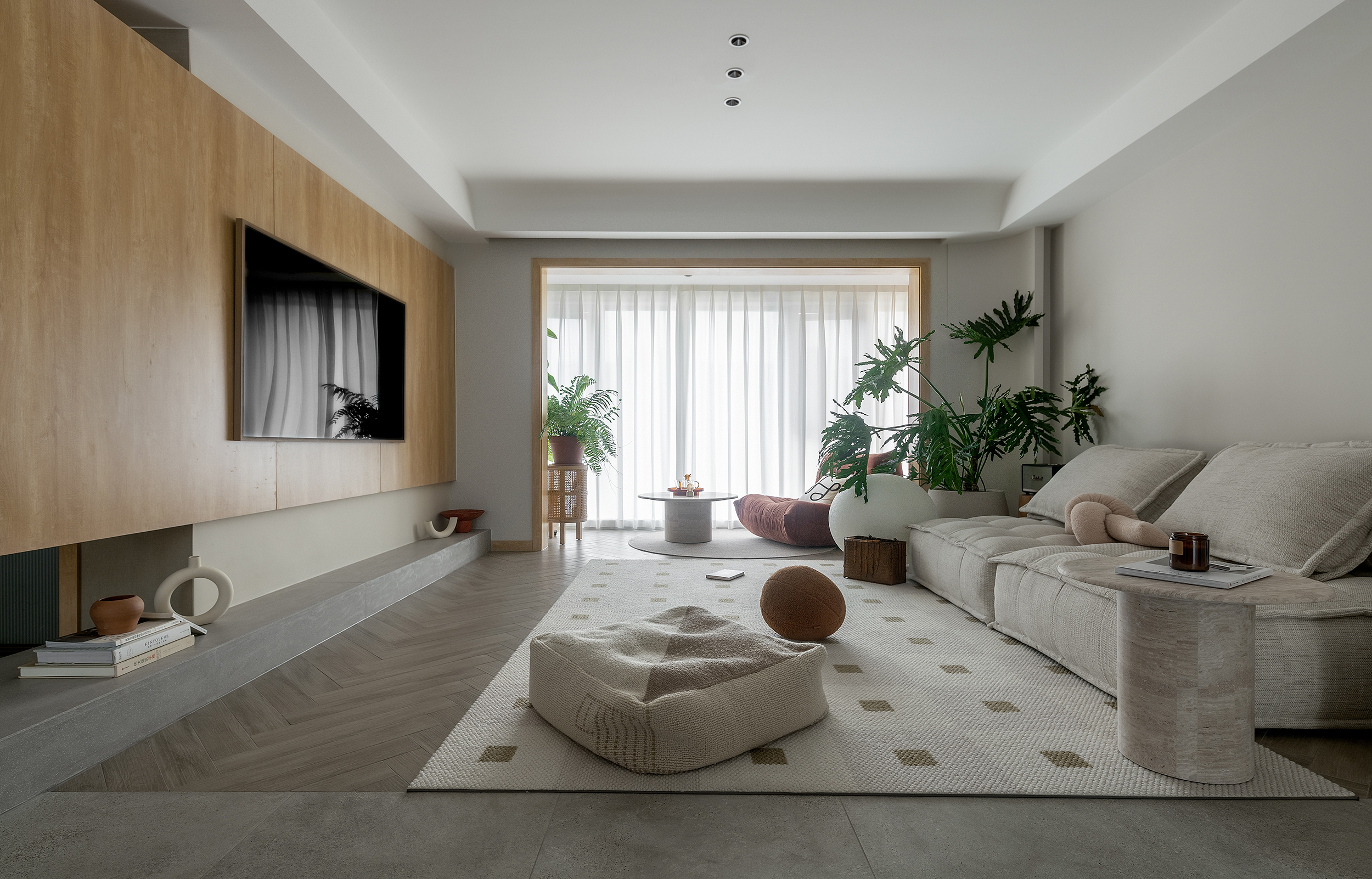 用简约暖色的材质润化空间的疏离感,用生动的功能联动,赋予居者所想表达的场域独白,一番恣心所意的流动,包裹着安定温暖的居住氛围。