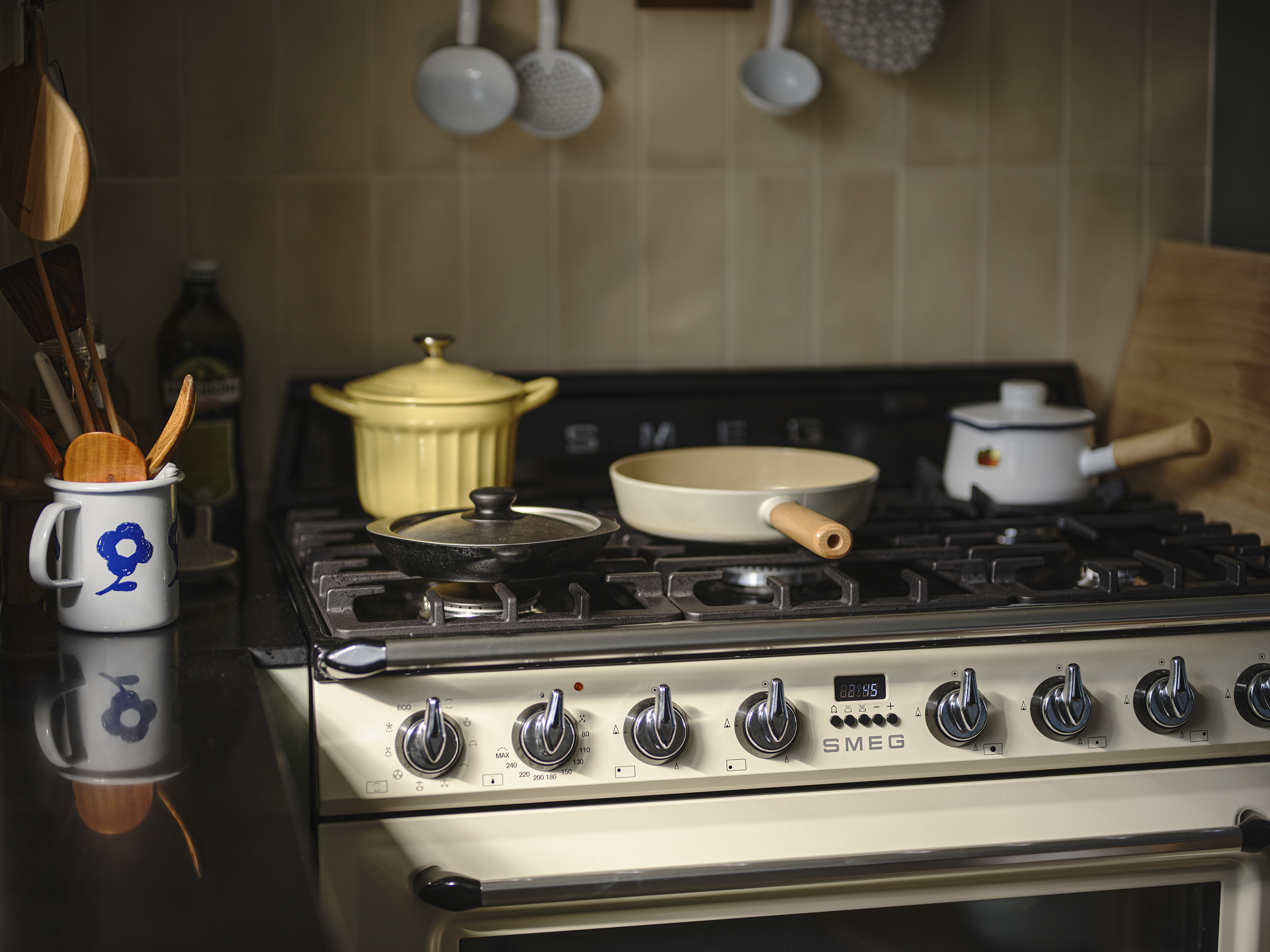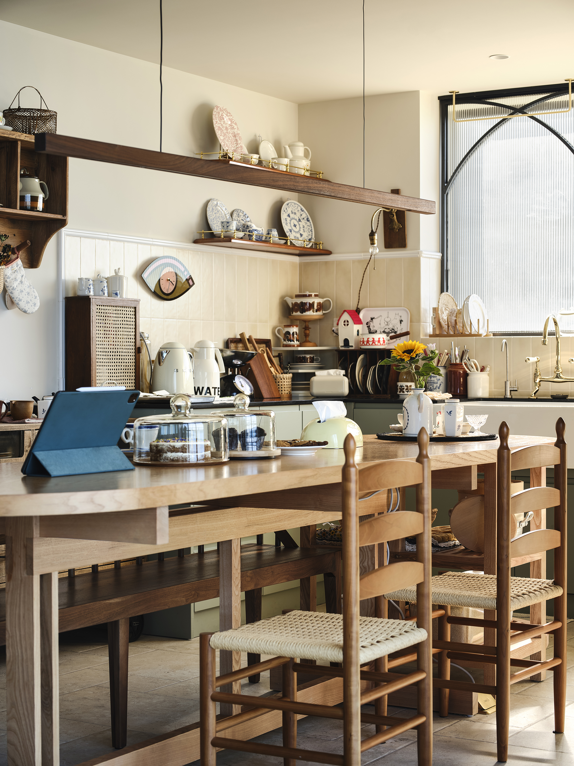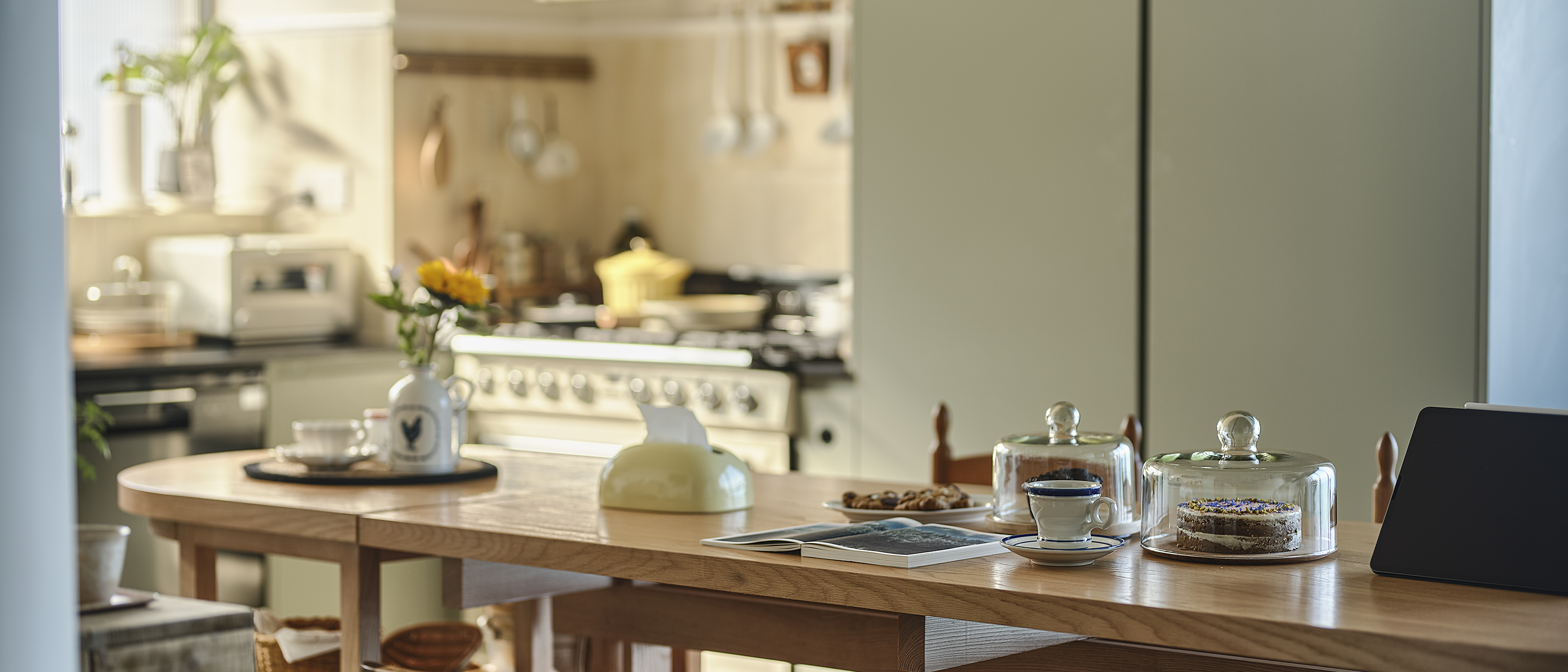 ③ 将厨房开放化,使之与会谈交流合并,界限上模糊,让空间开阔、自如。视线延伸的同时,增加人与人之间的互动;