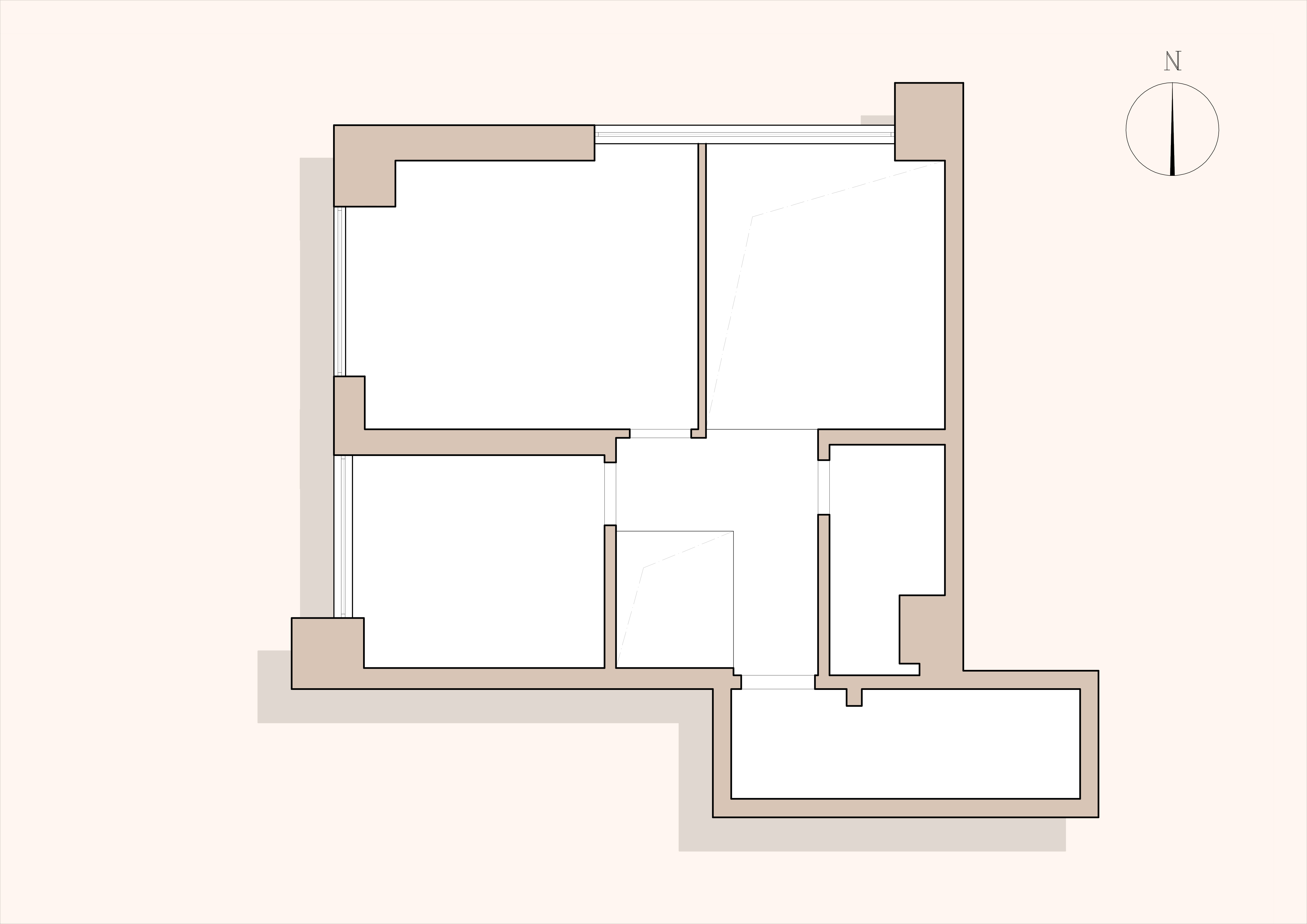 ⑧ 将卫生间干湿分离,通过半透隔断,让光线进入,但也一定程度上遮挡洗漱区,让空间干净灵活。 -