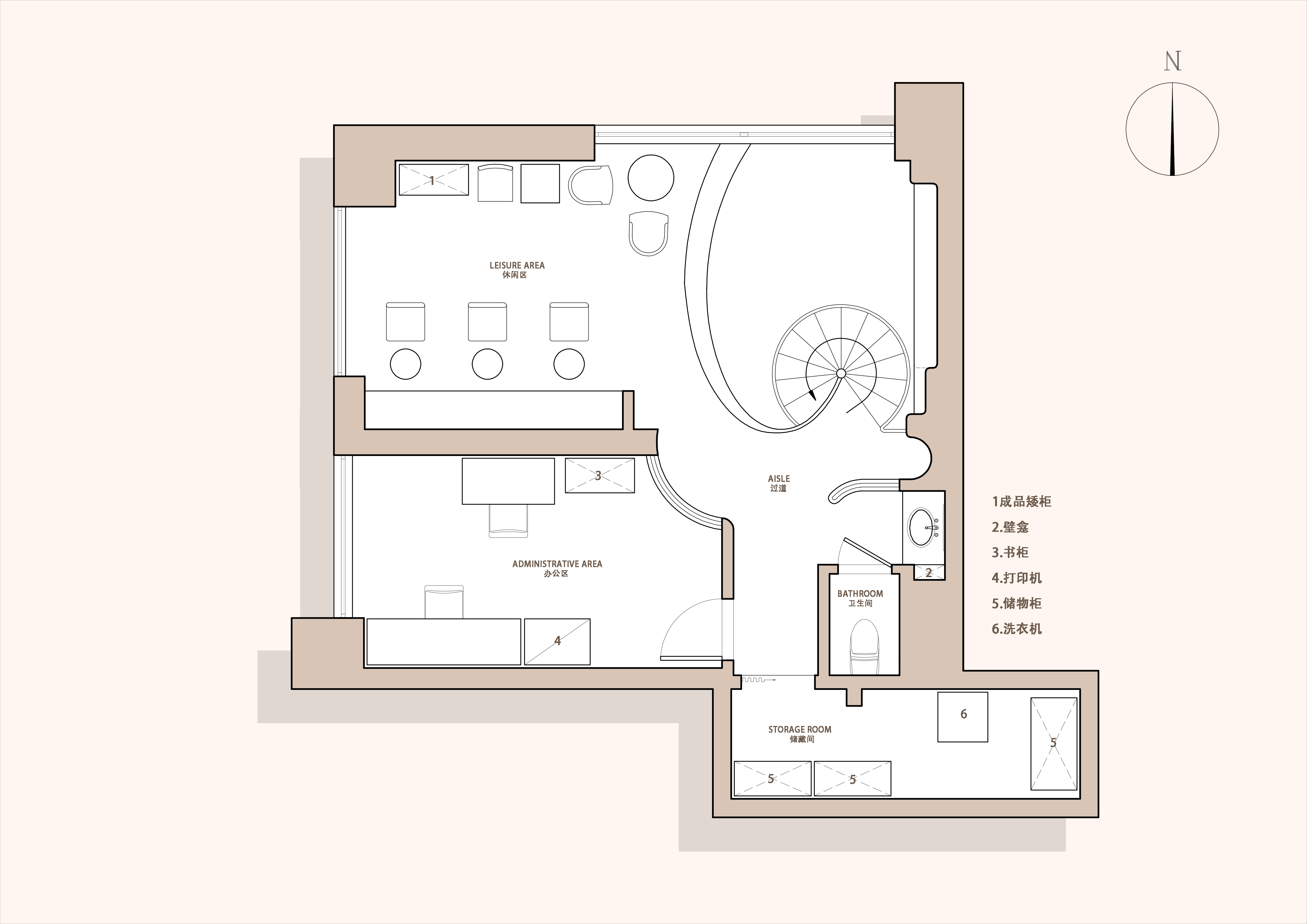 整个空间在满足功能使用的前提下,以偏日式ZAKKA元素为主导,其中结合现代、内建筑、流体等范畴,让空间氛围温馨、时尚,有记忆点、差异化。使用5米挑高区制作开架展示区,安放器皿和饰品突出主题,生活化。同时可布置灯光,使之成为营造氛围利器,让人过目不忘。布置单人位,在忙碌完一天工作后可在此坐观海面放空;