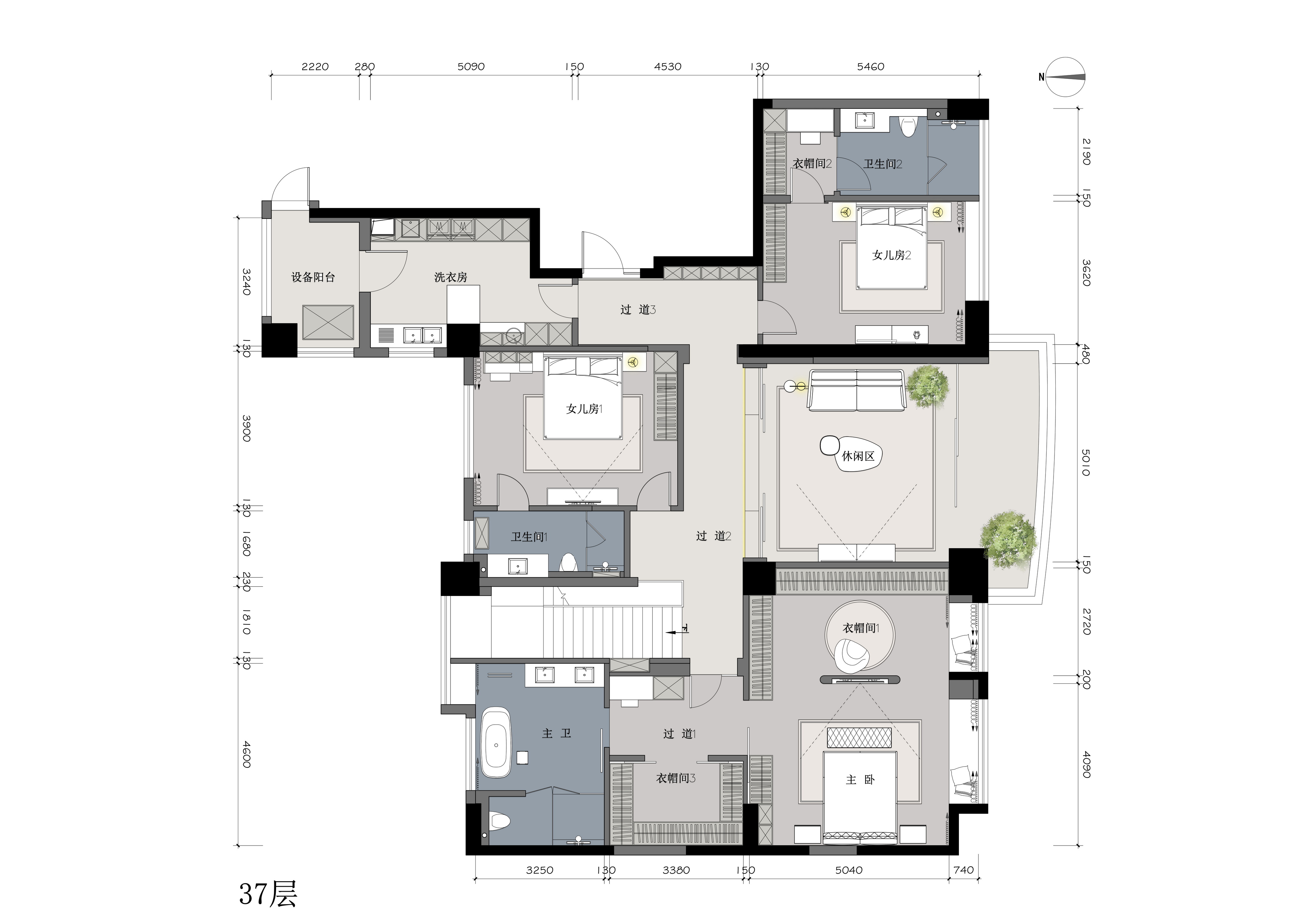 1.让居住在家的每一个人都有独立的空间(包括保姆房共有5个套房)