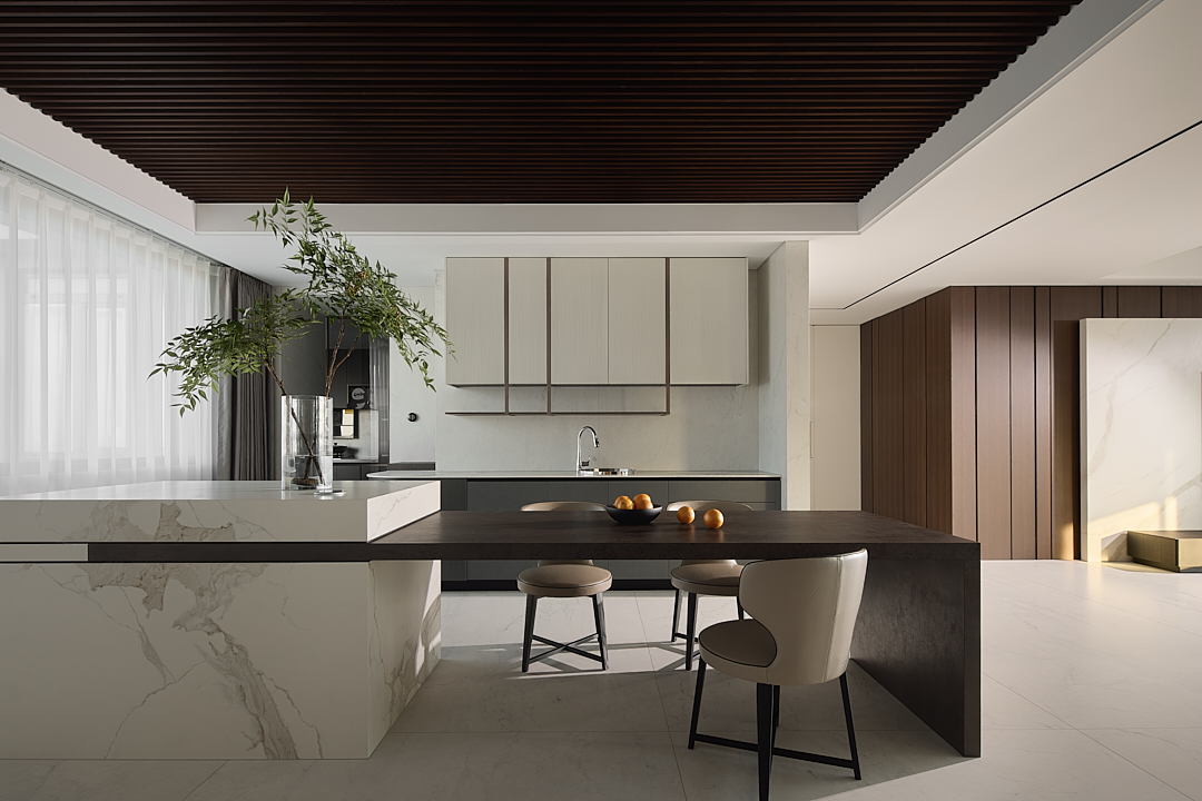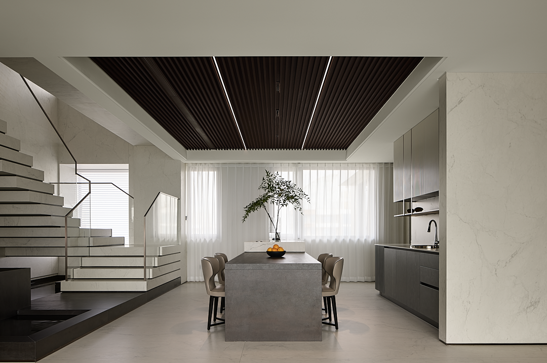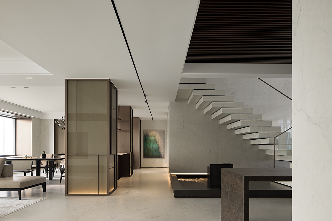 既要解决功能动线,更要体现顶复大平层的气势和气质,还要360°无死角让其成为整个空间的主角。