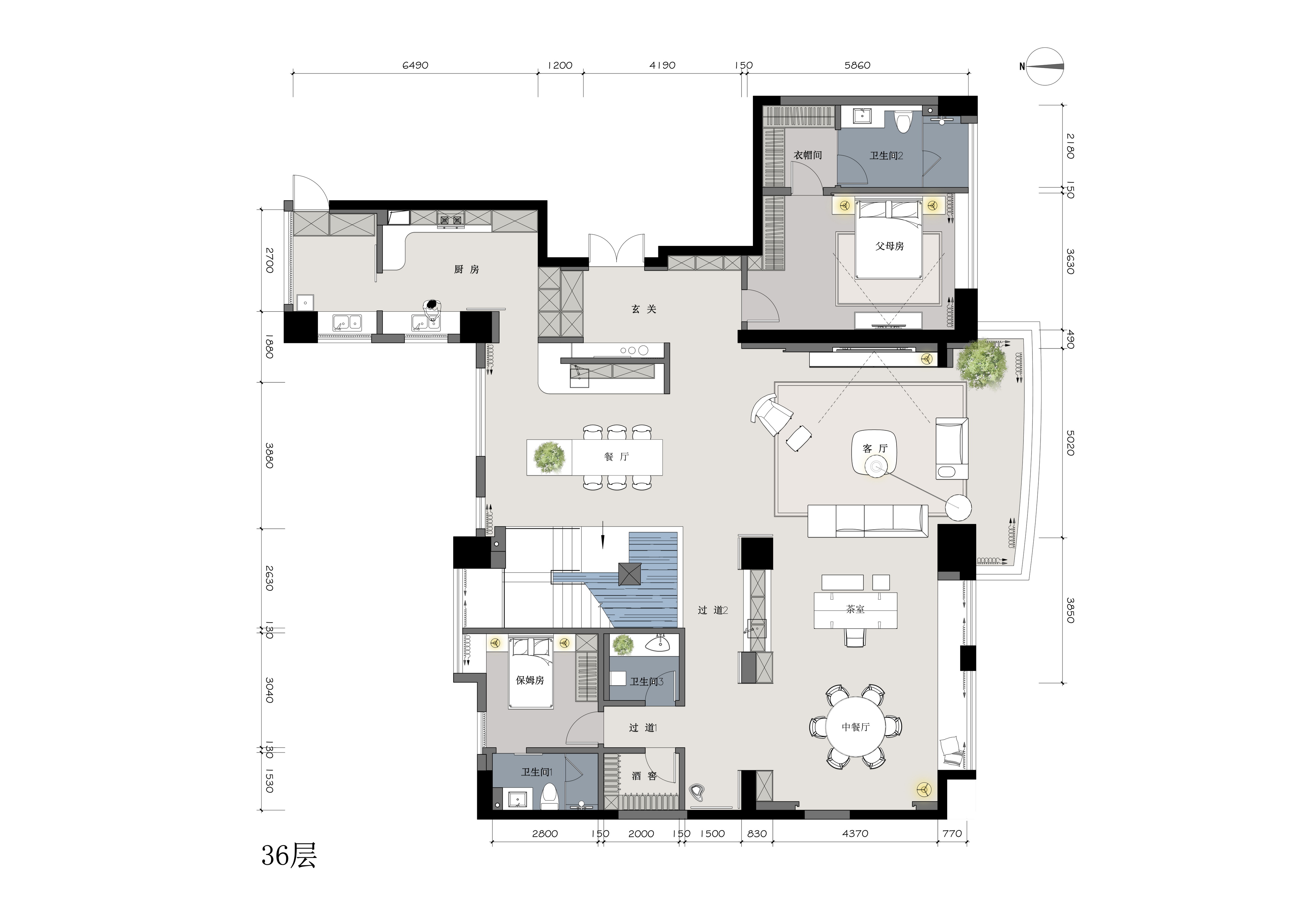 2.能够彰显主人的身份和审美,要体现大平层的大气、开阔,窗外一览无余的城市景观,有一种会当凌绝顶,一览众山小的气魄。