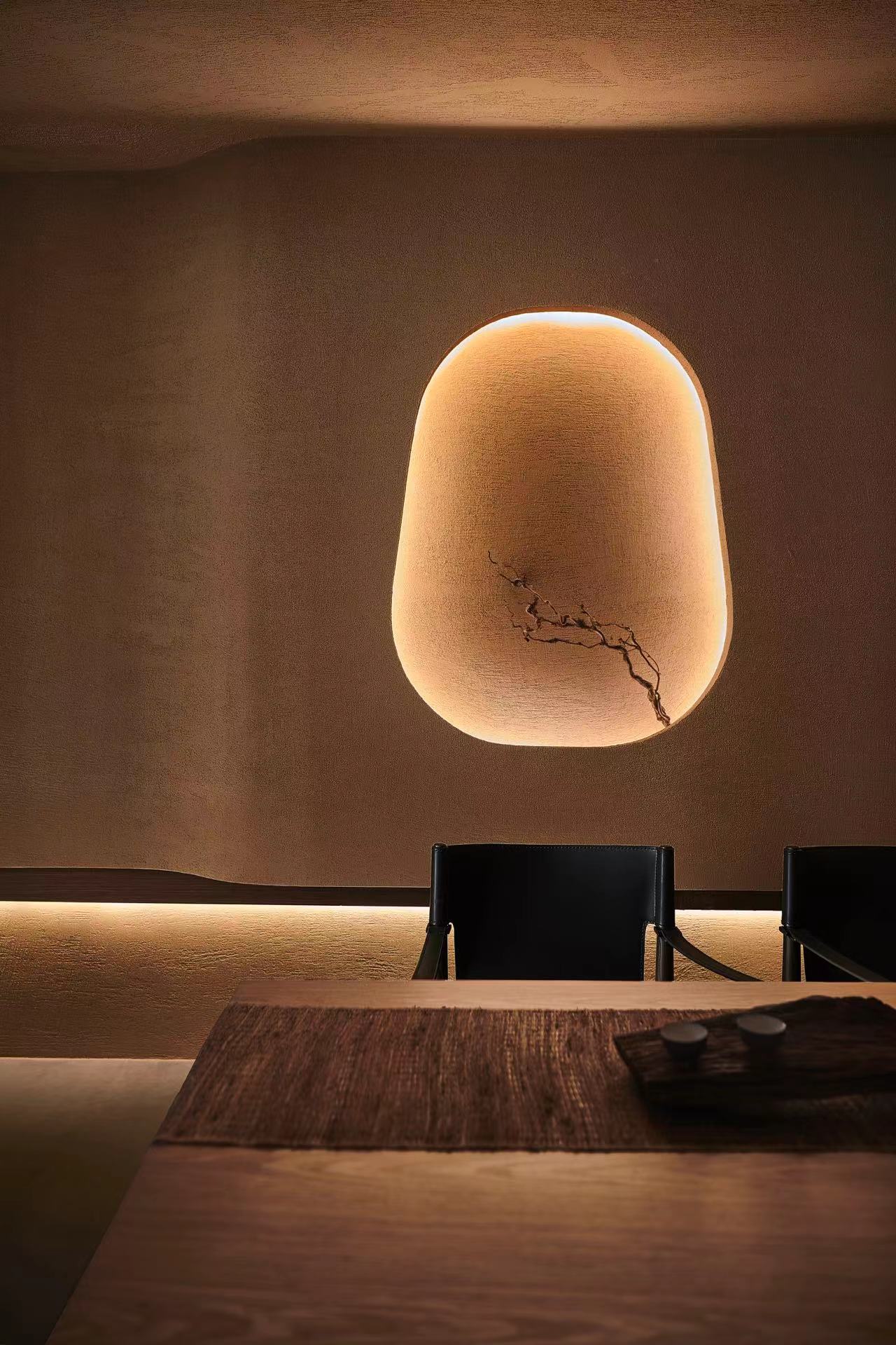 项目定位:茶会所空间除了接待当地有文化涵养人士来此相聚引茶卖茶,通过中国传统品茗文化过程中唤醒人对自然的尊重敬畏在此品茗交流 逃离城市喧闹的一处独有的栖息之地,让人心显归隐在最放松时态下感受自然的能量空间的情绪。独一无二性来源于进门处的水滴石穿造景意味深远的表述了山石自然与空间的关系,裂缝中的水滴石穿更能让人引起对自然的渴望与重视自然的维护与来自自然的呐喊。