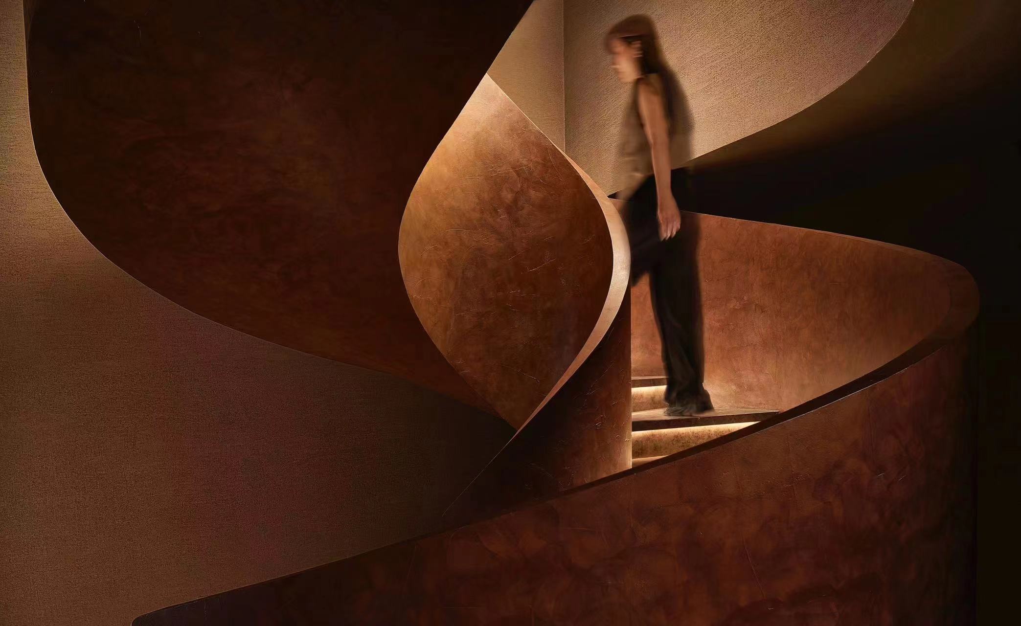 空间意境:“世之笃论:谓山水有可行者,有可望者,有可游者,有可居者”入户门的石缝处水滴石穿的与圆弧旋转楼之间行云流水似的呼应,动线上把形态与视觉美感注意力完美结合在一起通过美好的曲线视觉捕捉用户,进门即巅峰通过数据在空间的精神体现建模后对进门玄关的替换成旋转楼梯的吸睛振震力而确认生成。