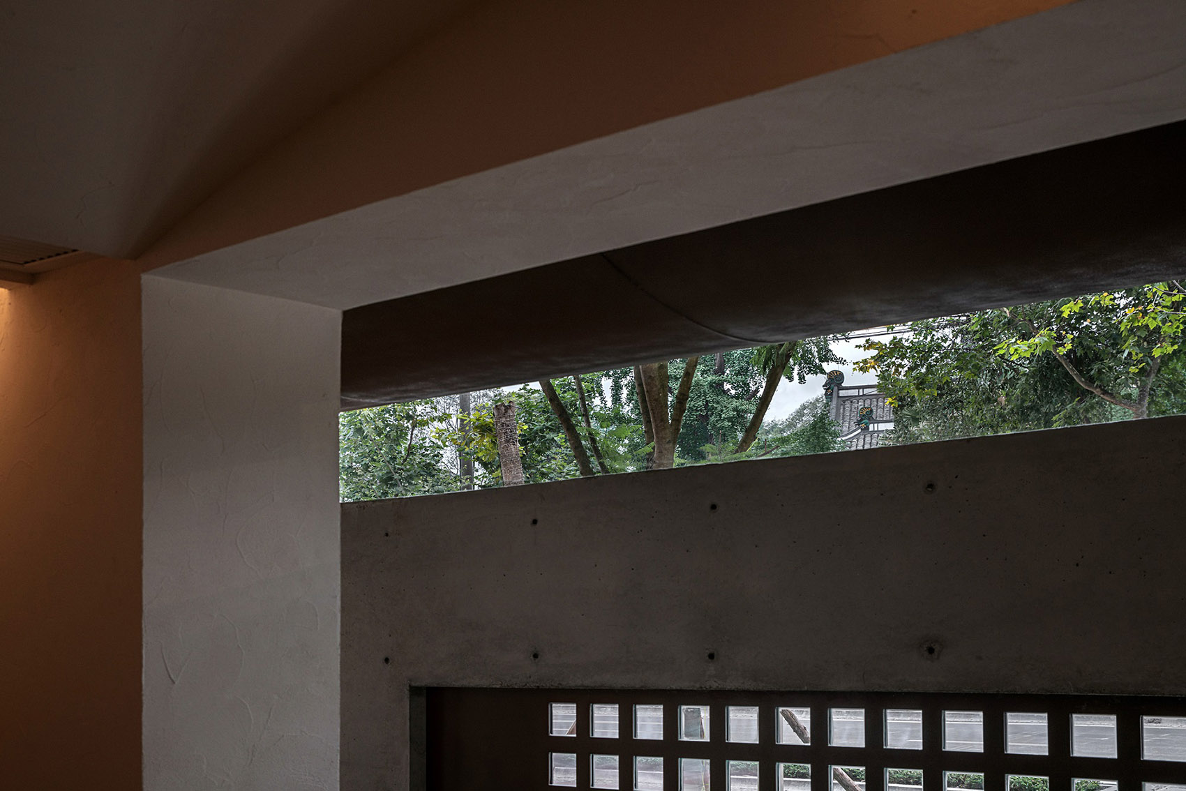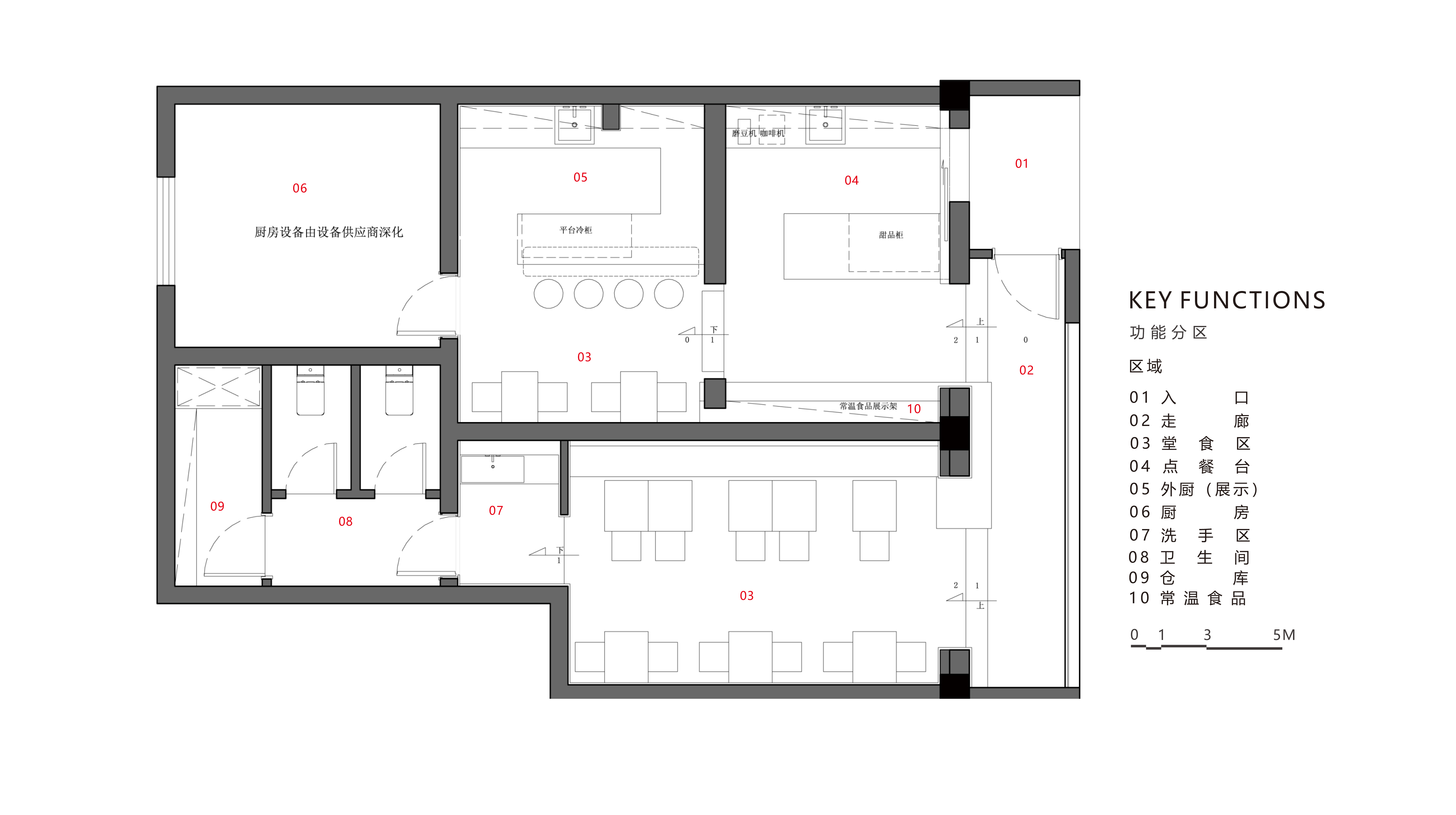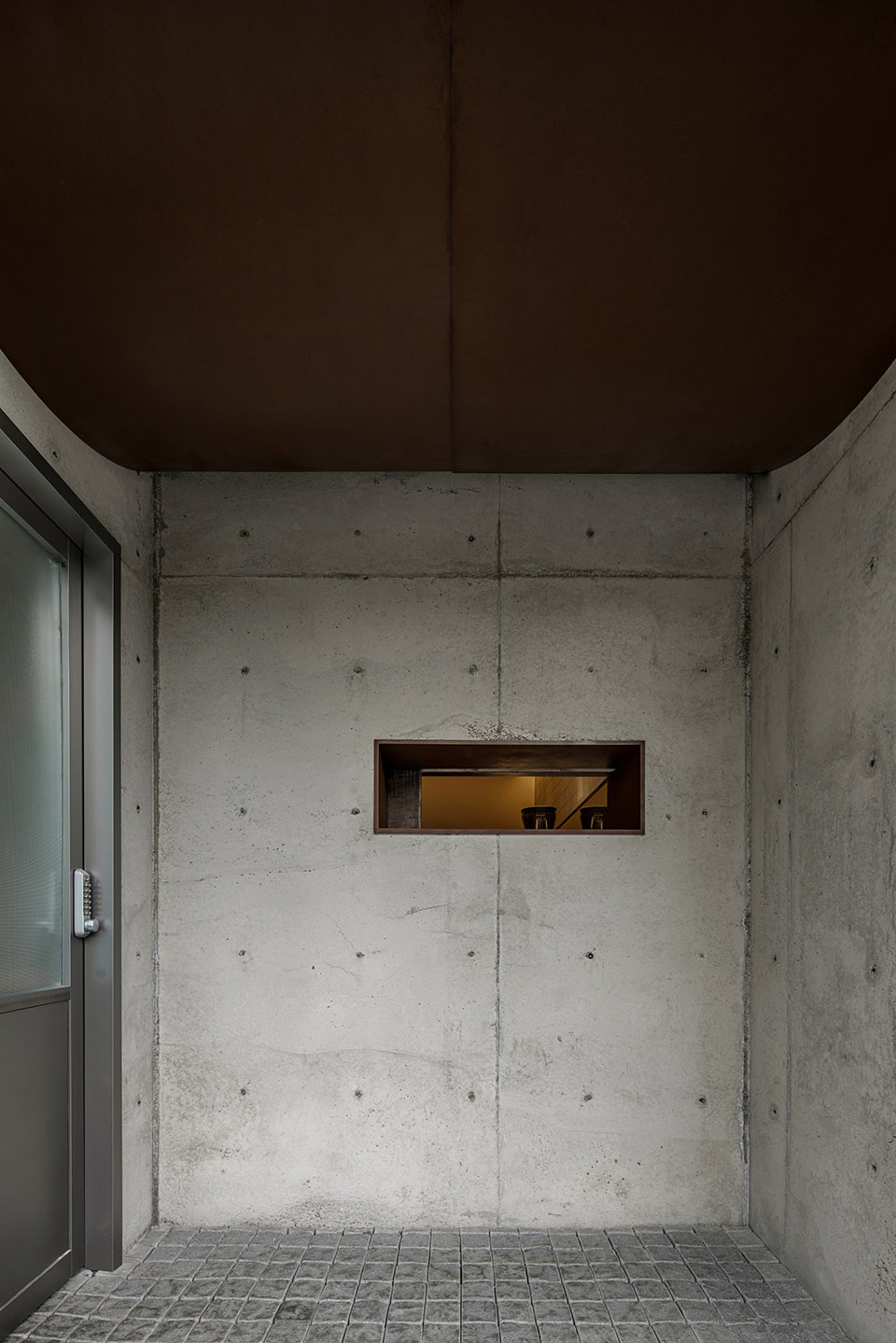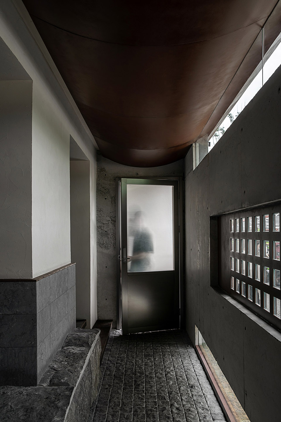 “透明”墙与内退空间形成的走廊把两个独立空间紧密联系在一起。留出一个区域作为模糊室内外的界限,同时也是对外卖功能区域的一个补充。