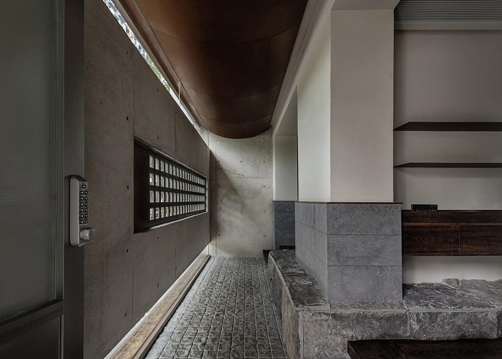 设计选材:幕墙采用混凝土现浇,地面原始花岗石块和木地板铺贴,依旧采用大面积环保涂料涂刷,节约造价同时更环保。
