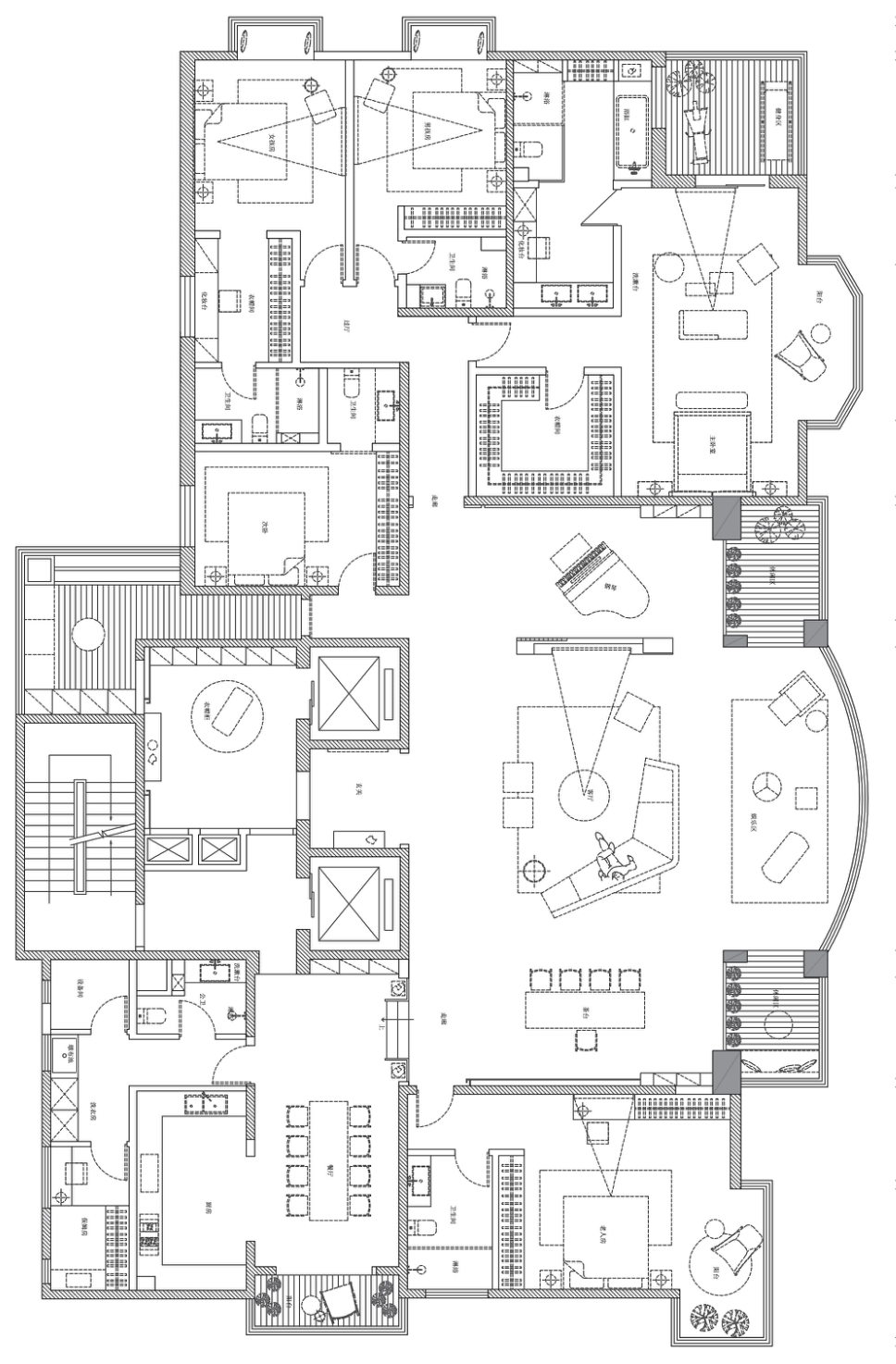 项目定位:这是一个500平米平层,功能布局要满足生活方式不同的三代人居住。