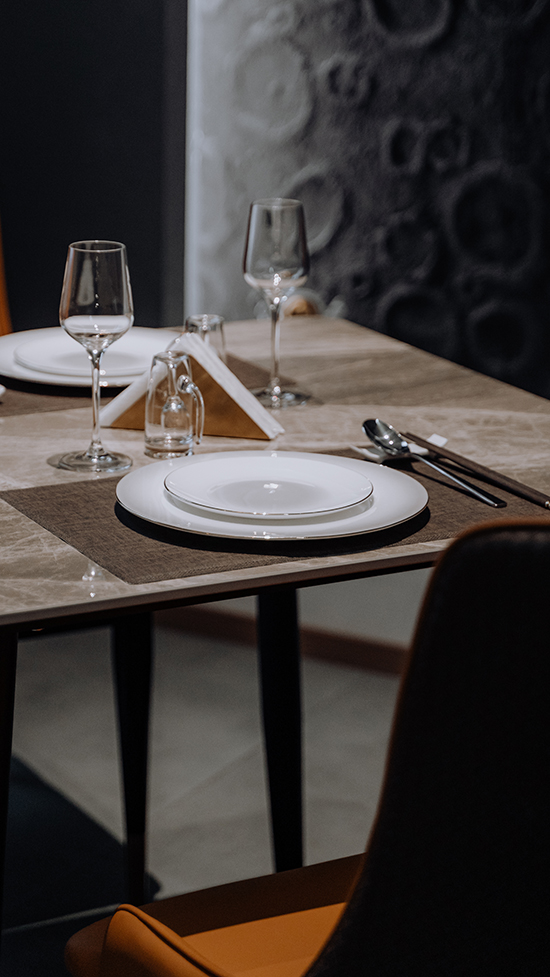 既为餐饮空间,所有前期与后期材料皆以低碳与经济性为标注采购。