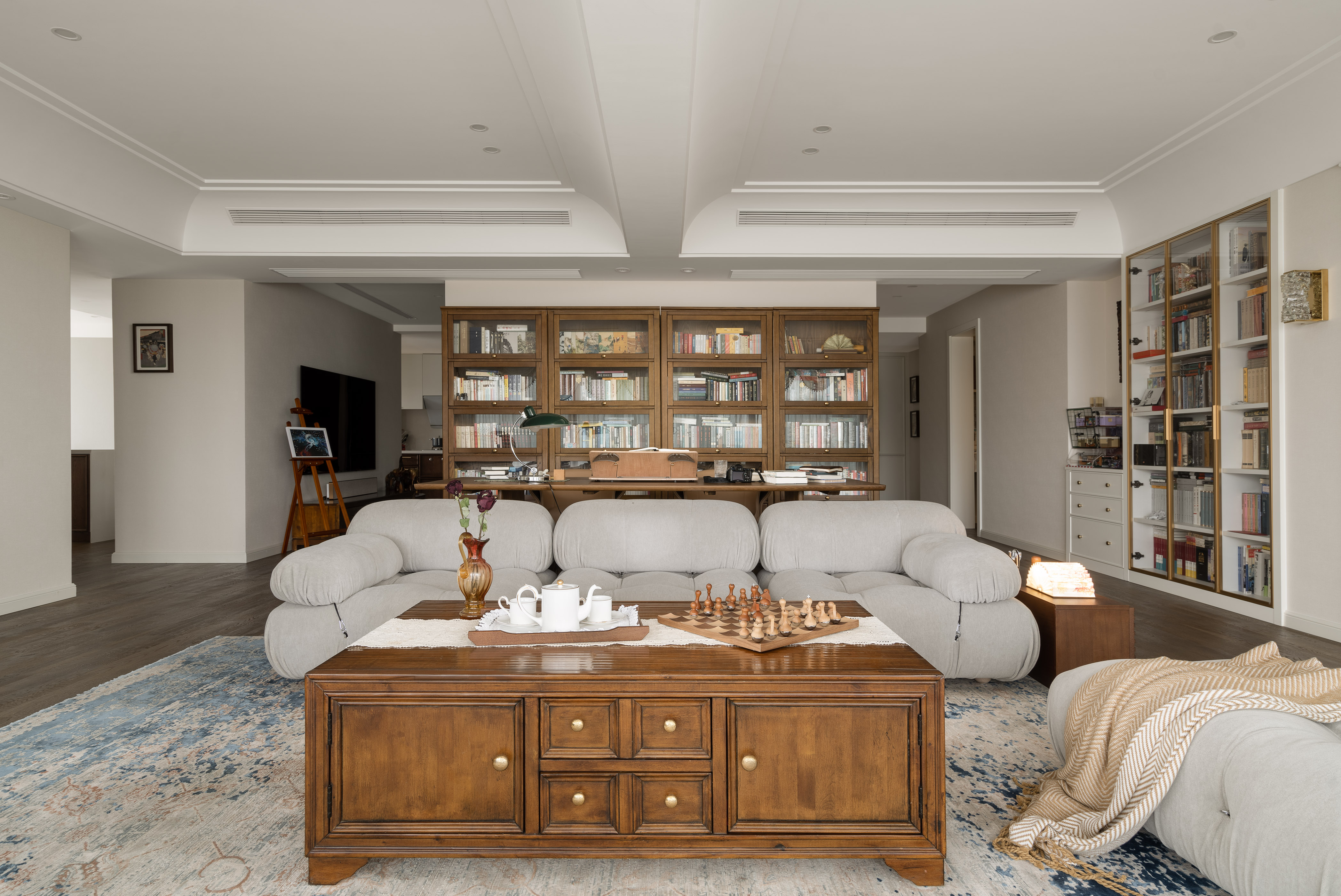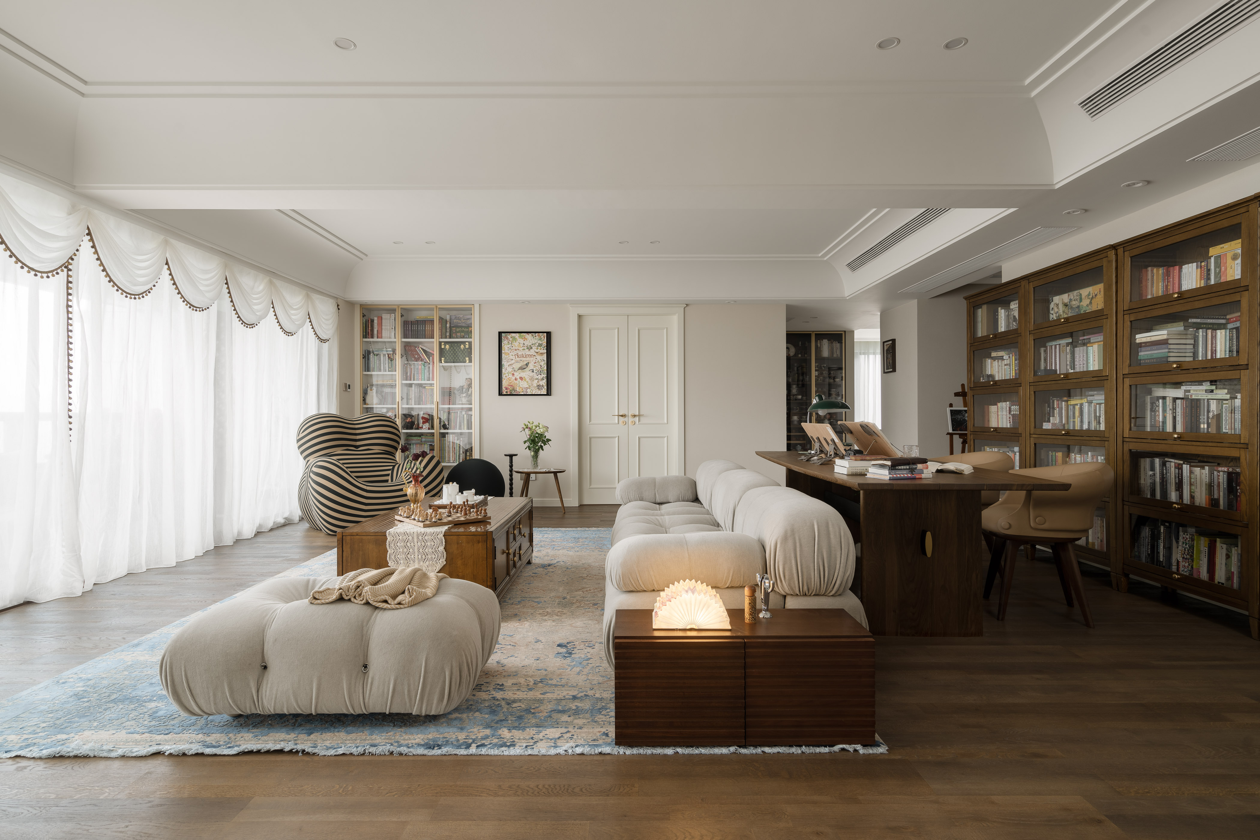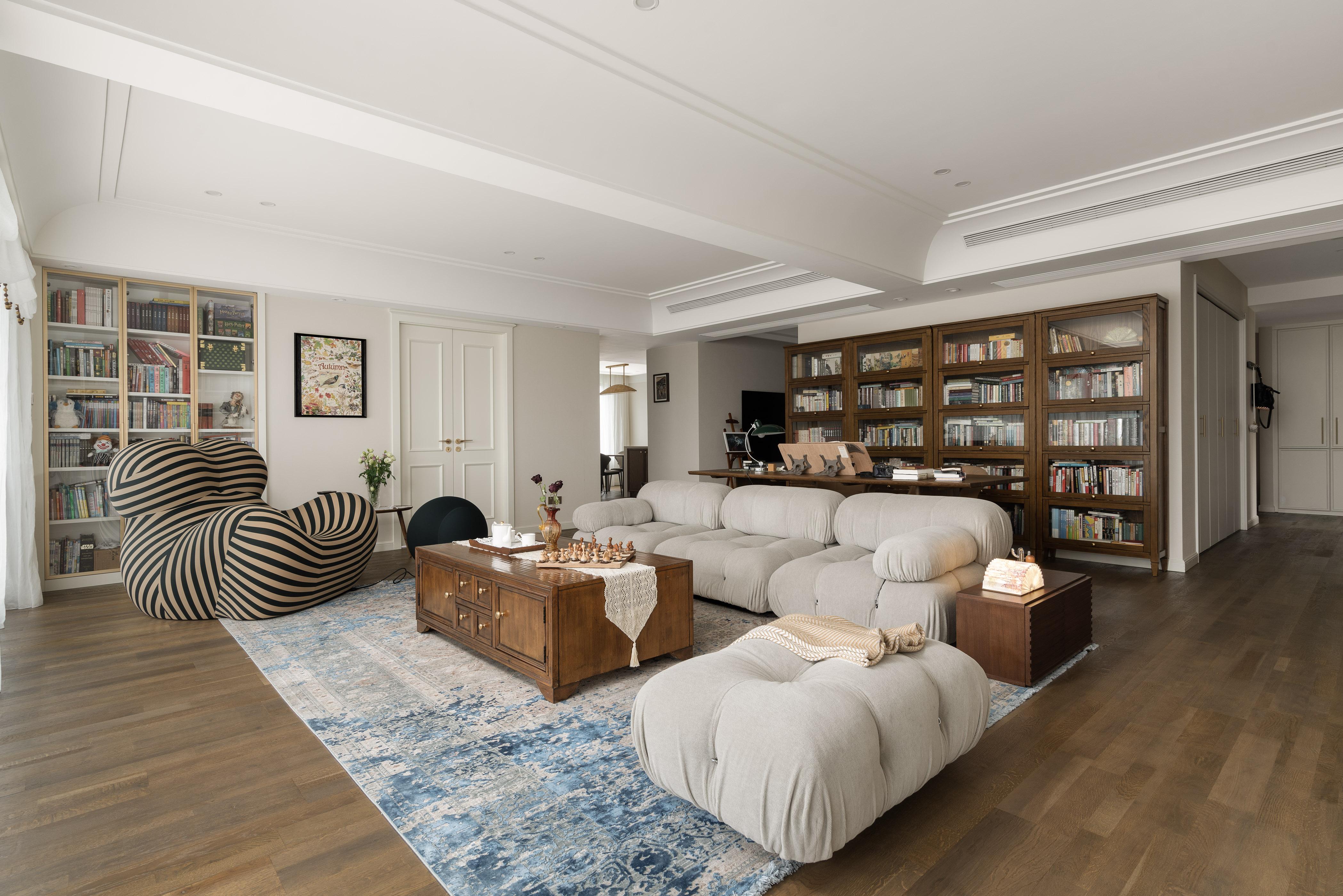 空间布局:两套空间合成一个空间,首先体现就是一个大气,在保证相对私密的情况下重塑空间感。