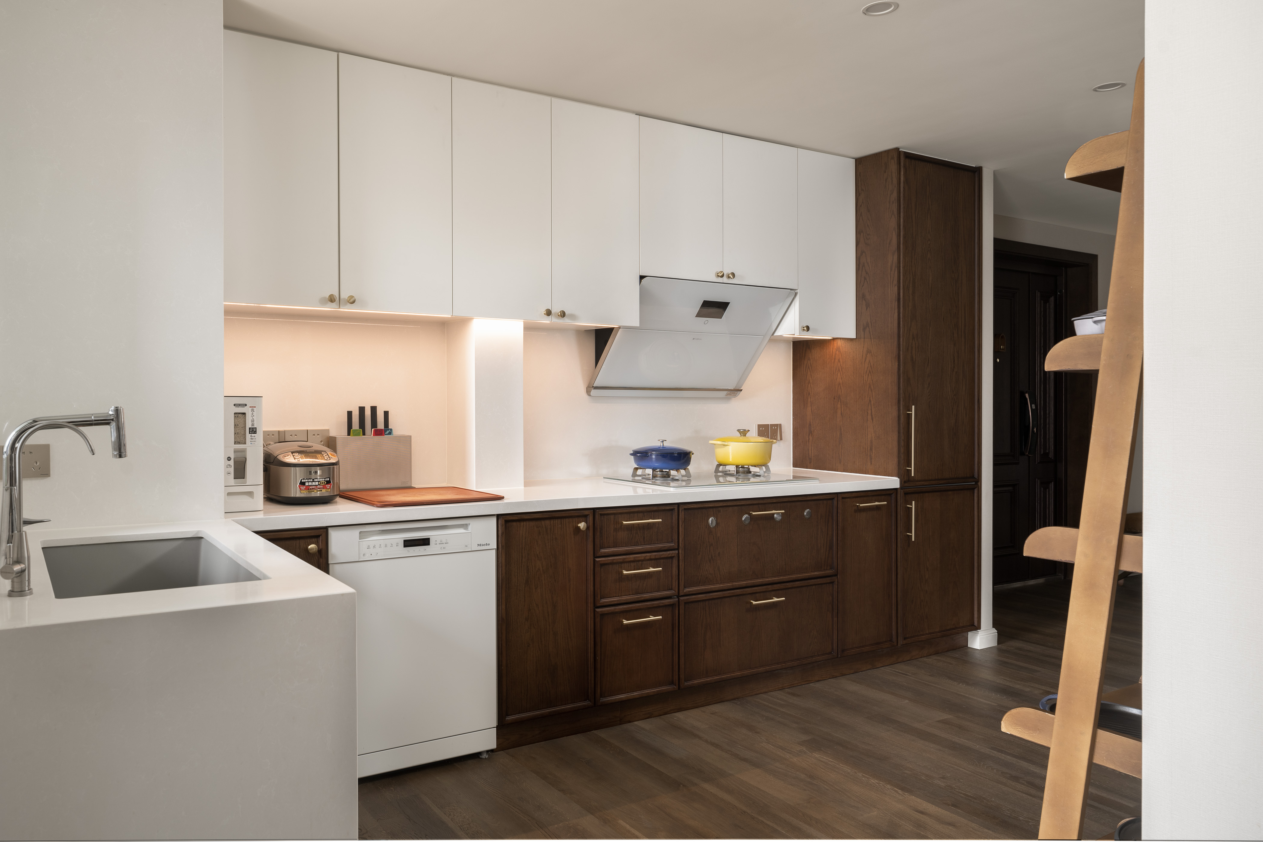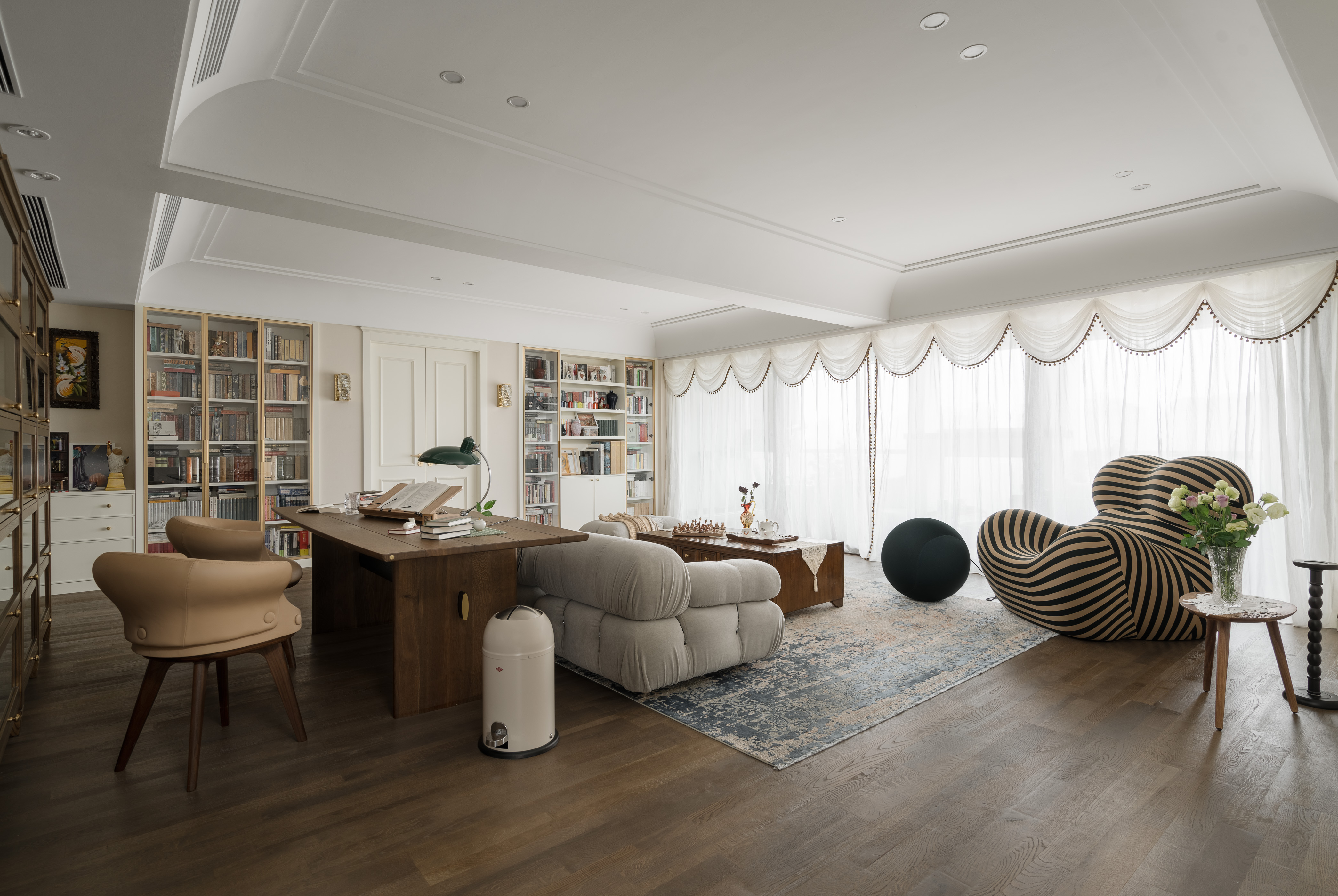 设计选材:两套空间合成一个空间,首先体现就是一个大气,在保证相对私密的情况下重塑空间感。