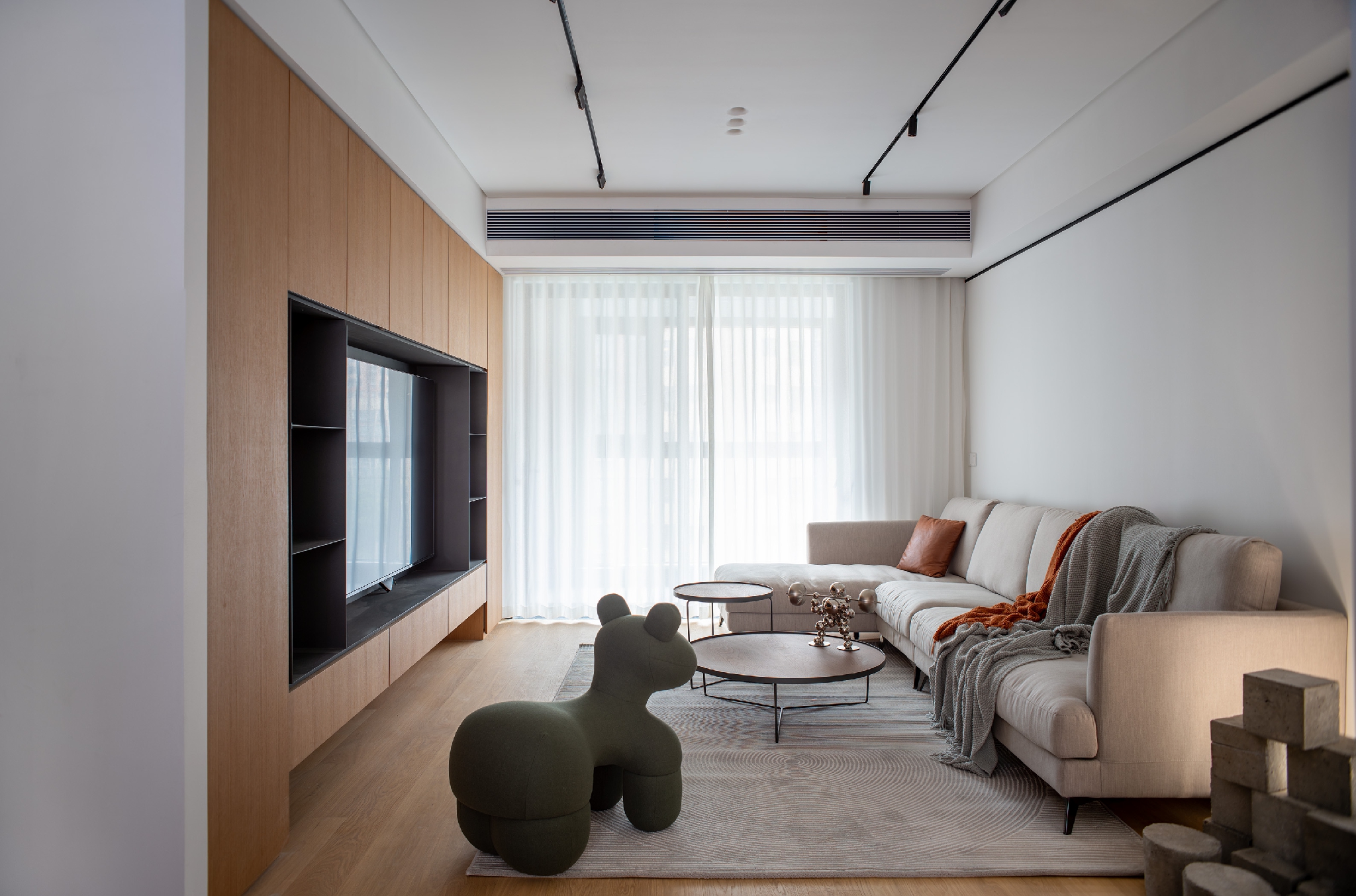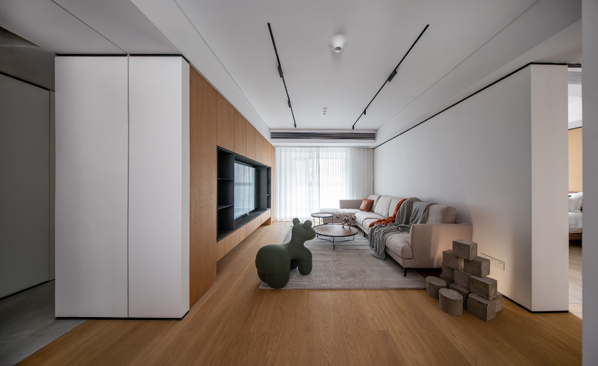 设计选材:木元素是其永恒不变的主角,所选木材没有刻意的花纹,粗旷而简约。木质元素,针织品又或是具有生活气息的配饰,这些小物在素色空间中是必不可少的元素,不但可以提升温暖还可以是空间内容丰富起来。简单的家具线条流畅,整体配色也是清新淡雅,还有各种绿植摆件作为点缀,这迎面而来的清爽感。柔软舒适的毯面,给脚掌更温柔的触感,让人踩在上面都不想穿鞋了,自由奔放的赤脚感觉真好。再配以木质家具,这种使用不同规格的人造板材,再以五金件连接的家具,可以变幻出千变万化的款式和造型。而这种家具也只靠比例、色彩和质感,来向人们传达美感。