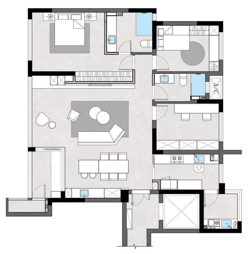 空间意境:为了迎合小朋友的成长空间和业主二人对生活的喜爱,尽量营造一种极简,现代的生活空间.